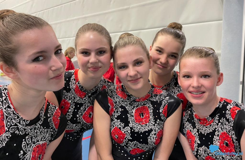 Voor de junioren, pre junioren en benjamins was het hun eerste seizoen op de landelijke wedstrijdvloer. Dit was natuurlijk zeer spannend, maar de jonge meiden lieten zien dat ze goed hadden geoefend en met vooral heel veel plezier op de vloer staan. Met een mooie vierde, vijfde en zesde plaats hebben ook deze groepen zich geplaatst voor de landelijke finale. De Nederlandse Kampioenschappen voor groepen Ritmische Gymnastiek zijn op 3 juni in Deventer.