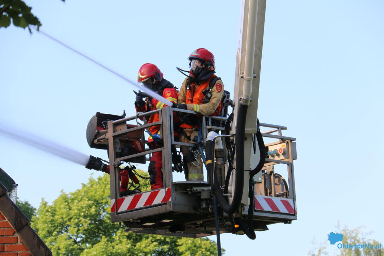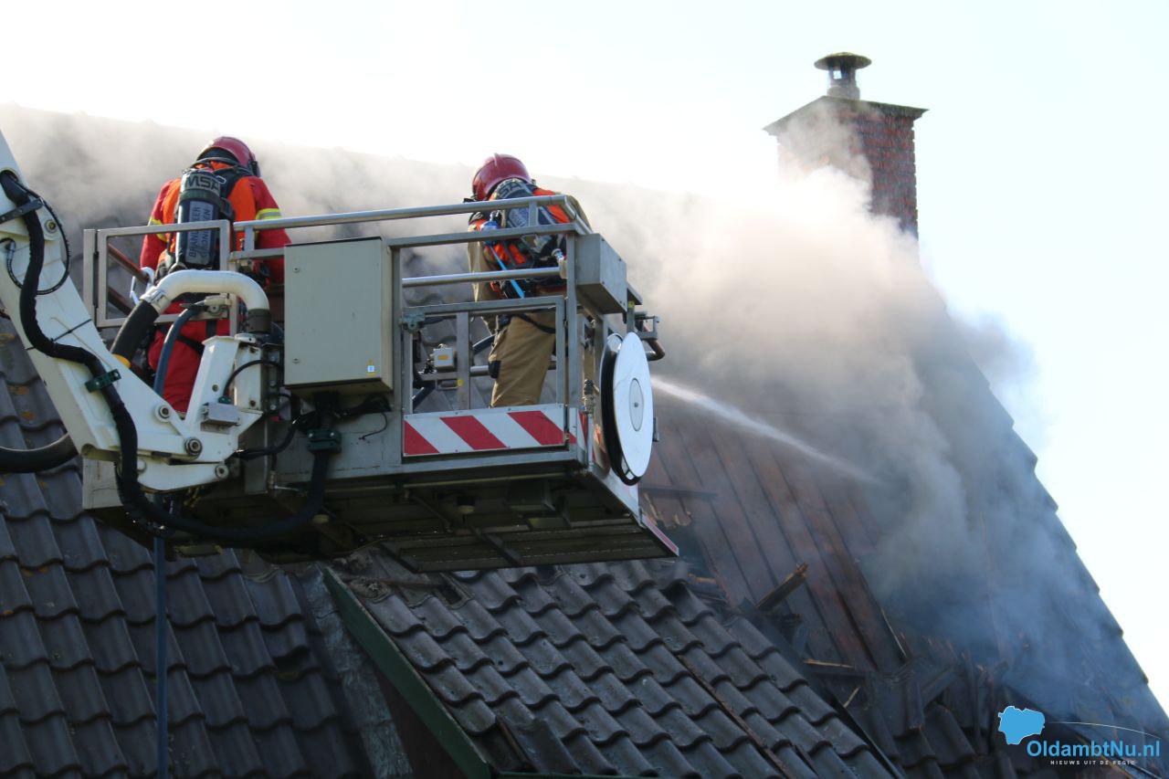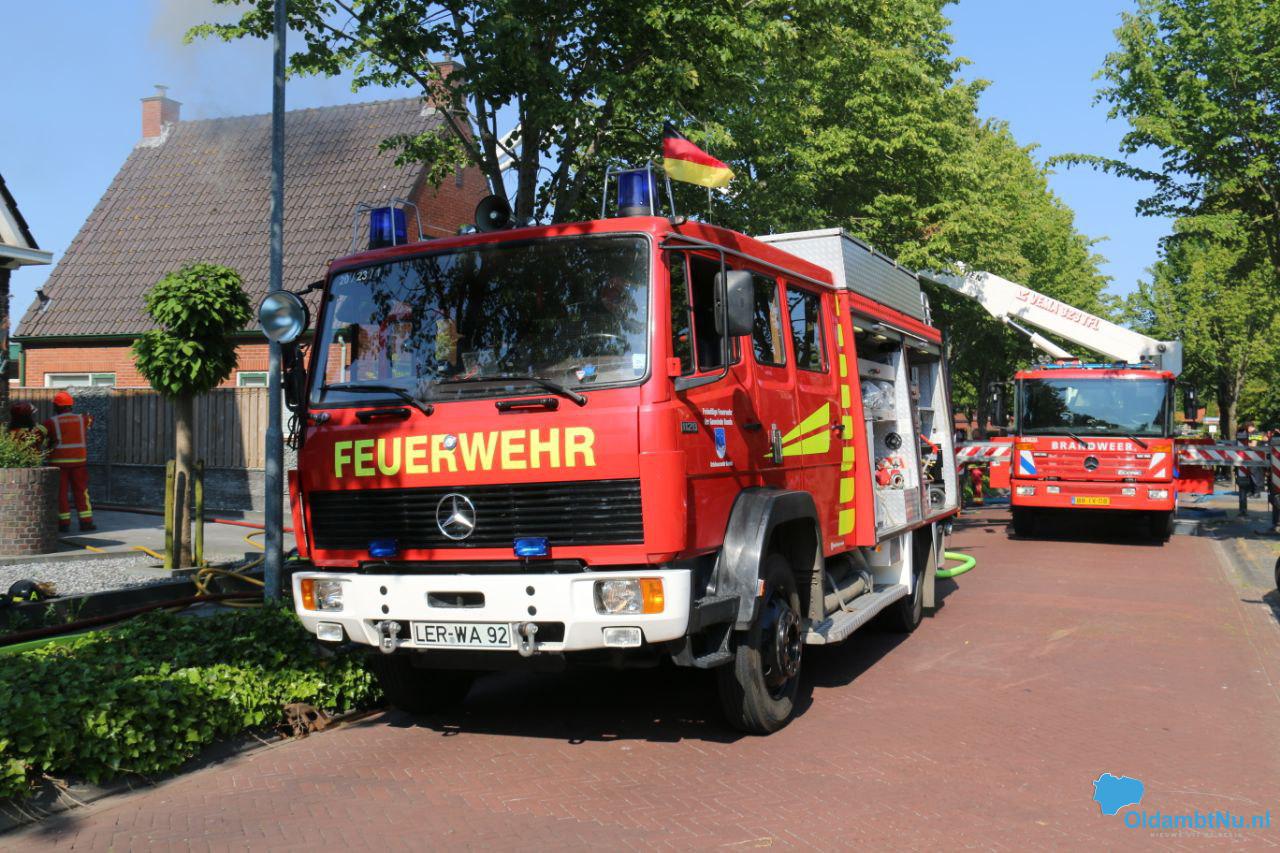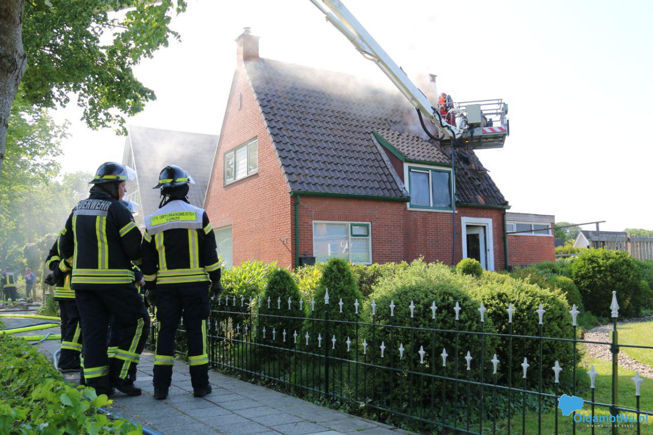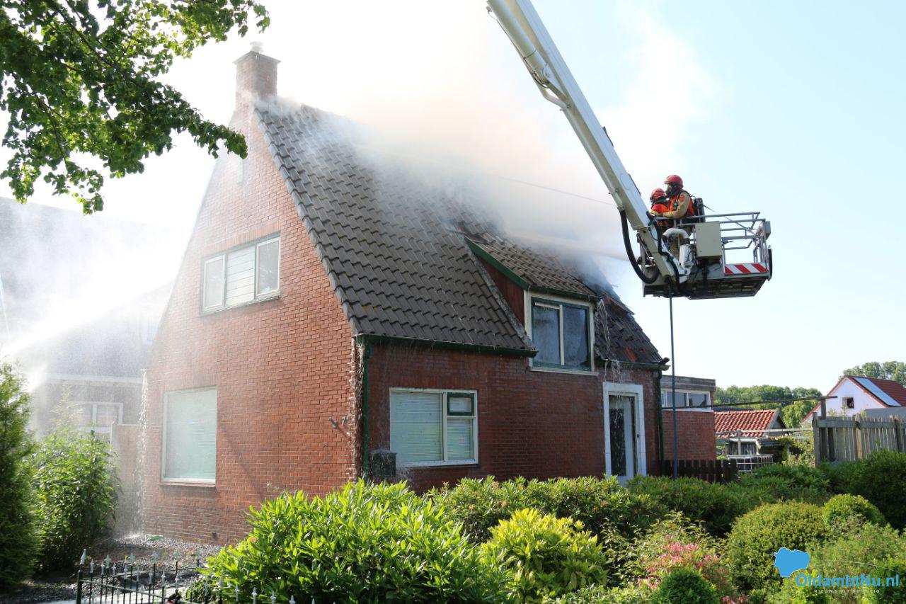 Bad Nieuweschans – In een dakkapel op een woonhuis aan het Zuideinde in Bad Nieuweschans is donderdagmiddag brand uitgebroken. Hoe dat kon gebeuren is nog niet duidelijk. De brand breidde zich snel uit naar het dak van de woning en raakte vervolgens uitslaand.
