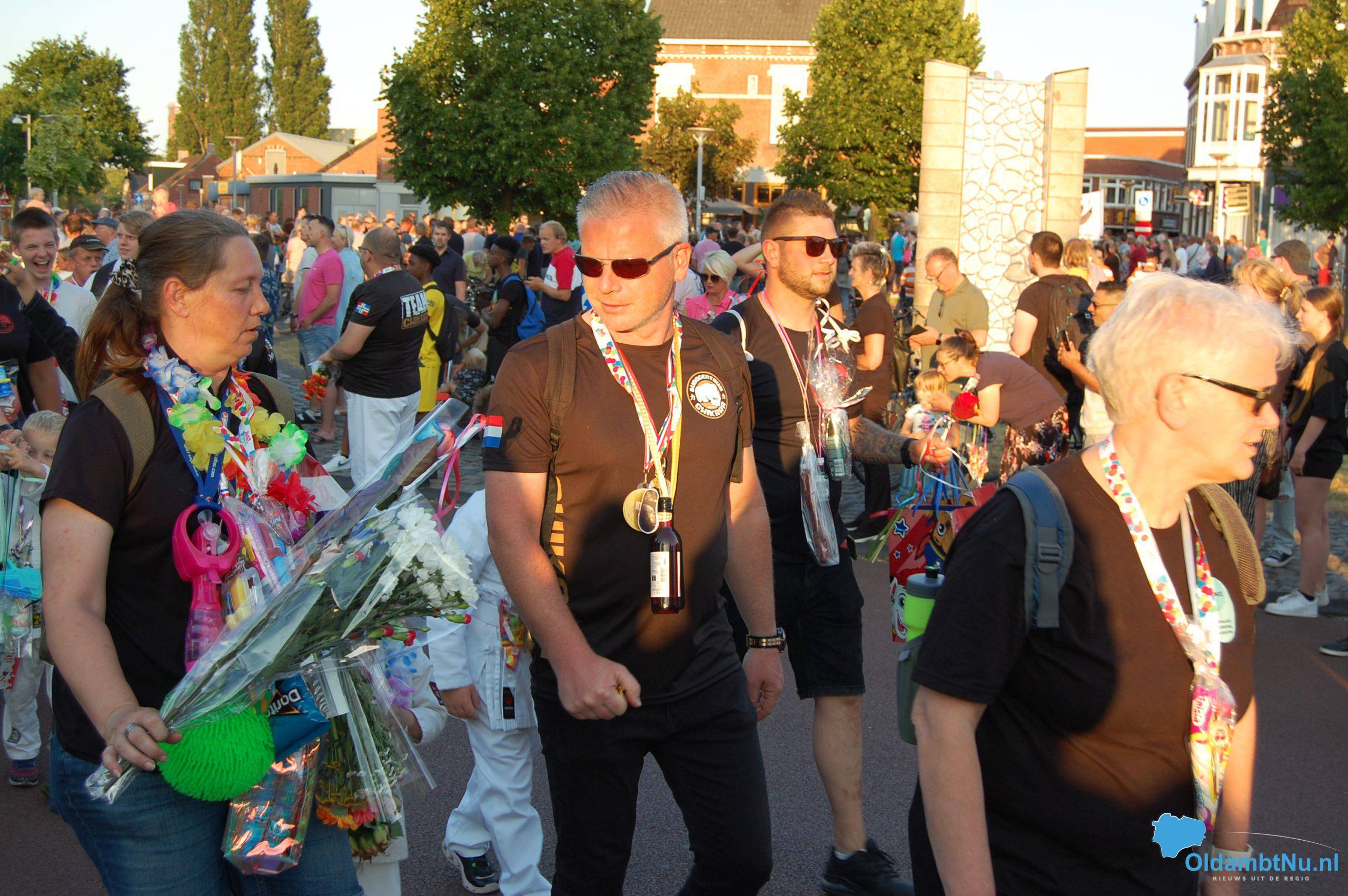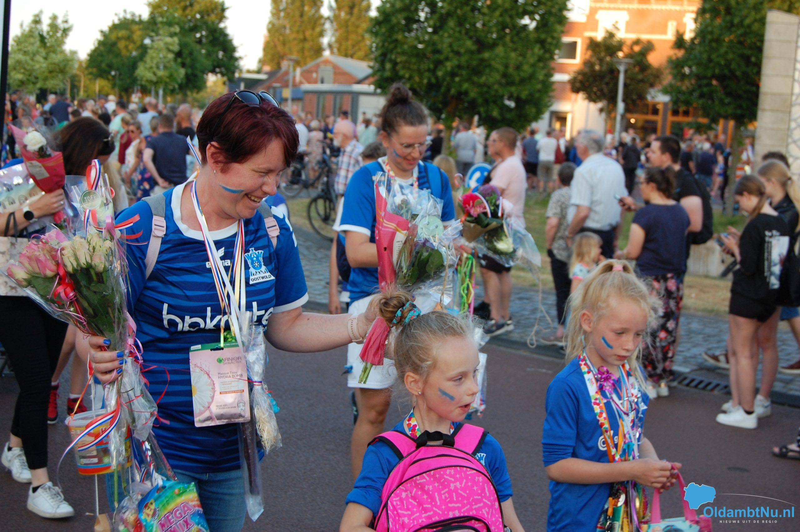 De deelnemers ontvingen hun medaille en werden met bloemen, lekkernijen en cadeautjes door familie en vrienden onthaald. Het defilé voerde ook langs het Stadhuis aan de Langestraat. Hier stond op het bordes burgemeester Cora-Yfke Sikkema, collegeleden en vrijwilligers van de organisatie SV Bovenburen.
