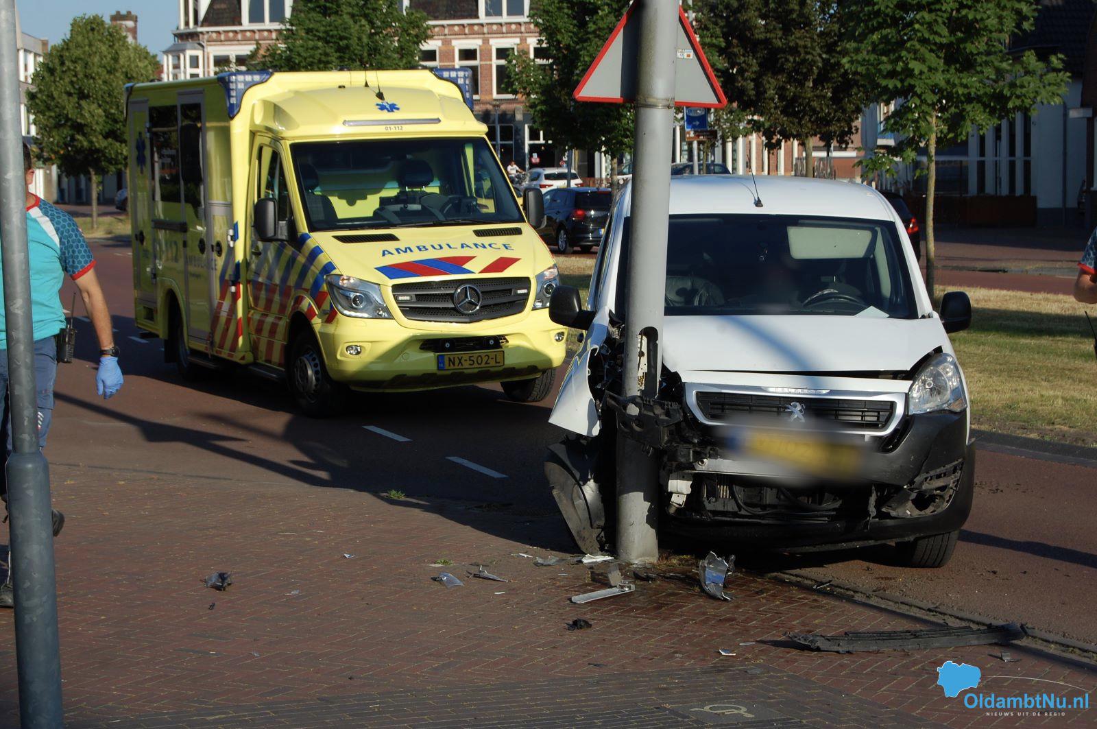Bestelbus knalt op een lantaarnpaal nabij Oldambtplein