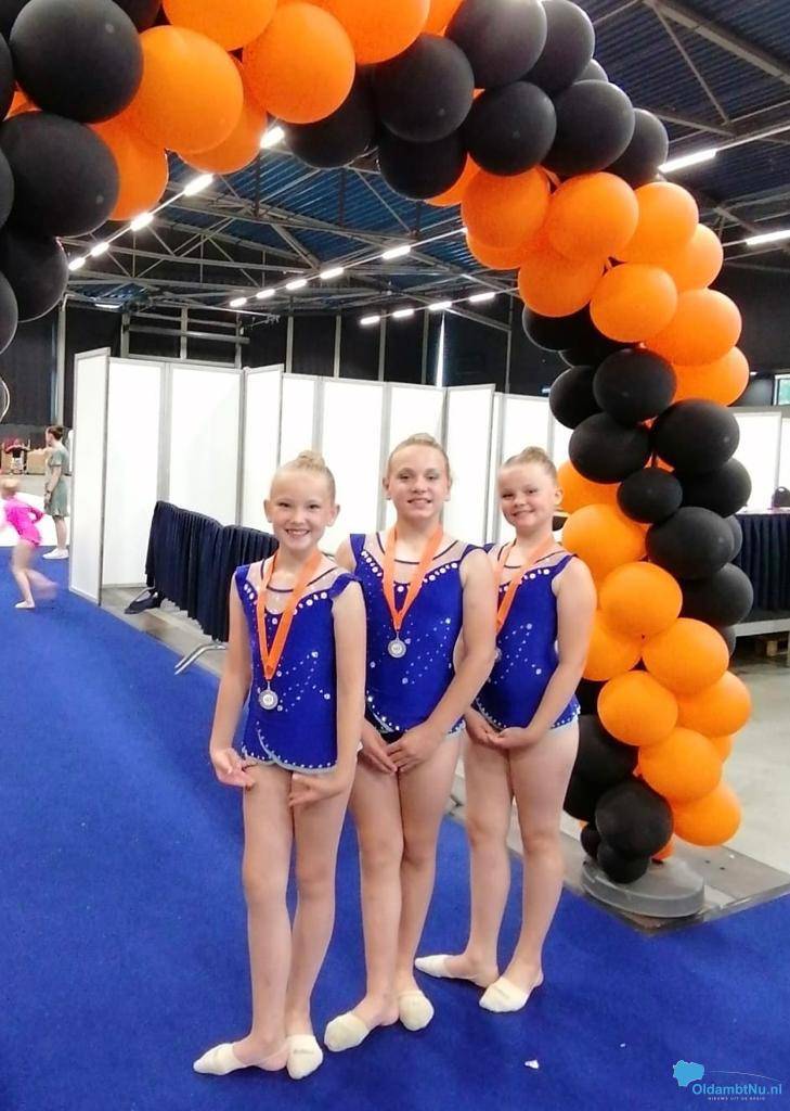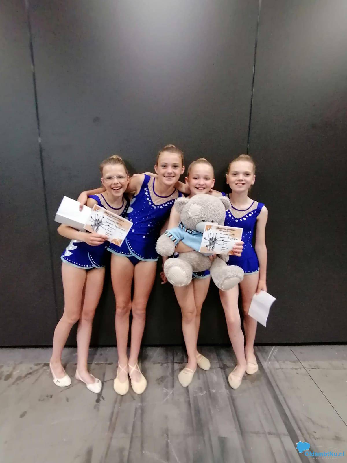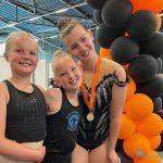 Allereerst mocht Mette zaterdag al stralen op de vloer met haar individuele oefeningen. Tijdens haar prachtige hoepel oefening viel alles op zijn plaats en werd ze met de hoogste score beloond en won in een sterk deelnemersveld het goud! Ook het duo Rose en Maud mochten hun kunsten laten zien en na een mooie oefening leverde het hun een zesde plaats op.