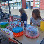 Afgelopen vrijdag was het zover. Daar stonden de leerlingen dan trots met hun eigen bedrijf: ondernemingen die etenswaren als popcorn, tosti’s, ijs en smoothies verkochten tot ondernemingen die mokken en sieraden aanbieden. Voor een ieder wat wils! Om nog meer bezoekers te trekken werd de ondernemersmarkt aangekleed met een spannende grabbelton, gitaarmuziek en een loterij. De markt vond plaats buiten op het schoolplein met een terras waar bezoekers konden genieten van hun aankopen. Het werd een gezellige en feestelijke middag, maar waar de leerlingen zelf toch vooral druk bezig waren met het enthousiast aanprijzen van hun koopwaar!