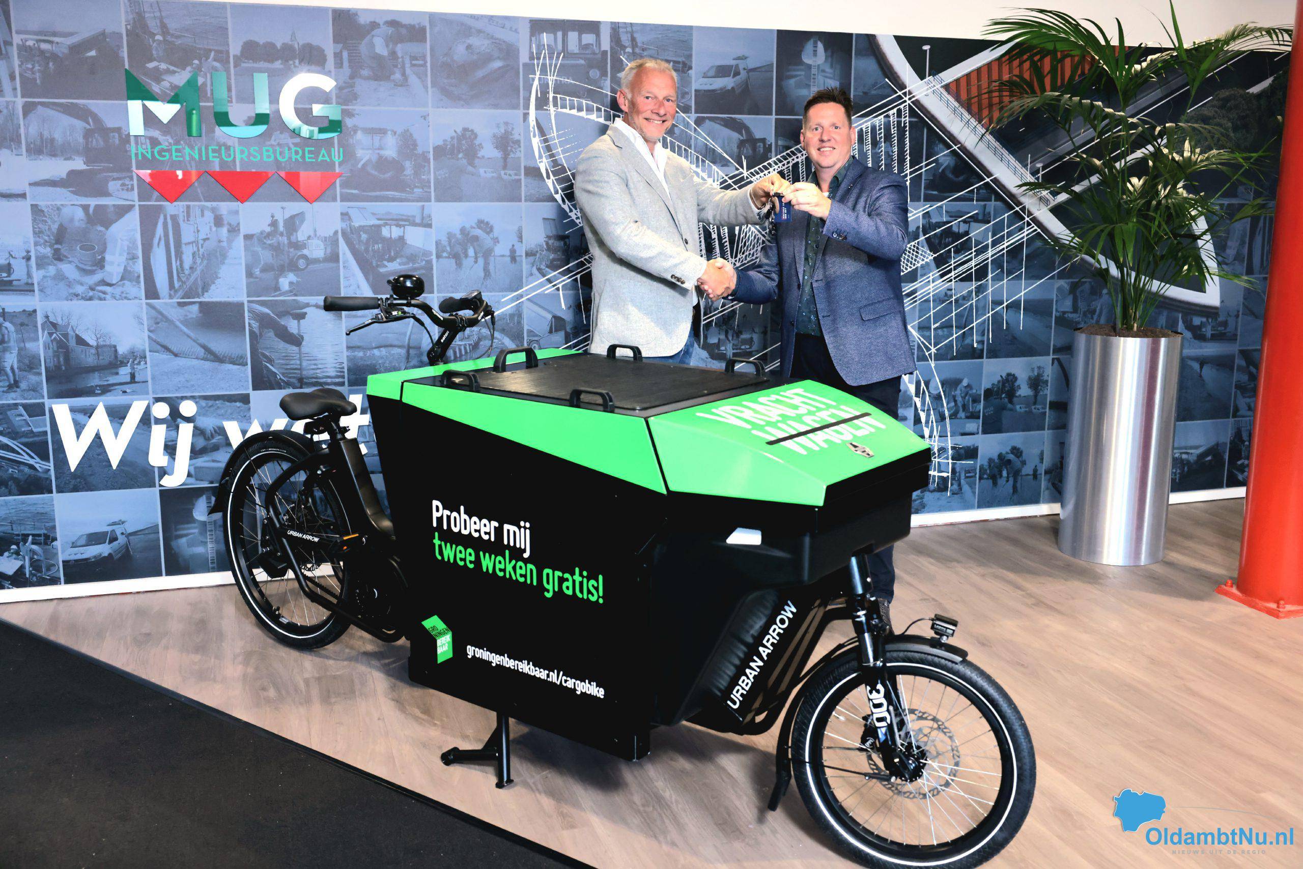 Regionaal – Na ondernemers in de stad, kunnen bedrijven in de provincie Groningen nu ook twee weken lang gratis een elektrische cargobike uitproberen. Op woensdag 5 juli reikte René Schripsema, directeur Groningen Bereikbaar, de nieuwe cargobike uit aan MUG Ingenieursbureau in Leek, die deze als eerste gaat gebruiken. De elektrische cargobike kan een goed alternatief zijn voor de auto of bestelbus. Door het twee weken uit te proberen, kunnen bedrijven kijken of de dit iets voor hen is.