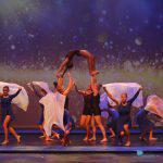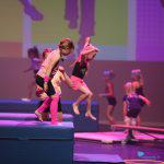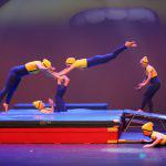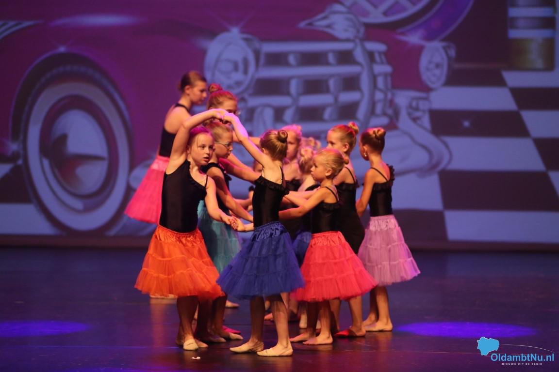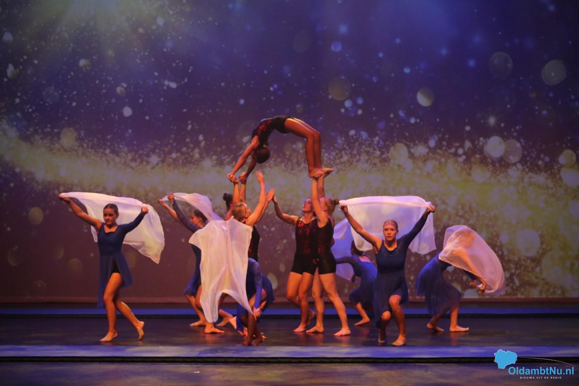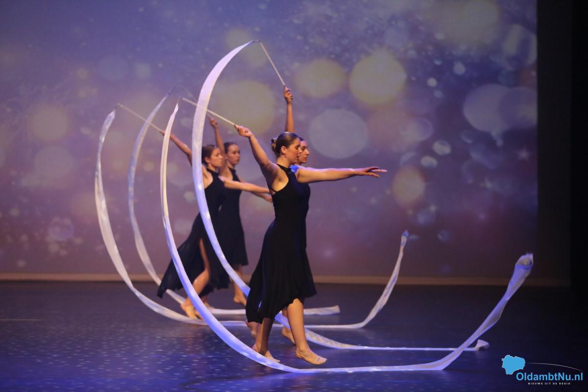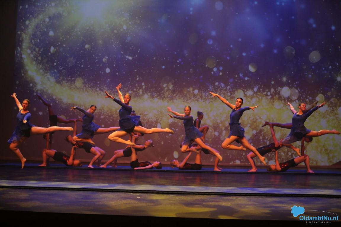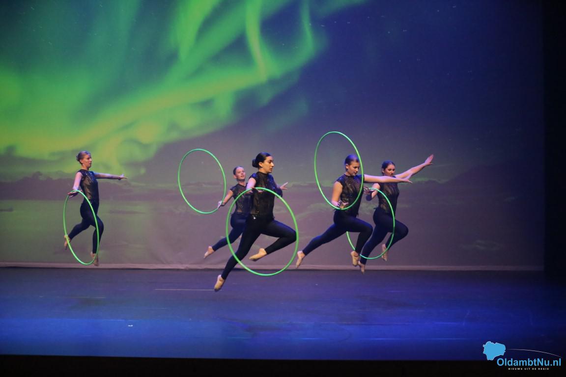 En een spetterende show werd het. Zo’n 200 leden in de leeftijd tussen de 3 en 83 jaar stonden te stralen op het toneel. De technische leiding heeft met veel enthousiasme een zeer feestelijke en professionele show in elkaar gezet. Vrolijke dansjes en oefeningen op gymtoestellen werden afgewisseld door mooie sierlijke ritmische oefeningen met veel linten en hoepels. Daarnaast kwamen de acrogymnasten en turnsters met veel
