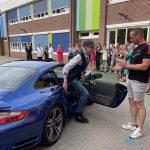 Winschoten – Afgelopen dinsdagavond stond de geslaagde leerlingen van de Meentschool in Winschoten wel een erg aangename verrassing te wachten. Ze werden namelijk in twaalf prachtige Porsches naar school gebracht om daar hun welverdiende diploma in ontvangst te nemen.