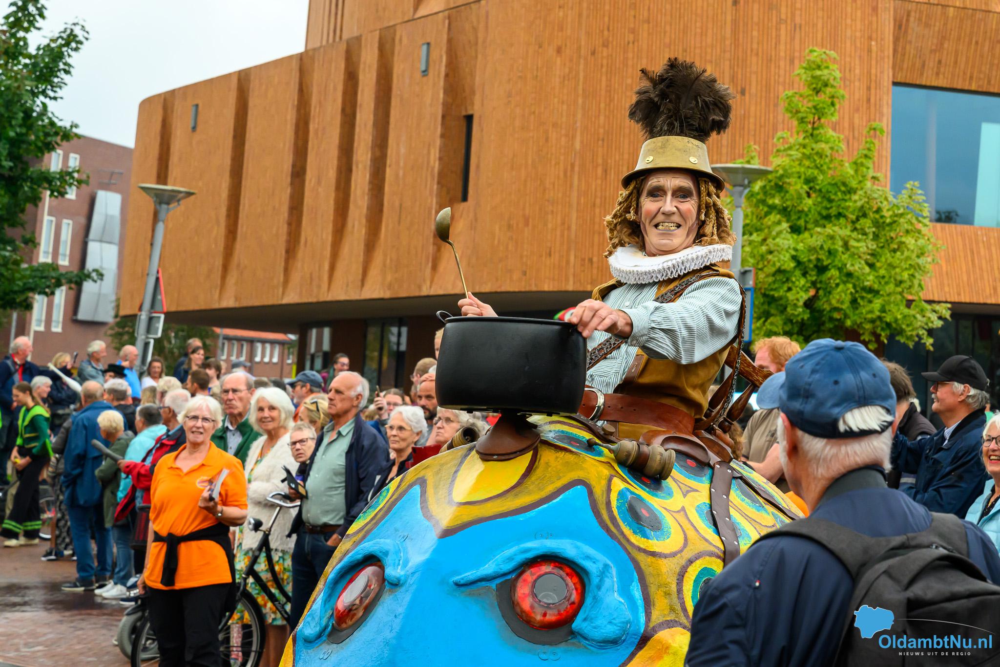 Winschoten – Waterbei 2023 is gelukkig droog van start gegaan. Mede hierdoor was het publiek in grote getale naar de opening gekomen. Wethouder Jurrie Nieboer heeft deze editie geopend. Al vanaf 19:00 uur stonden mensen hun opwachting te maken op de stoet die om 20:15 uur van start is gegaan, dit om even een korte bui voorbij te laten gaan.