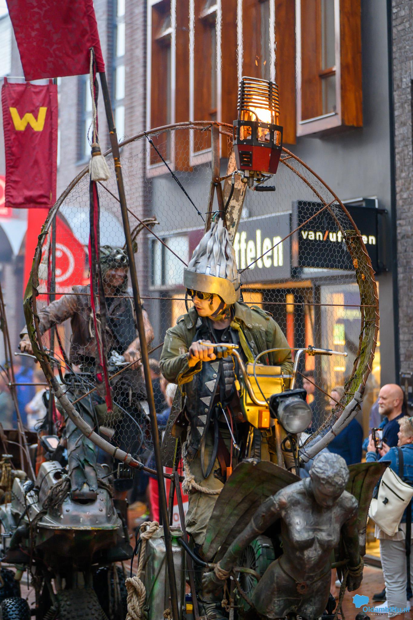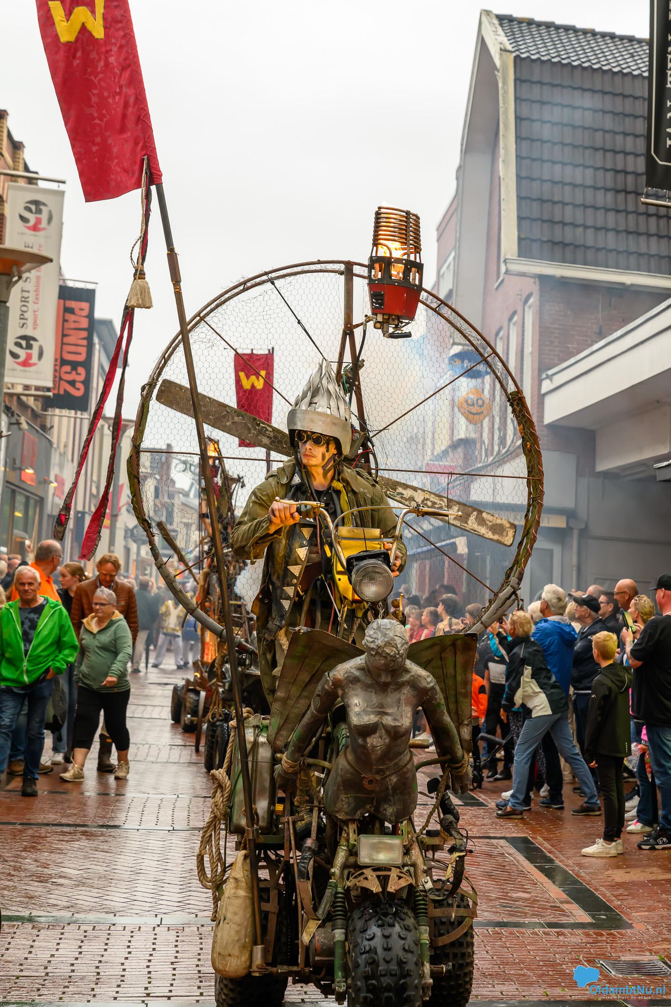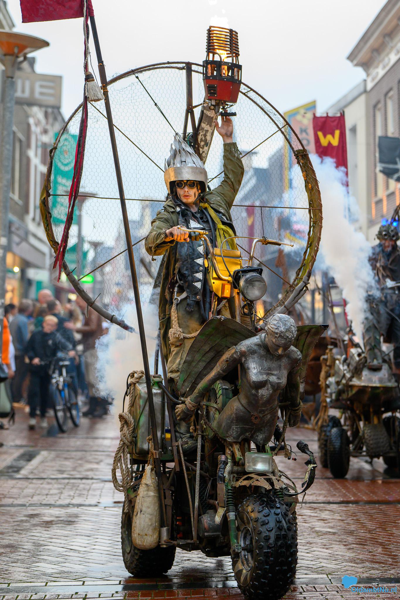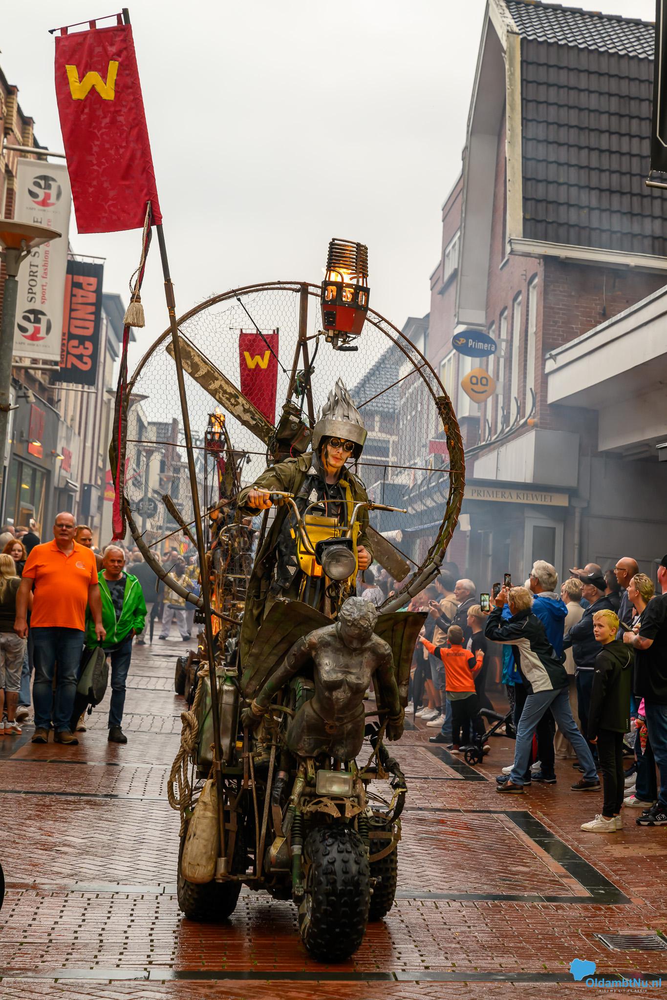 Het was een bont gezelschap, van boer Bert die met koe Stien op stap was, levensgrote vissen van de Tukkers connection, de twee stokstaartjes die menigeen aan het schrikken hebben gebracht, The Bike Babes zwevend op een drie meter hoge fiets oogsten veel applaus. Vooraan in de stoet reden de Wastelanders, een piratengezelschap. De stoet trok door rijendikke publieke belangstelling.