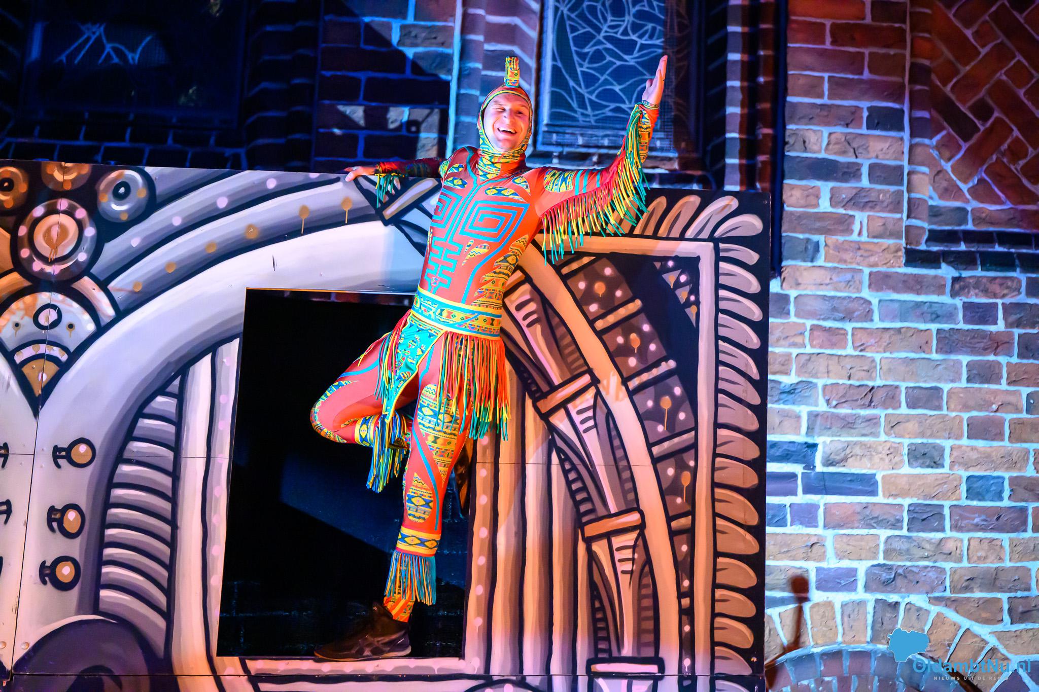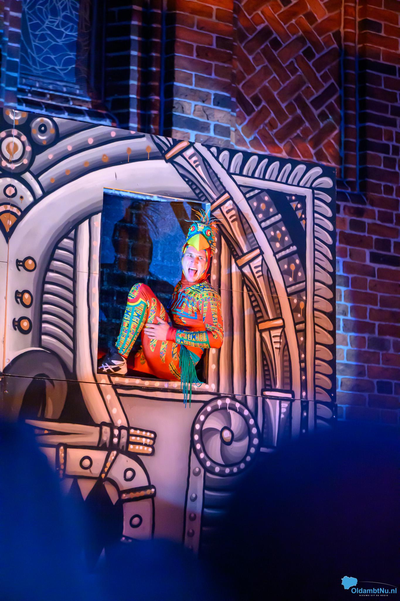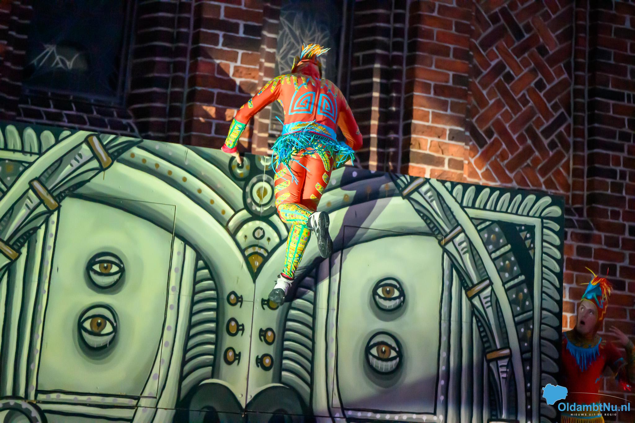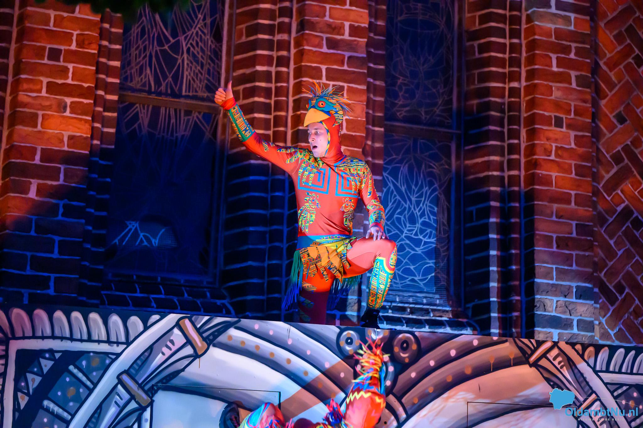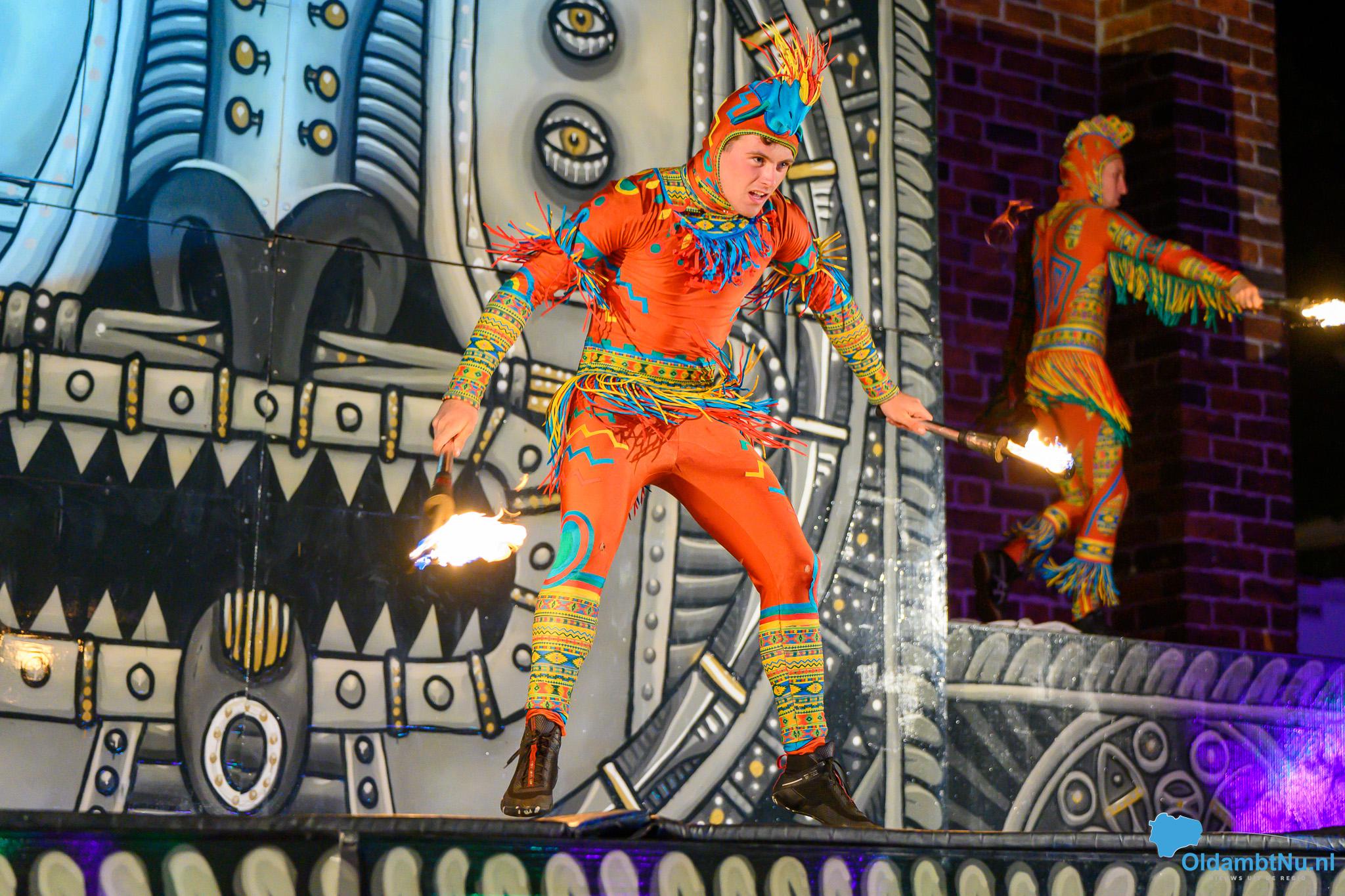 De slotact was op het Marktplein met een trampoline act van ‘Mayakrijgers’, die voor hun ‘tempel’ allerlei hoge sprongen uitvoerden, soms met fakkels en een andere keer bijzondere sprongen door ringen. Tenslotte om nog tot middernacht door te gaan was er de Waterbei Party met de band Flavour.