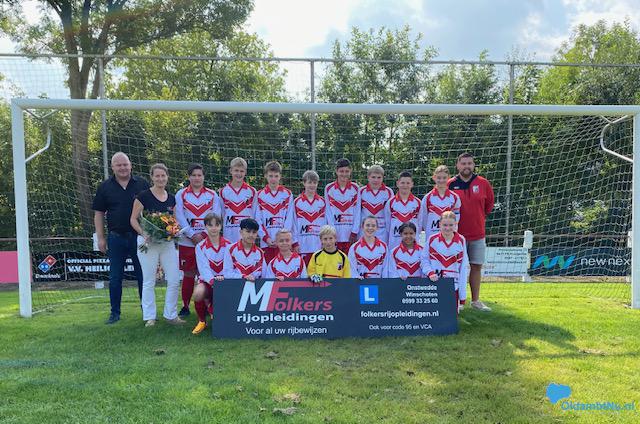 Heiligerlee – Het team JO-15 van v.v. Heiligerlee start het nieuwe voetbalseizoen ook in nieuwe tenues. Deze nieuwe kledij is mede mogelijk gemaakt door de sponsor van het team Folkers Rijopleidingen.