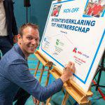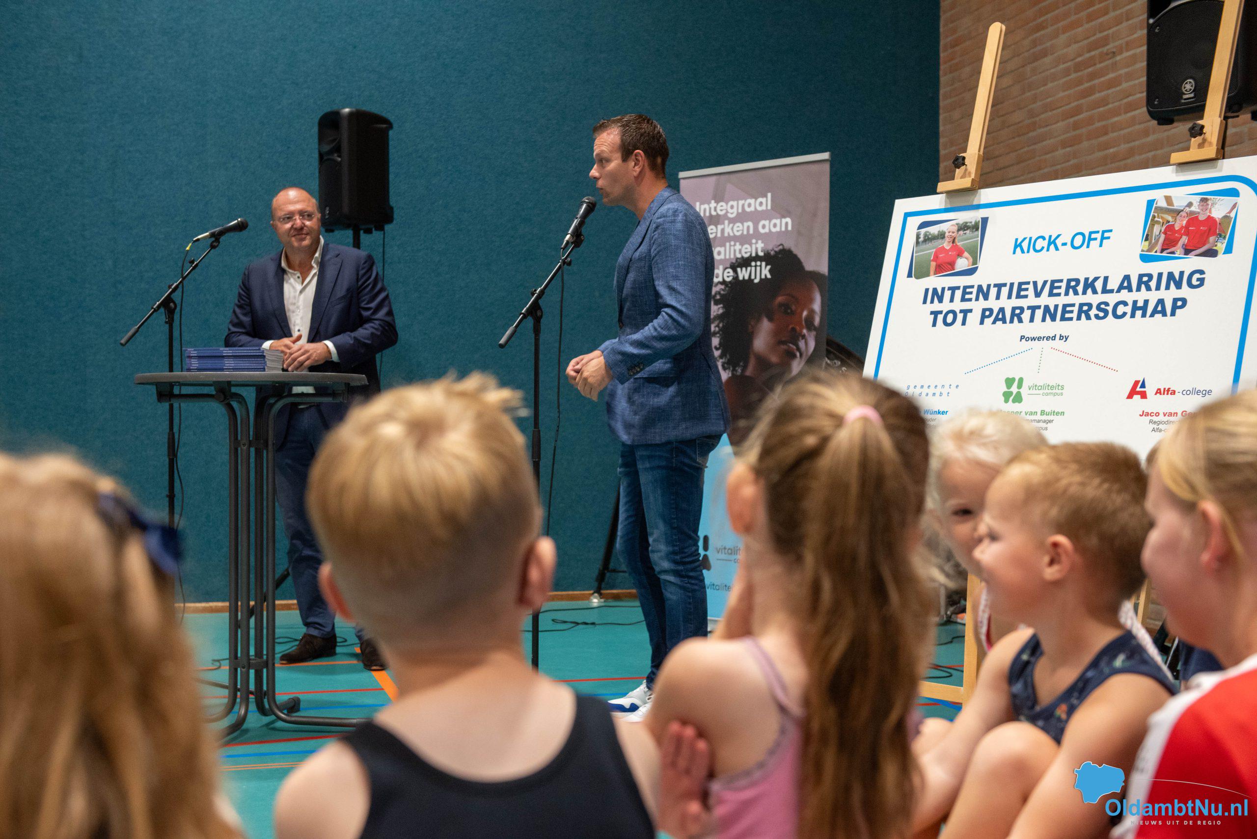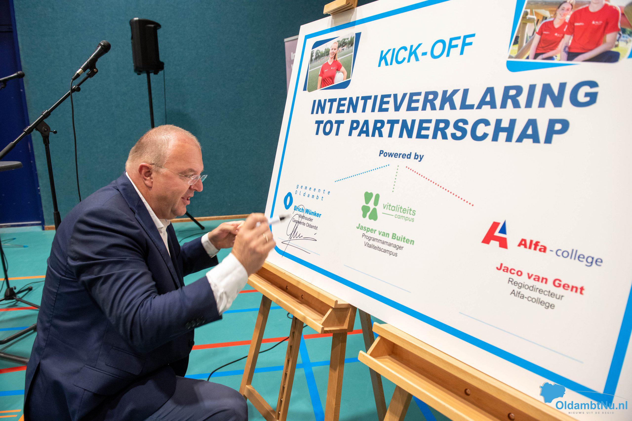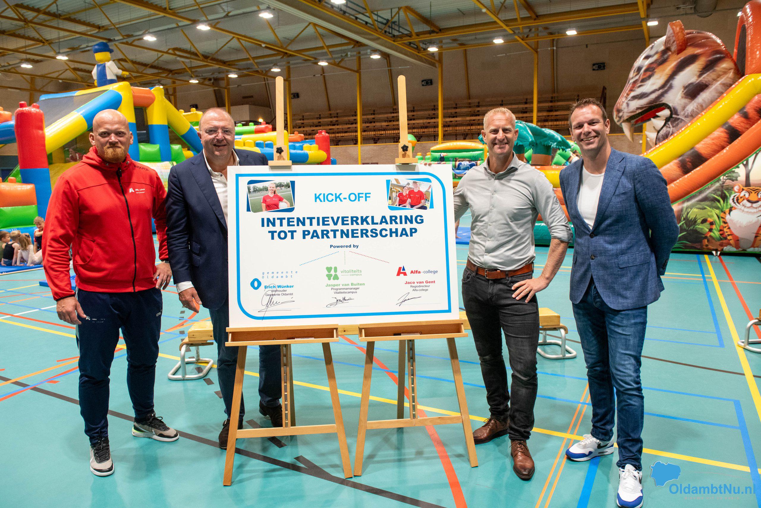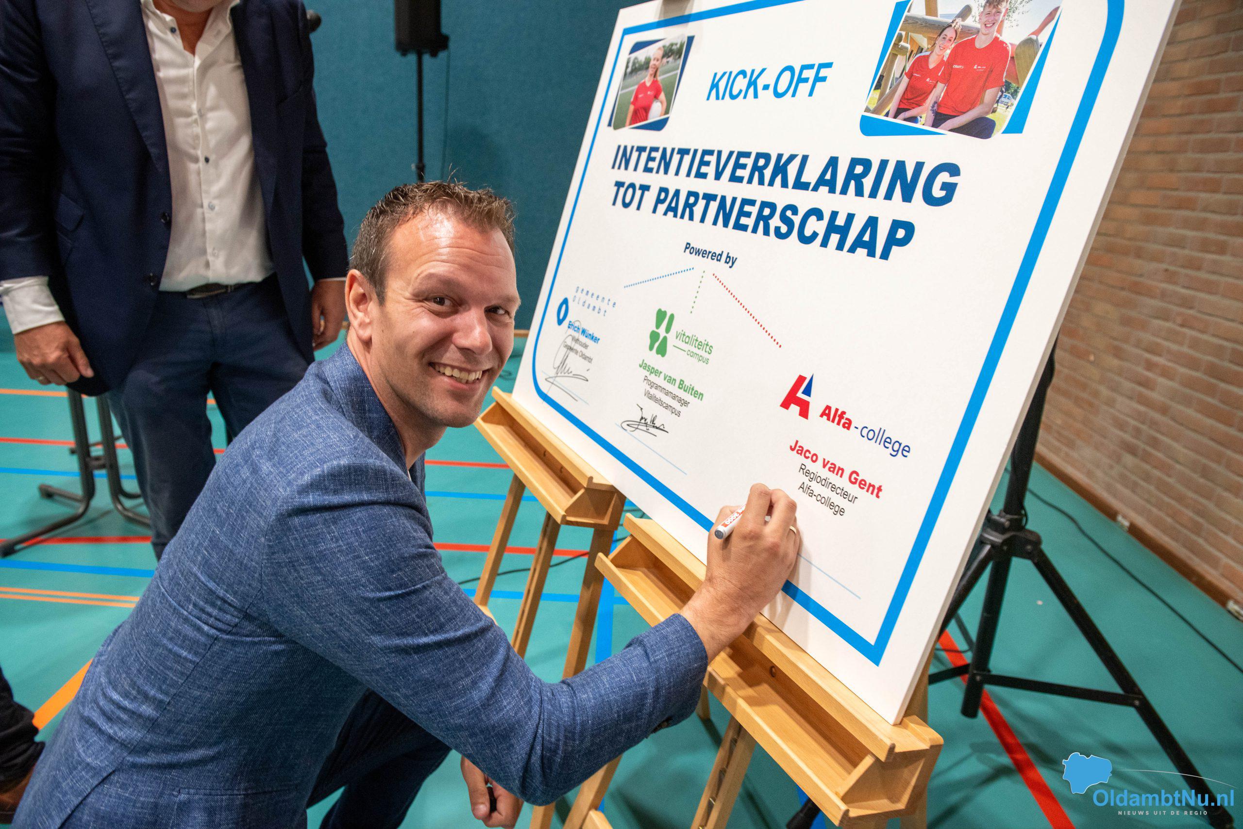 Scheemda – Vorige week donderdag werd het startschot gegeven voor een nieuwe samenwerking tussen het Alfa-college Sport & Bewegen, de gemeente Oldambt, Huis voor de Sport Groningen (HvdsG), Stichting kinderopvang Winschoten (KiWi), stichting openbaar onderwijs Oost-Groningen (SOOOG), vereniging voor christelijk onderwijs Midden- en Oost-Groningen (VCO-MOG) en de Eextahal te Scheemda.