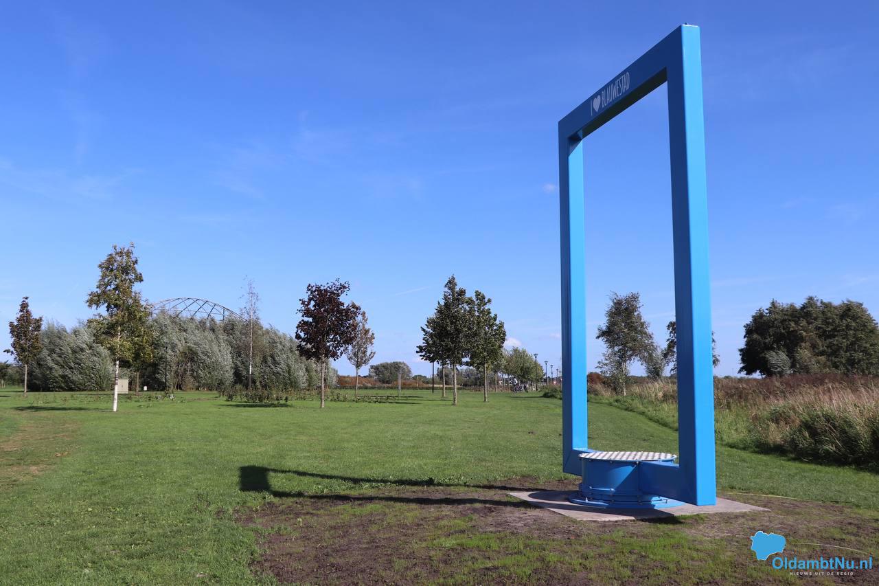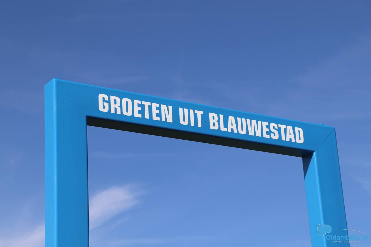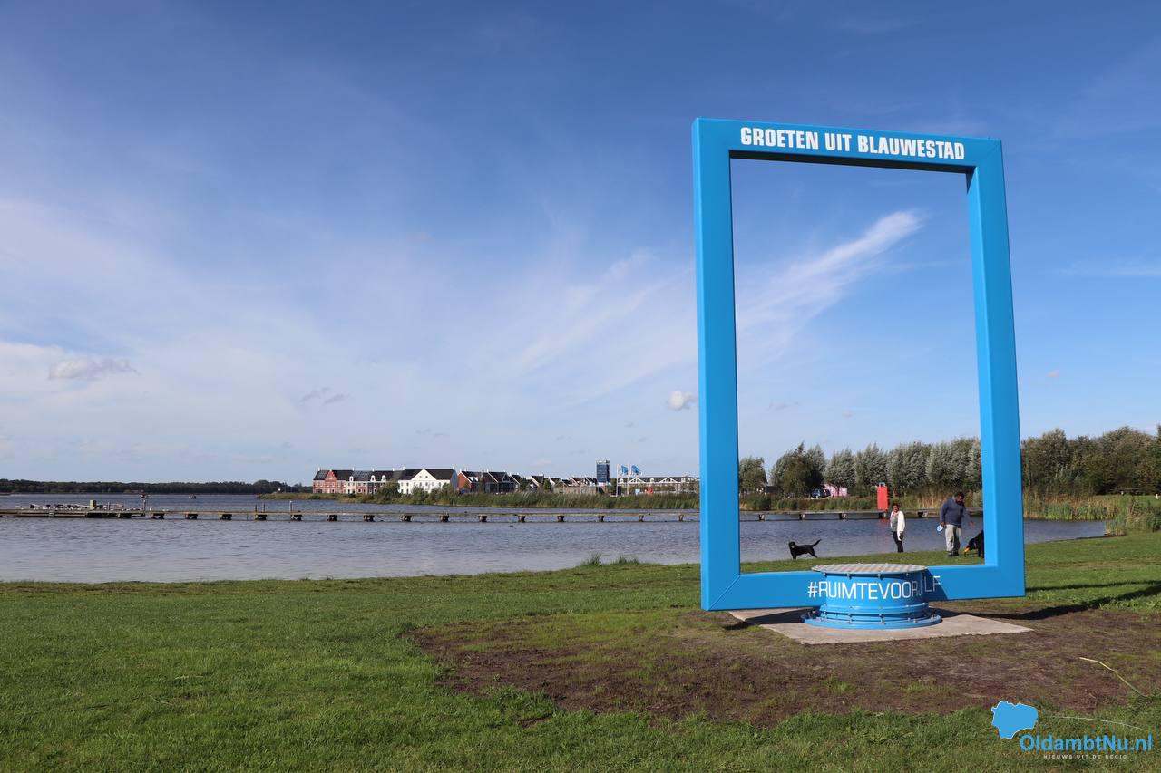 Blauwestad – Wie de afgelopen dagen in de buurt van de Wilgenborg was, heeft hem vast al gespot: een groot blauw venster bij het hondenstrandje langs de Elfenbank. Al voordat de letters van Blauwestad erop stonden, werden er al volop foto’s gemaakt en gedeeld op de sociale media.