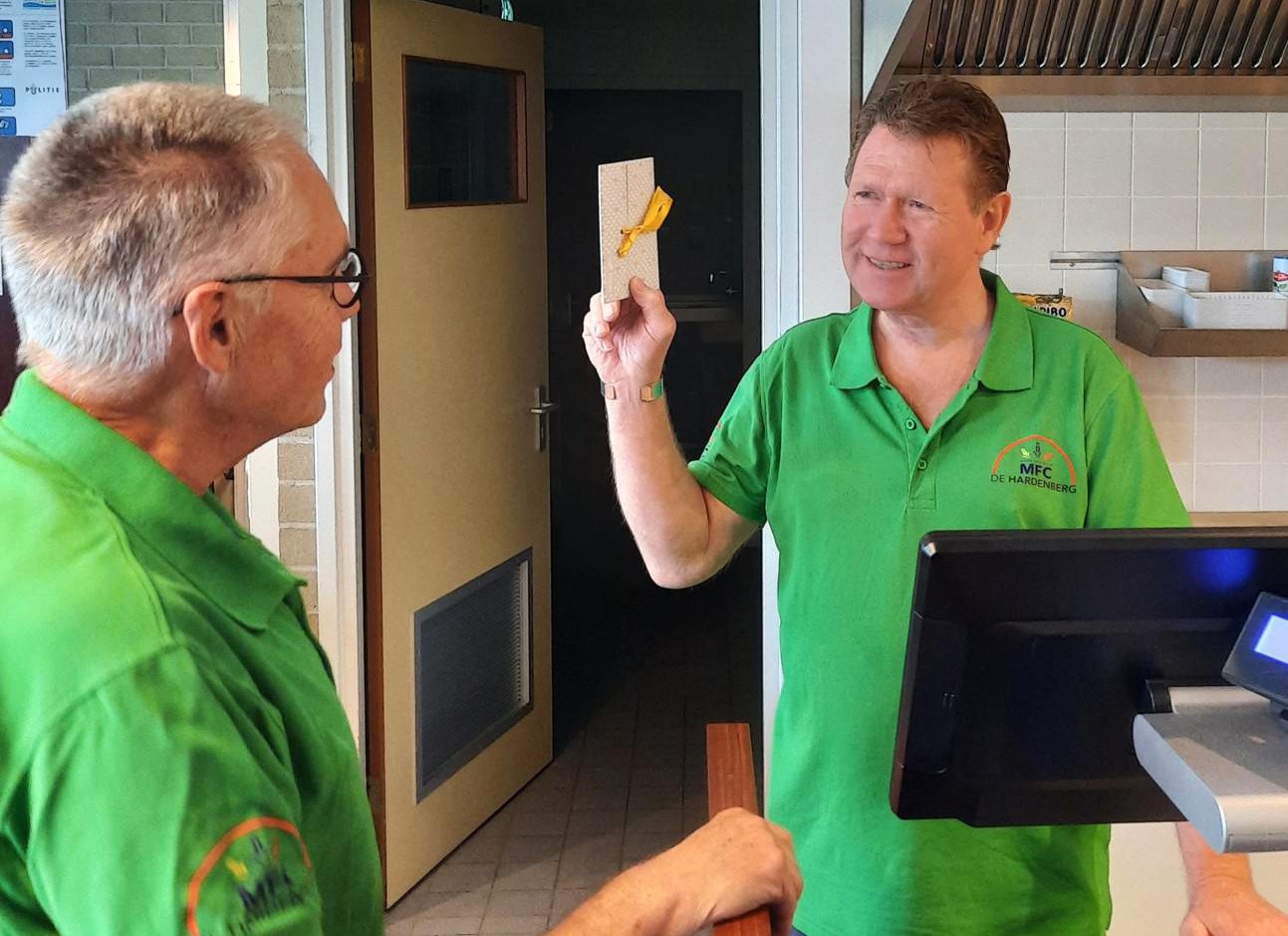 De afgelopen maand september heeft hij met veel plezier de vrijwilligers van MFC de Hardenberg op weg geholpen met alles wat te doen is in dit sportcentrum. Arie Erkelens bood hem een theater bon aan en bedankte hem voor zijn inzet de afgelopen periode.