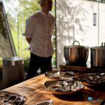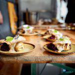 Zo was er een venkelspritz als aperitief, een amuse van lisdodde en paddenstoelen en bestond het hoofdgerecht uit wildgrazend Galloway rund, rode zuurkool, emmertarwe en pompoen. Om maar iets te noemen.
