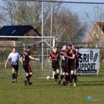 Zo’n spektakel werd het zondagmiddag niet in Drieborg. Onder zonnige omstandigheden wist de thuisploeg het de gasten nog aardig lastig te maken. Voor rust wist Drieborg de koploper van scoren af te houden, maar die doelpuntloze gelijke stand bleef in de tweede helft niet lang op het scorebord staan.