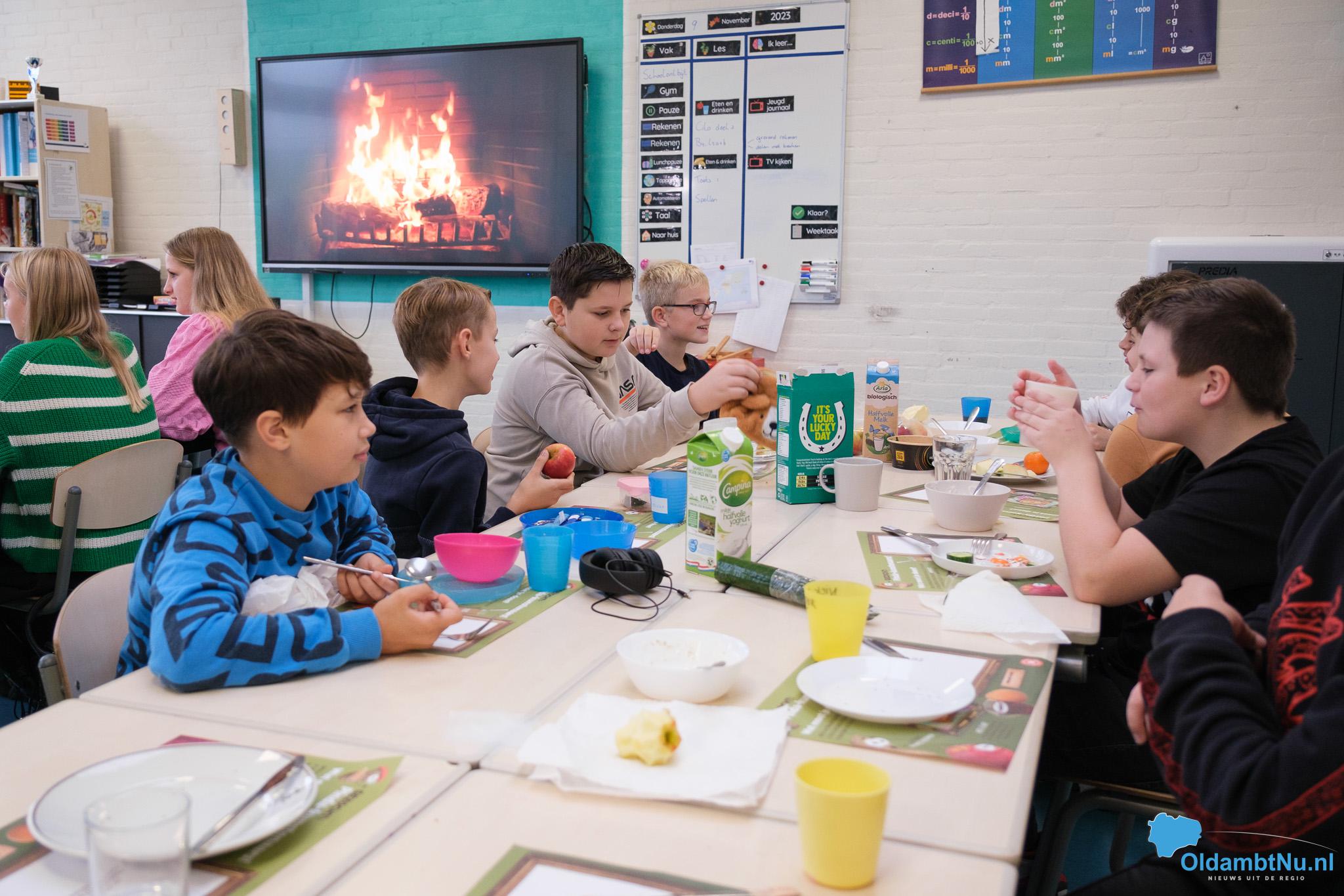 Ze spraken met de leerlingen over het belang van een gezond ontbijt. Uit die gesprekken bleek dat het ontbijt nog wel eens wordt overgeslagen. Goed dat er nu aandacht aan wordt besteed!