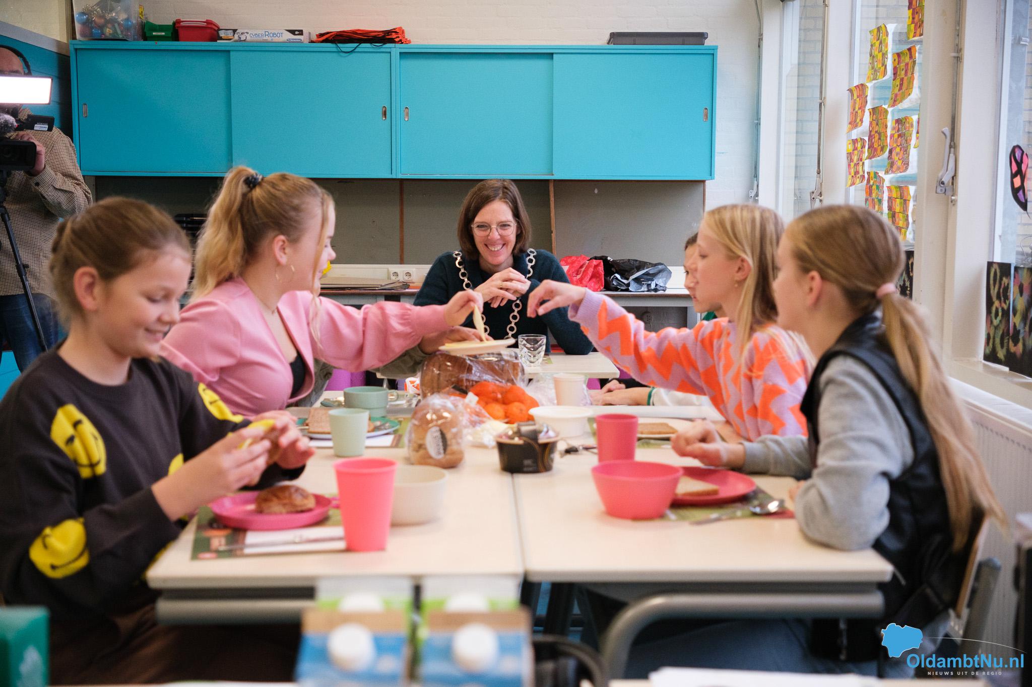 Burgemeester en wethouder ontbijten met leerlingen Kleine Dollard