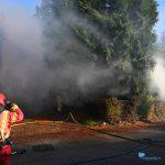Brandende schuur met autobanden zorgt voor flinke rookontwikkeling