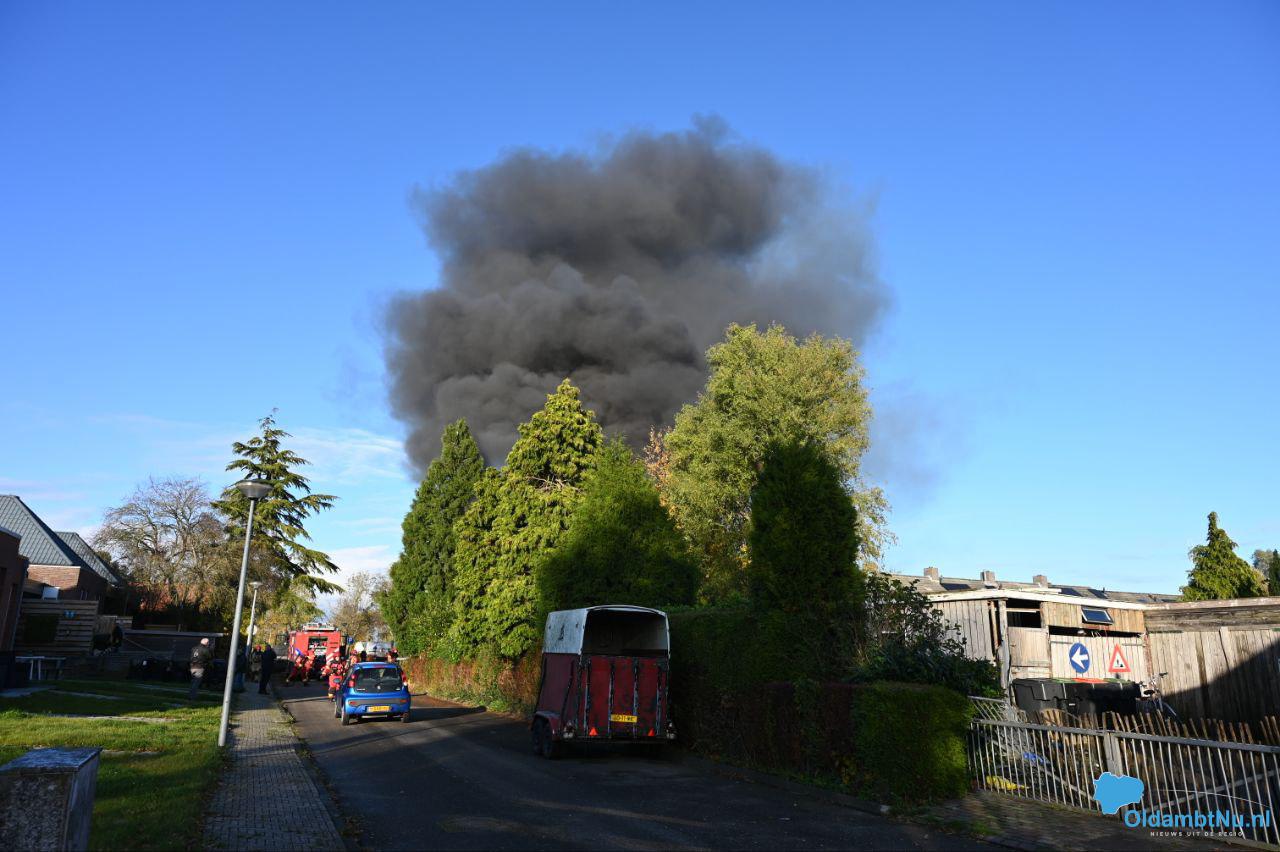 Brandende schuur met autobanden zorgt voor flinke rookontwikkeling