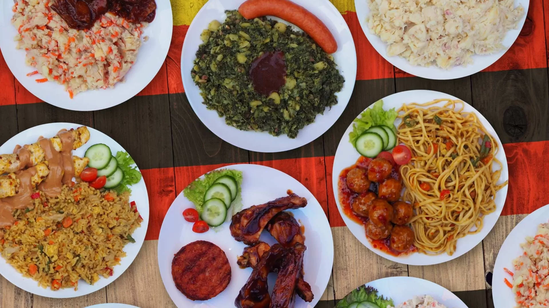 Het barbecuebuffet bestaat uit spareribs, kipsaté, grillburger en een braadworst. Dit wordt aangevuld met krieltjes, aardappelen, kartoffel- en huzarensalade. Ook worden er sausen bijgeleverd evenals bbq brood en kruidenboter.