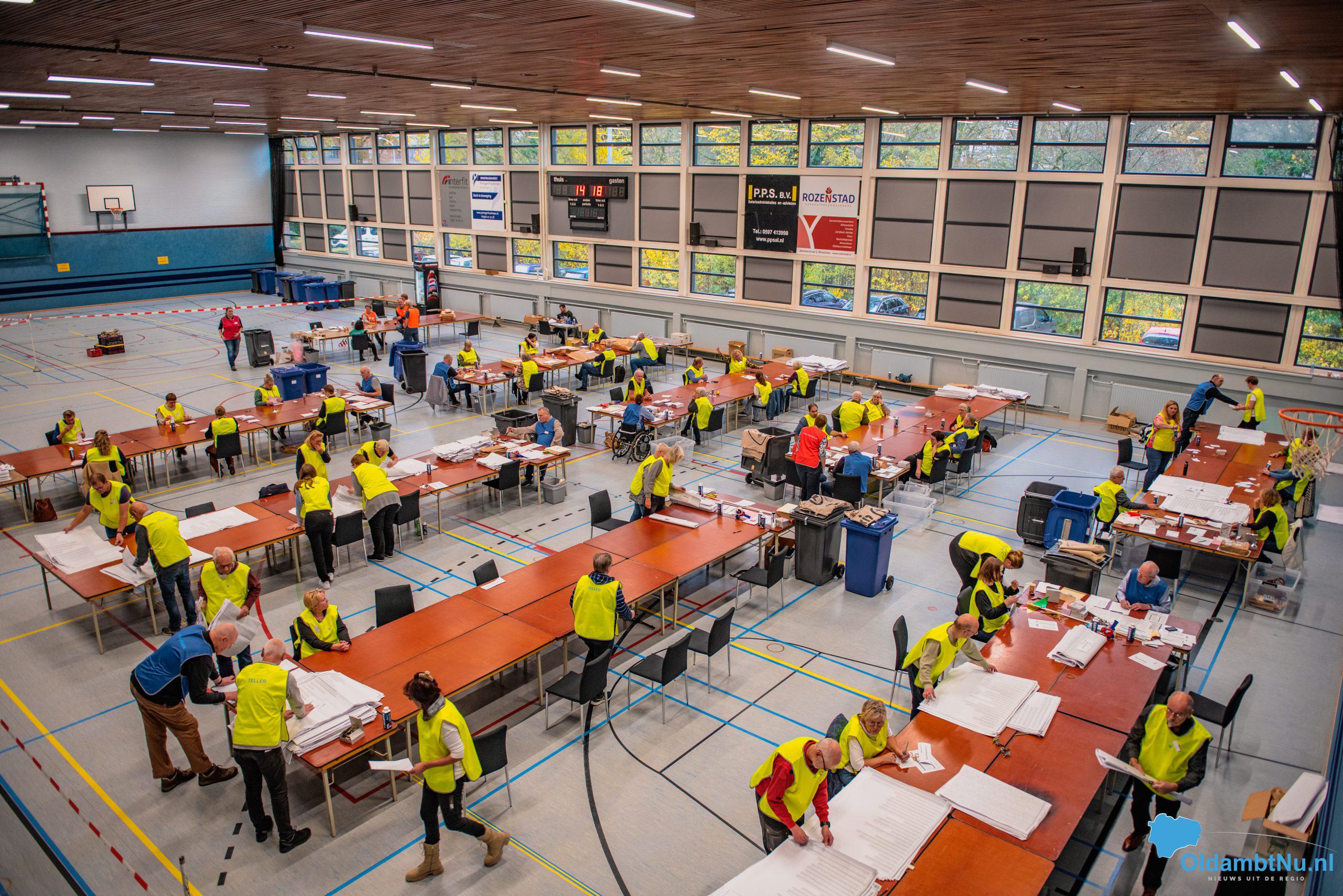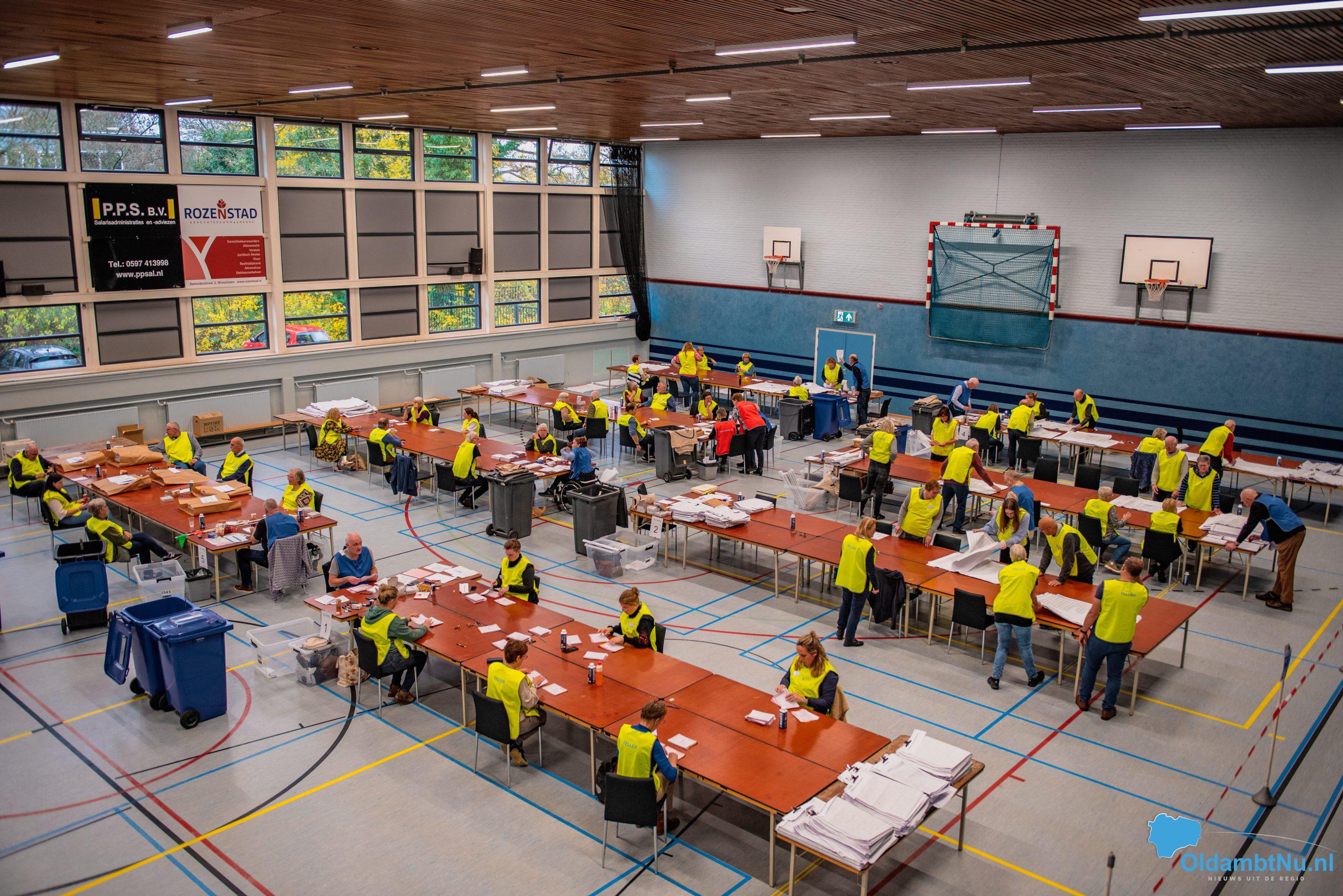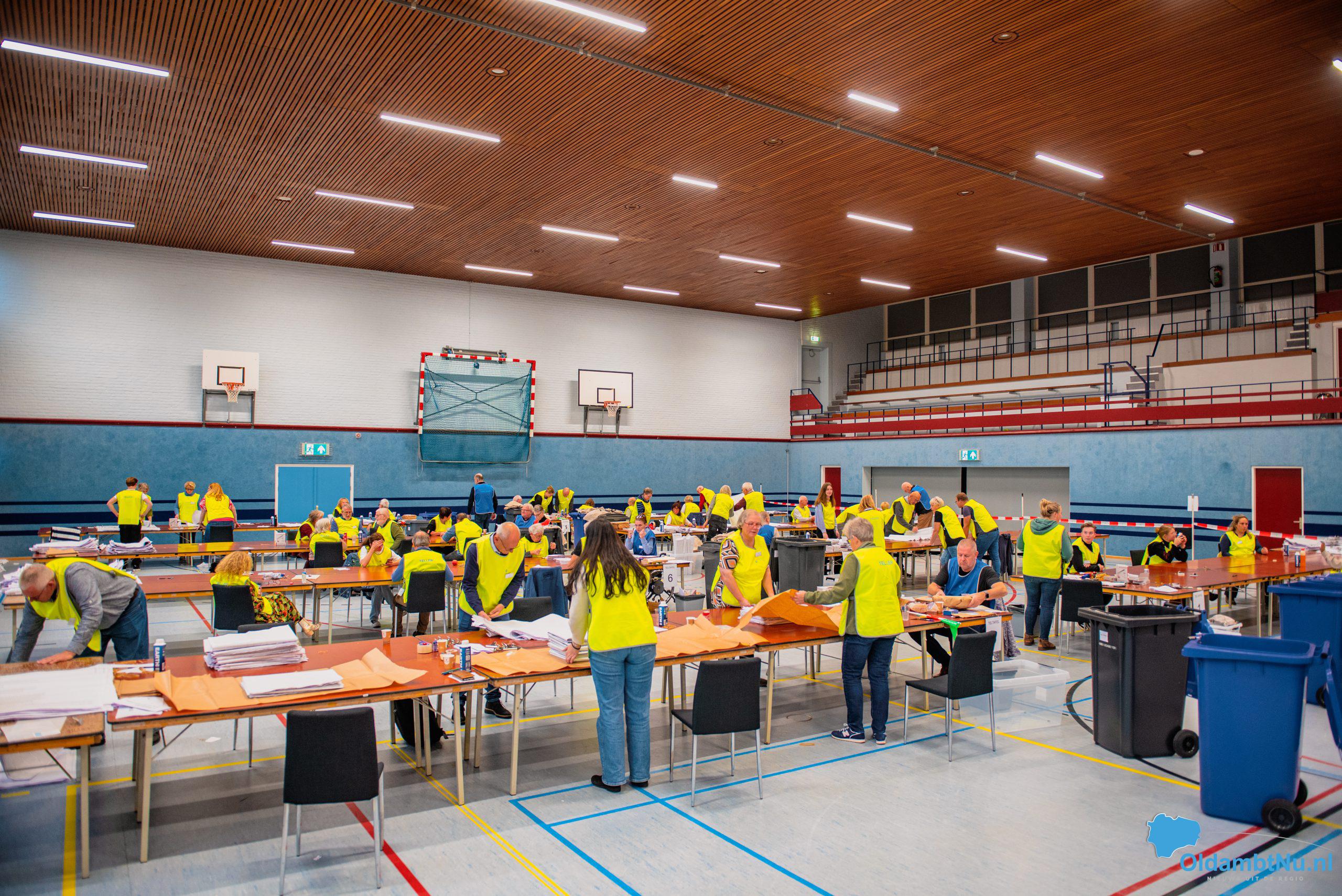 Oldambt – In de sporthal aan de Mr. D.U. Stikkerlaan zijn vandaag ruim tachtig personen aan de slag met het opnieuw tellen van de kieslijsten van de Tweede Kamer verkiezing. Gisteren is geteld op partijniveau en vandaag op kandidaatsniveau. Dus alle kieslijsten gaan opnieuw door vele handen.