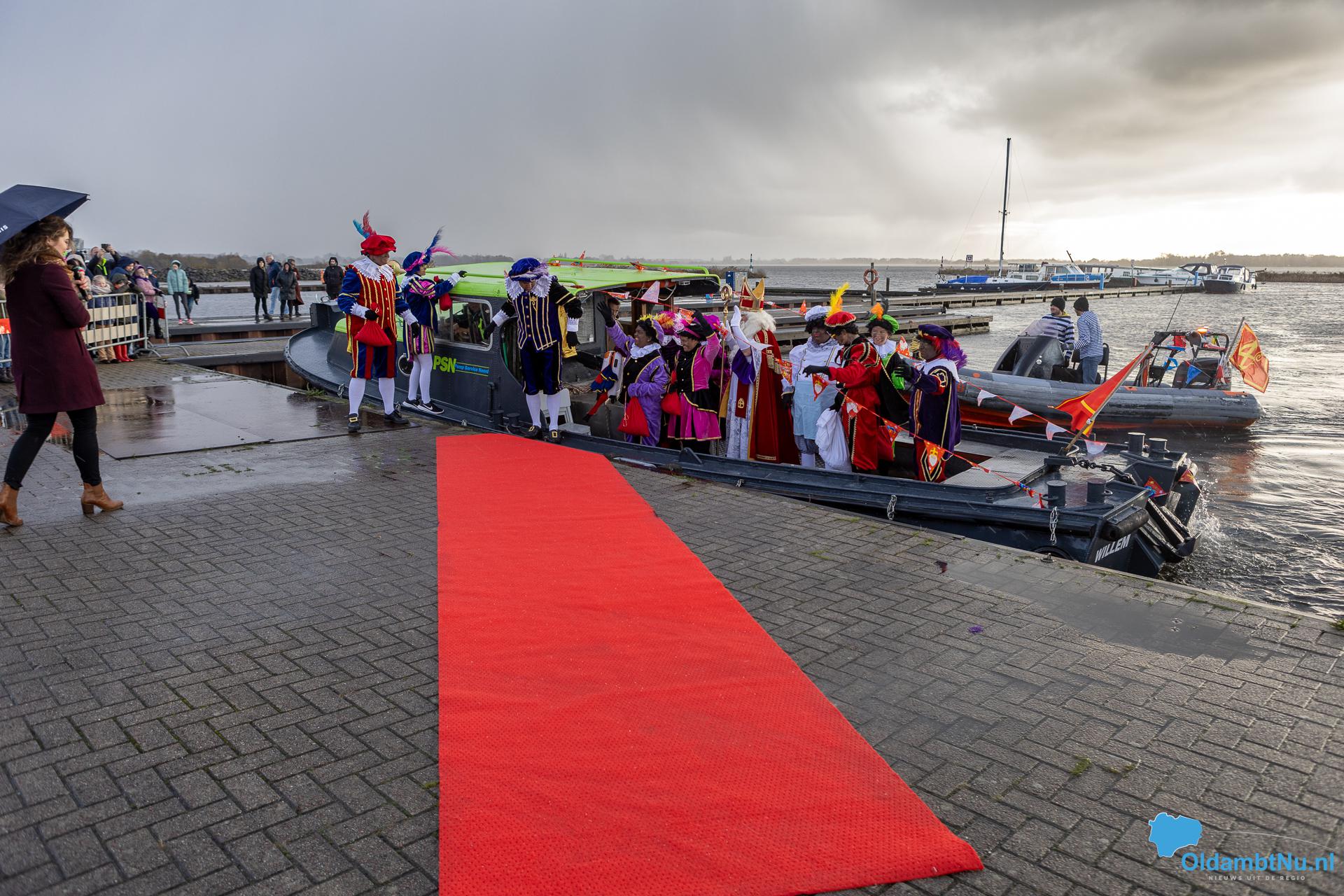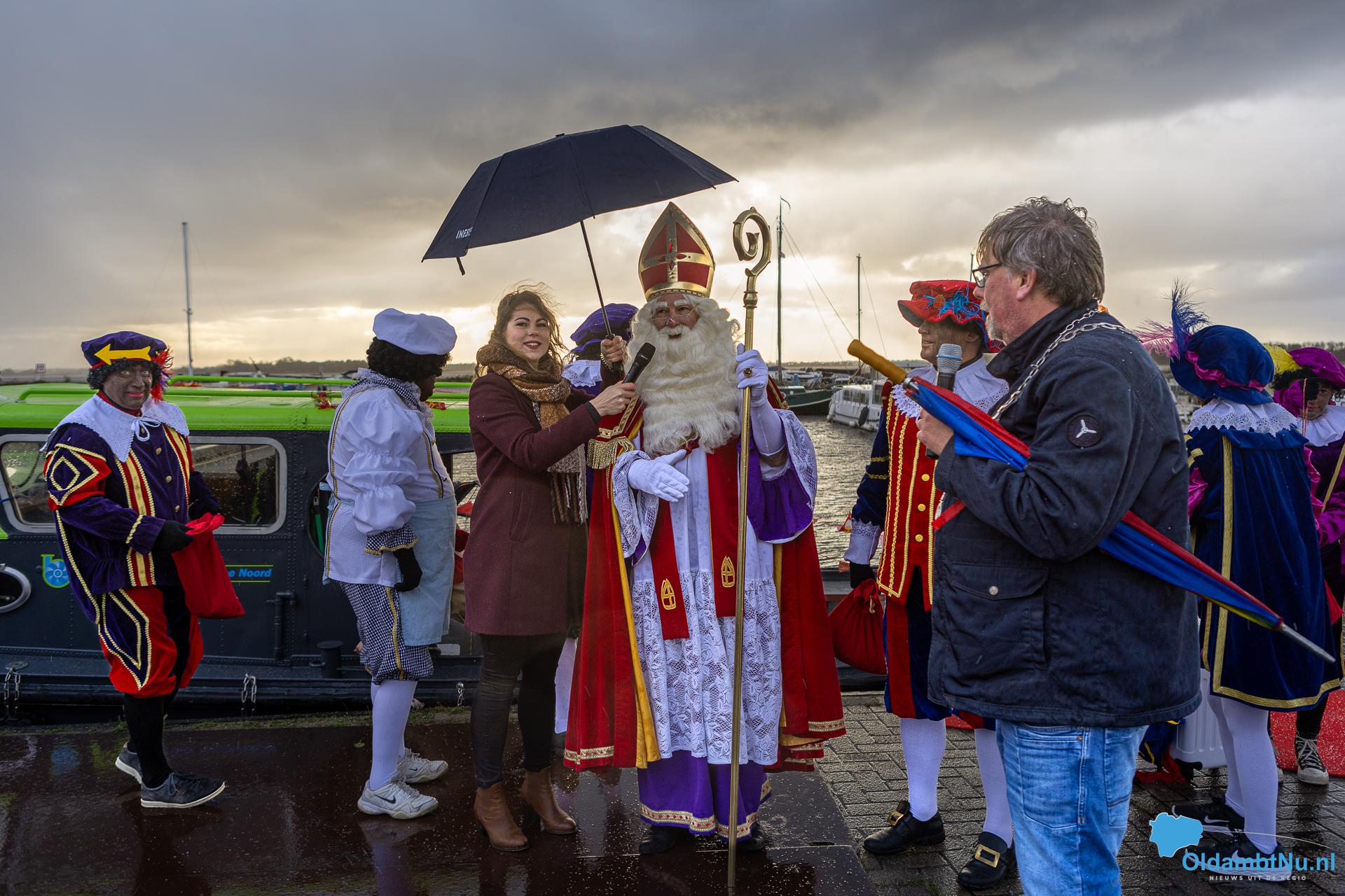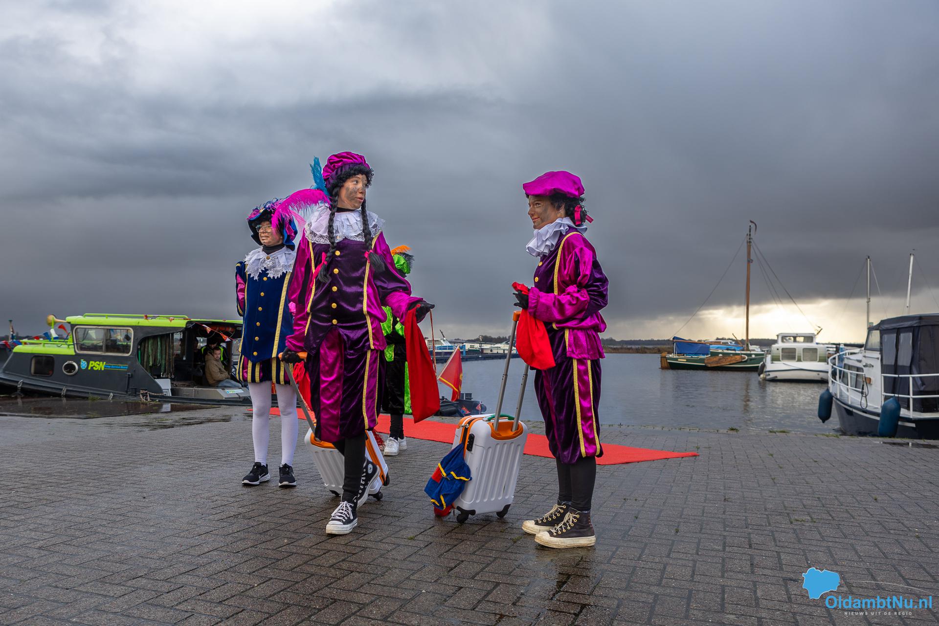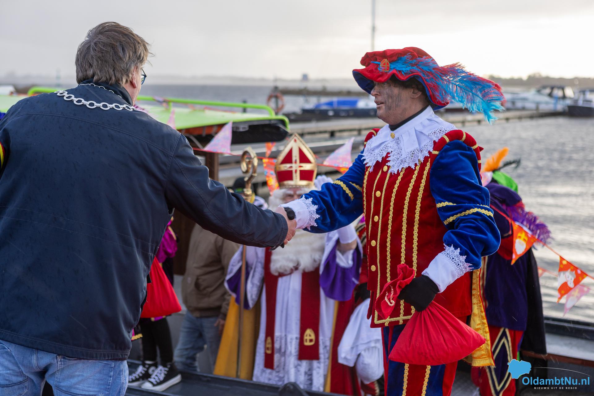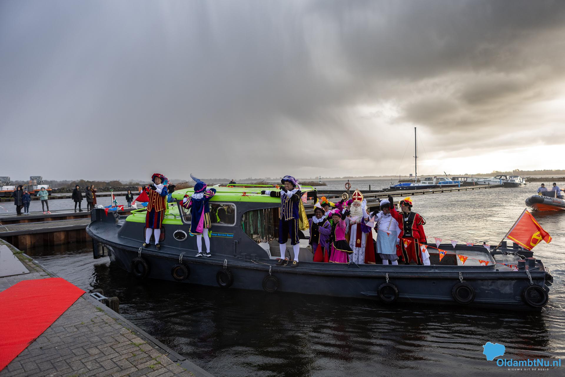 Niet veel later kwam Sinterklaas en zijn Pieten aan in de haven. Sint, met zijn staf in de hand en een glimlach van oor tot oor, stapte van de boot af waarna hij werd verwelkomt door wethouder Gert Engelkens. Na het in ontvangst nemen van tekeningen, besloot Sinterklaas om eerst naar Oostwold te gaan, naar café De Jacht.