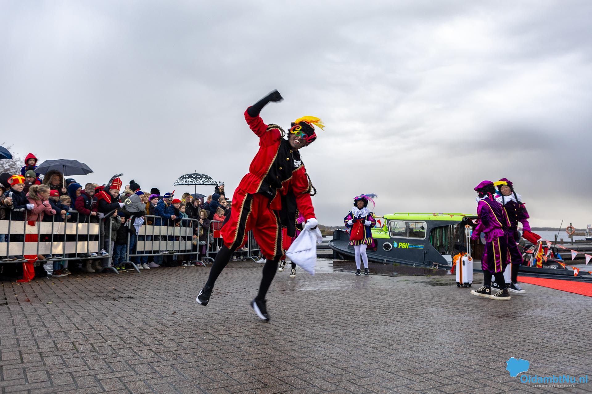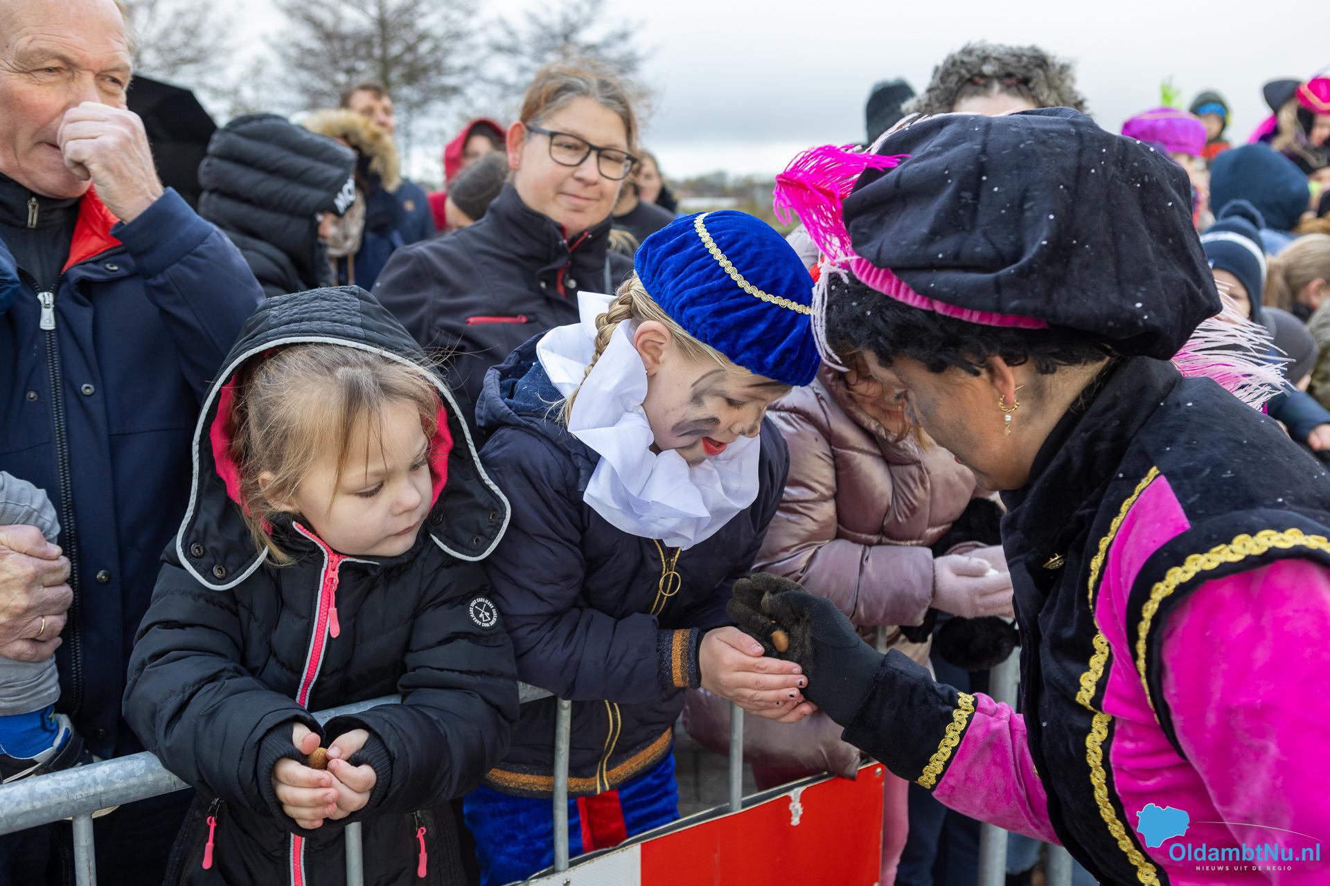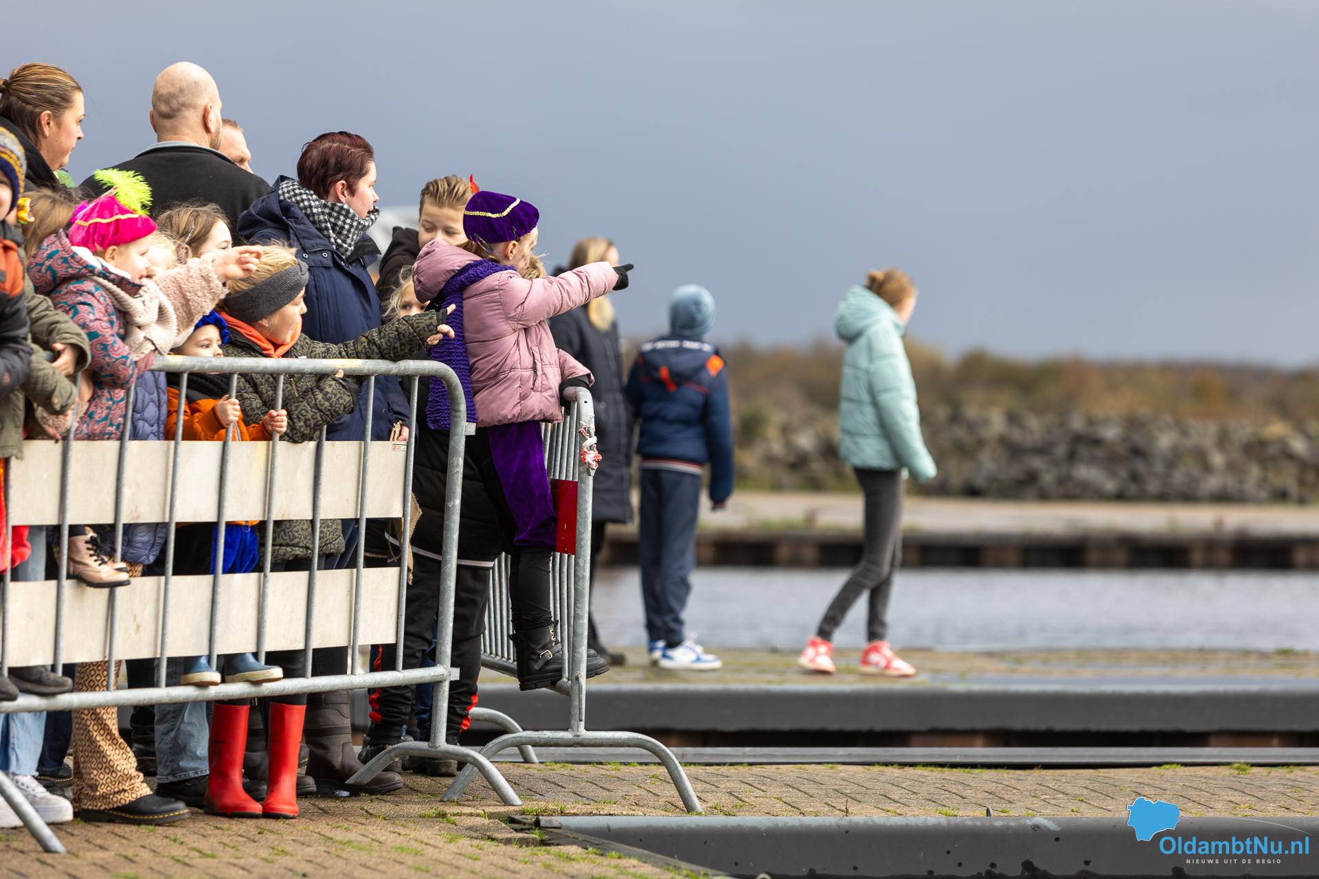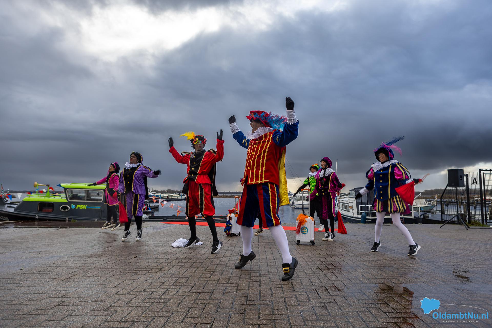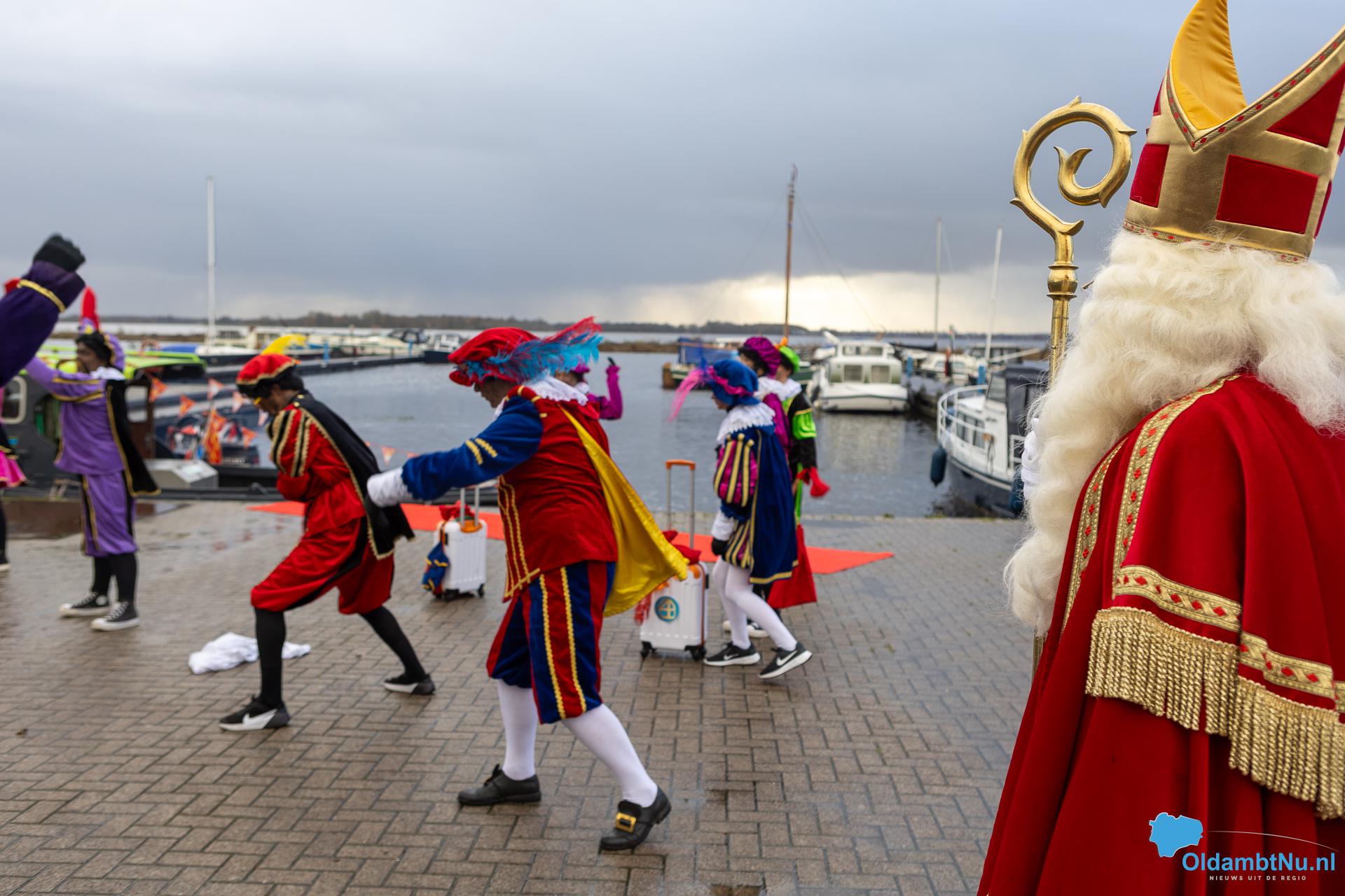 Niet veel later kwam Sinterklaas en zijn Pieten aan in de haven. Sint, met zijn staf in de hand en een glimlach van oor tot oor, stapte van de boot af waarna hij werd verwelkomt door wethouder Gert Engelkens. Na het in ontvangst nemen van tekeningen, besloot Sinterklaas om eerst naar Oostwold te gaan, naar café De Jacht.