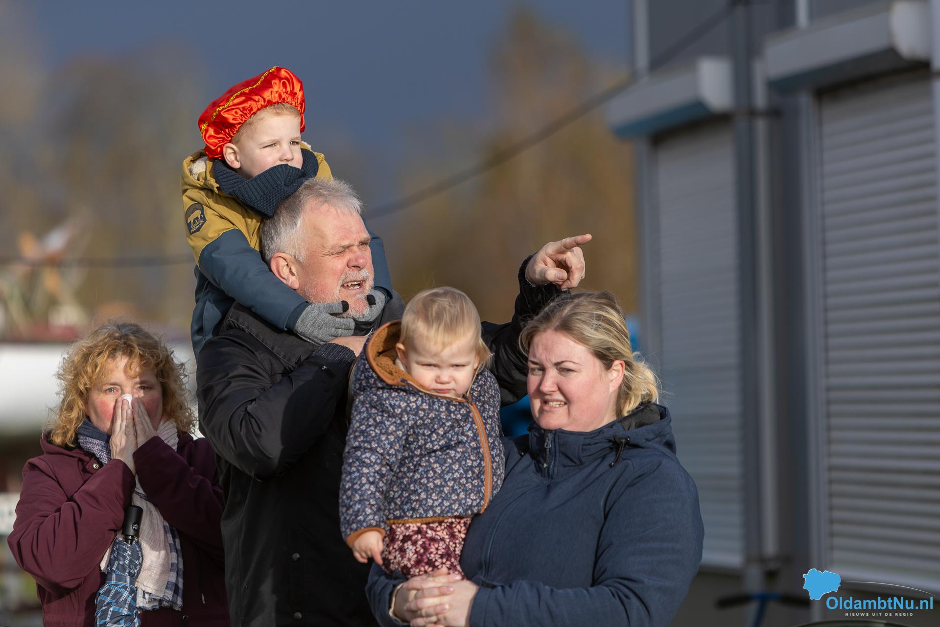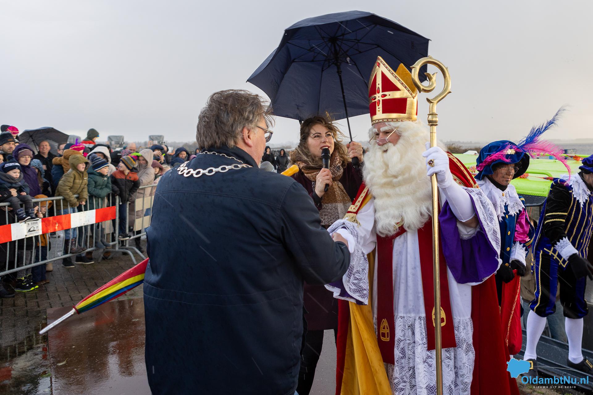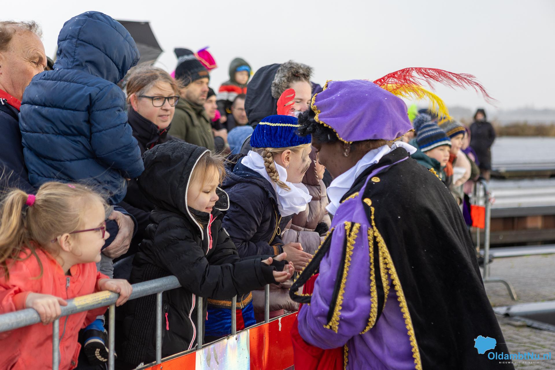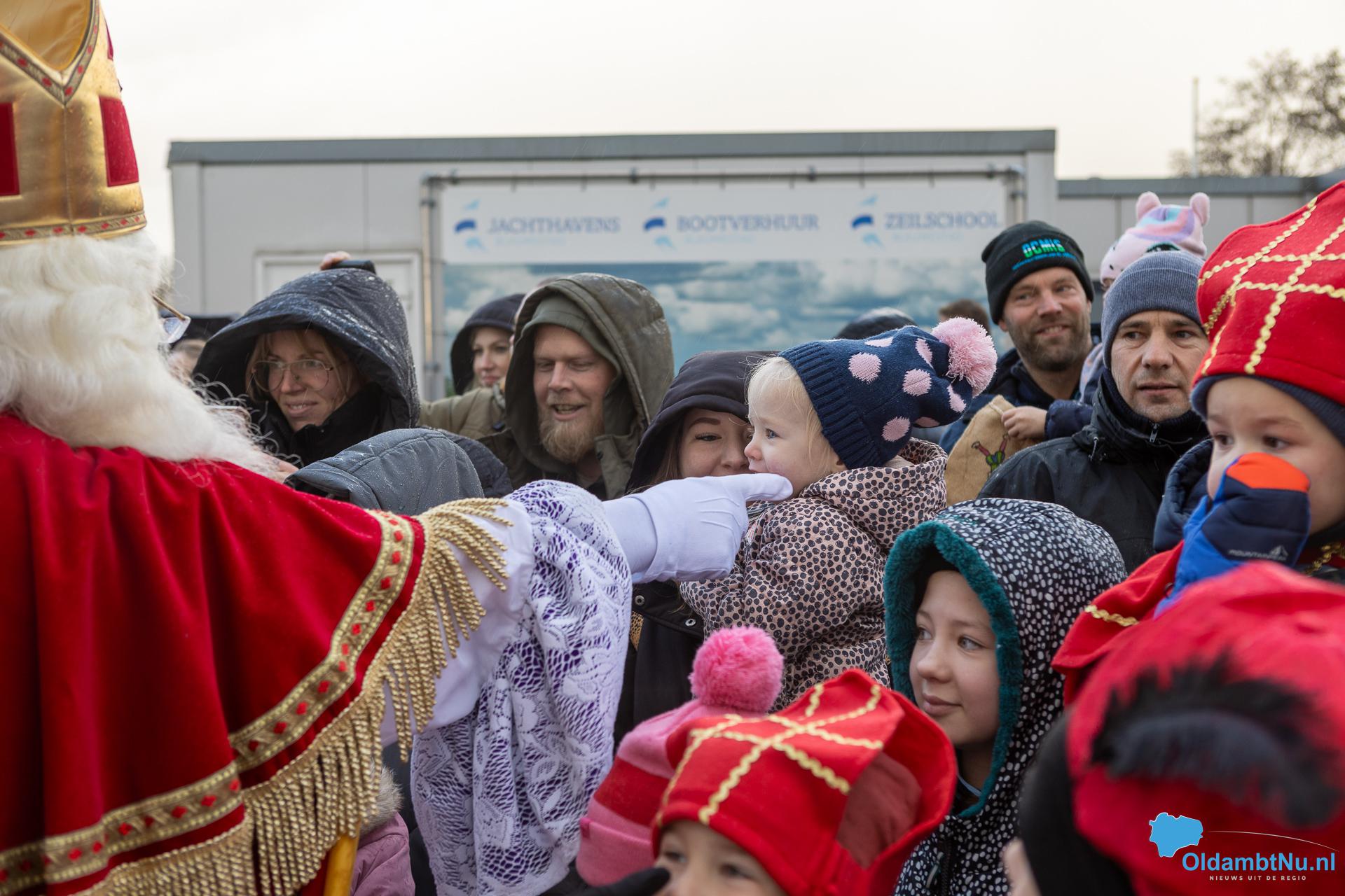 Niet veel later kwam Sinterklaas en zijn Pieten aan in de haven. Sint, met zijn staf in de hand en een glimlach van oor tot oor, stapte van de boot af waarna hij werd verwelkomt door wethouder Gert Engelkens. Na het in ontvangst nemen van tekeningen, besloot Sinterklaas om eerst naar Oostwold te gaan, naar café De Jacht.