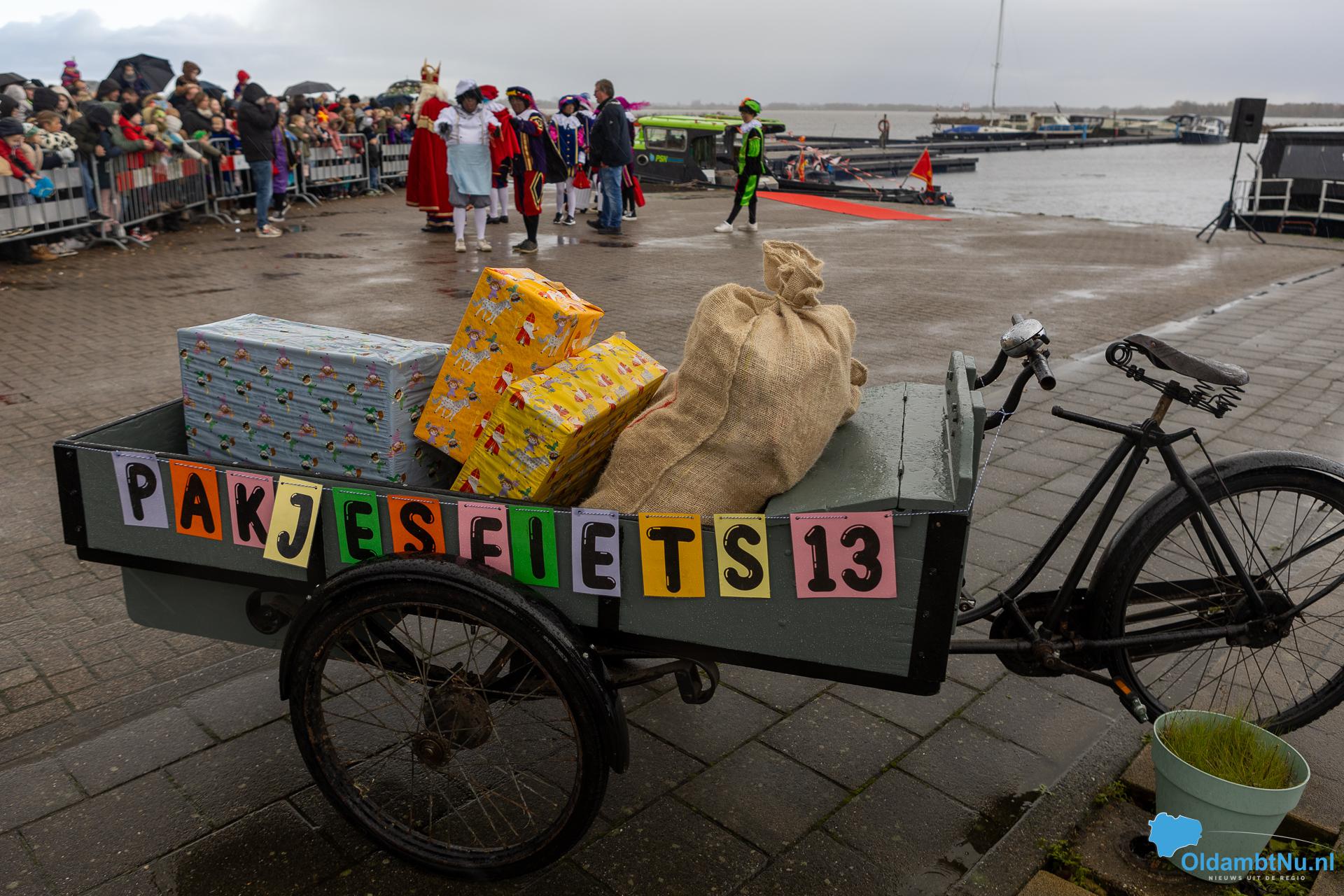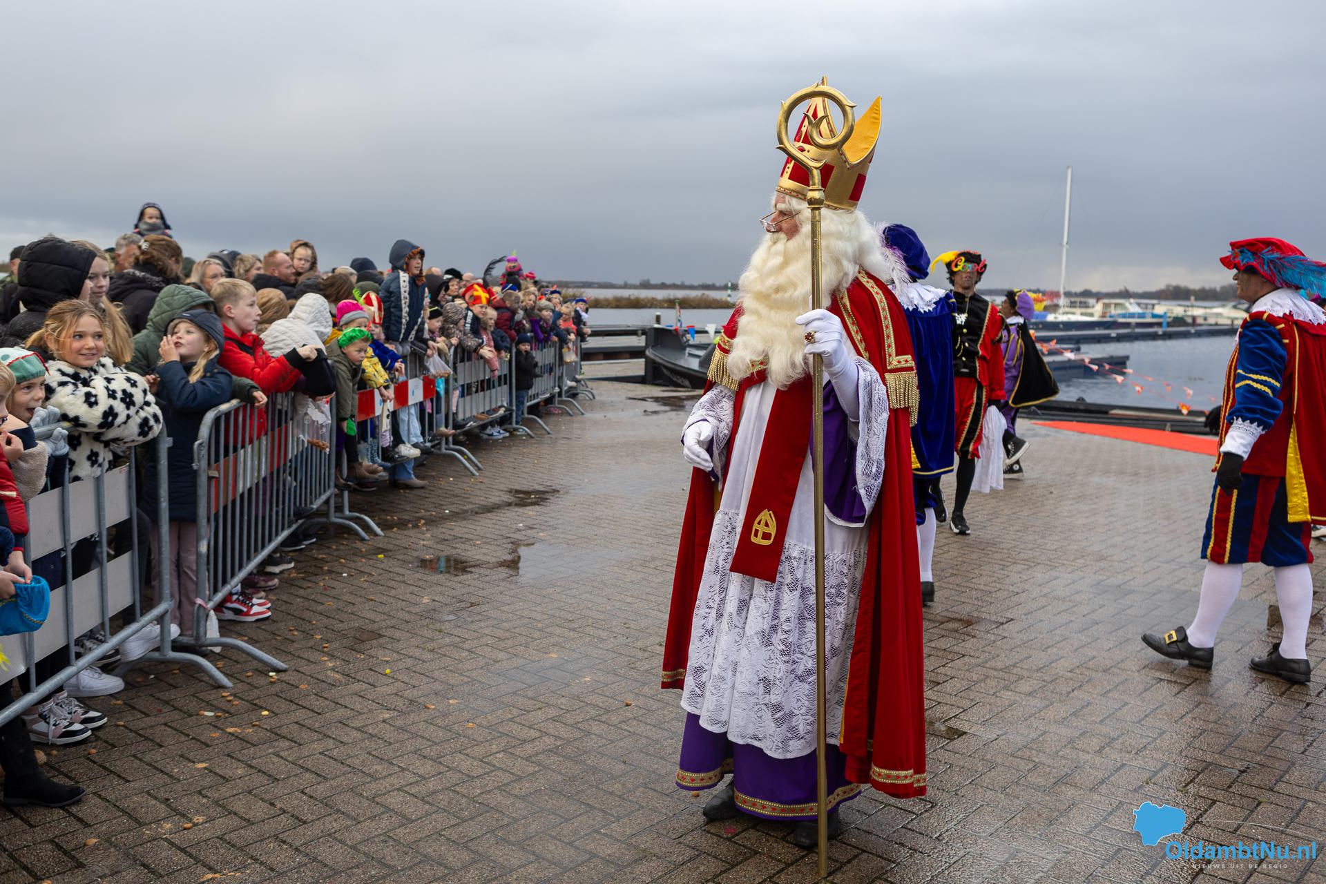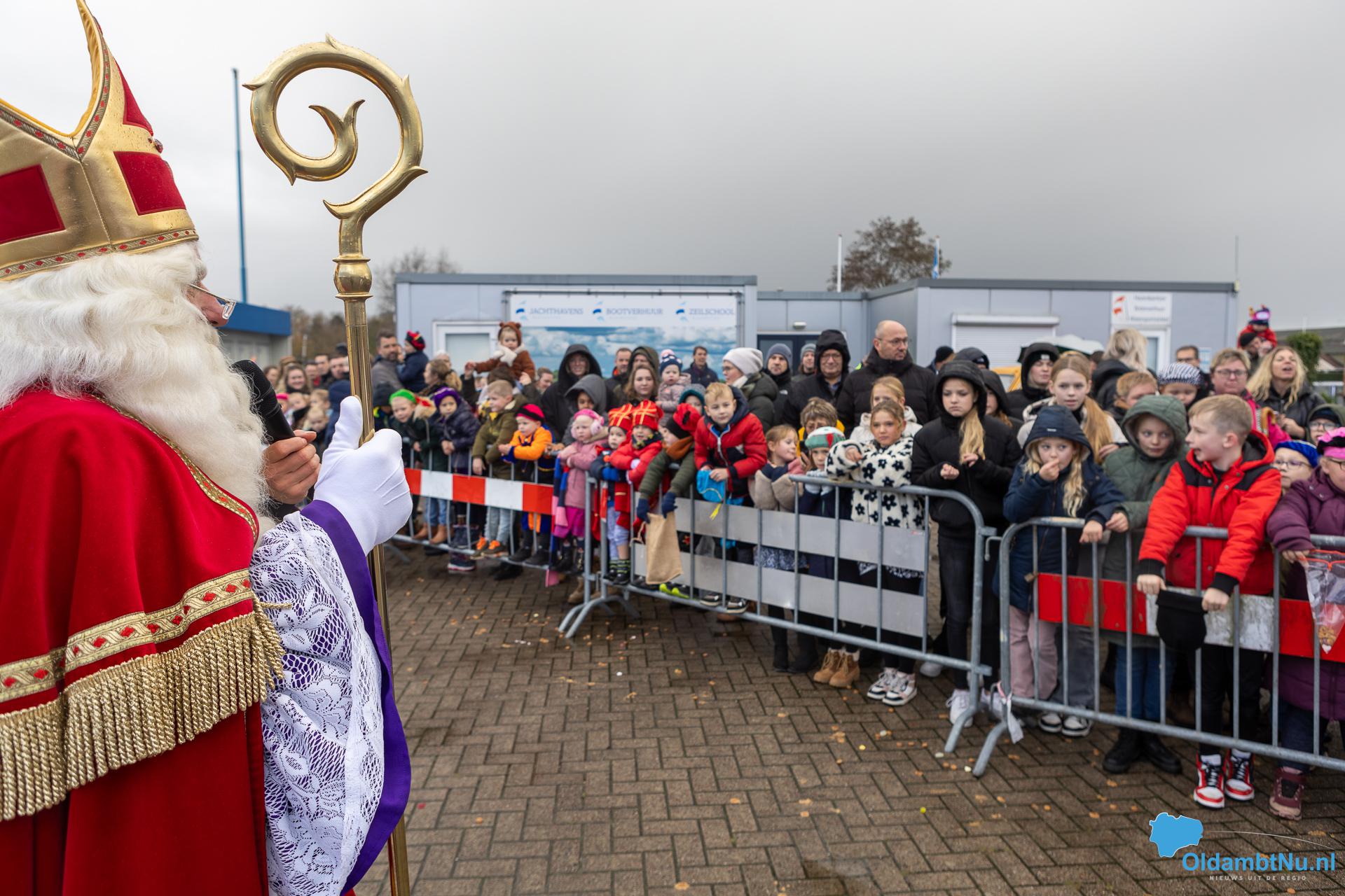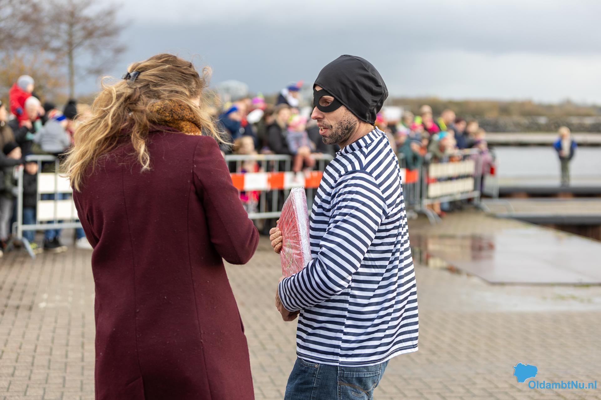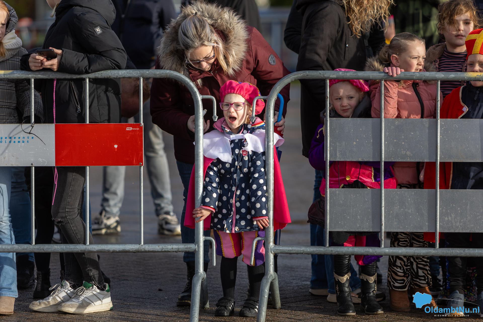 Niet veel later kwam Sinterklaas en zijn Pieten aan in de haven. Sint, met zijn staf in de hand en een glimlach van oor tot oor, stapte van de boot af waarna hij werd verwelkomt door wethouder Gert Engelkens. Na het in ontvangst nemen van tekeningen, besloot Sinterklaas om eerst naar Oostwold te gaan, naar café De Jacht.