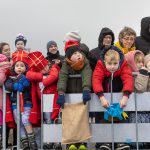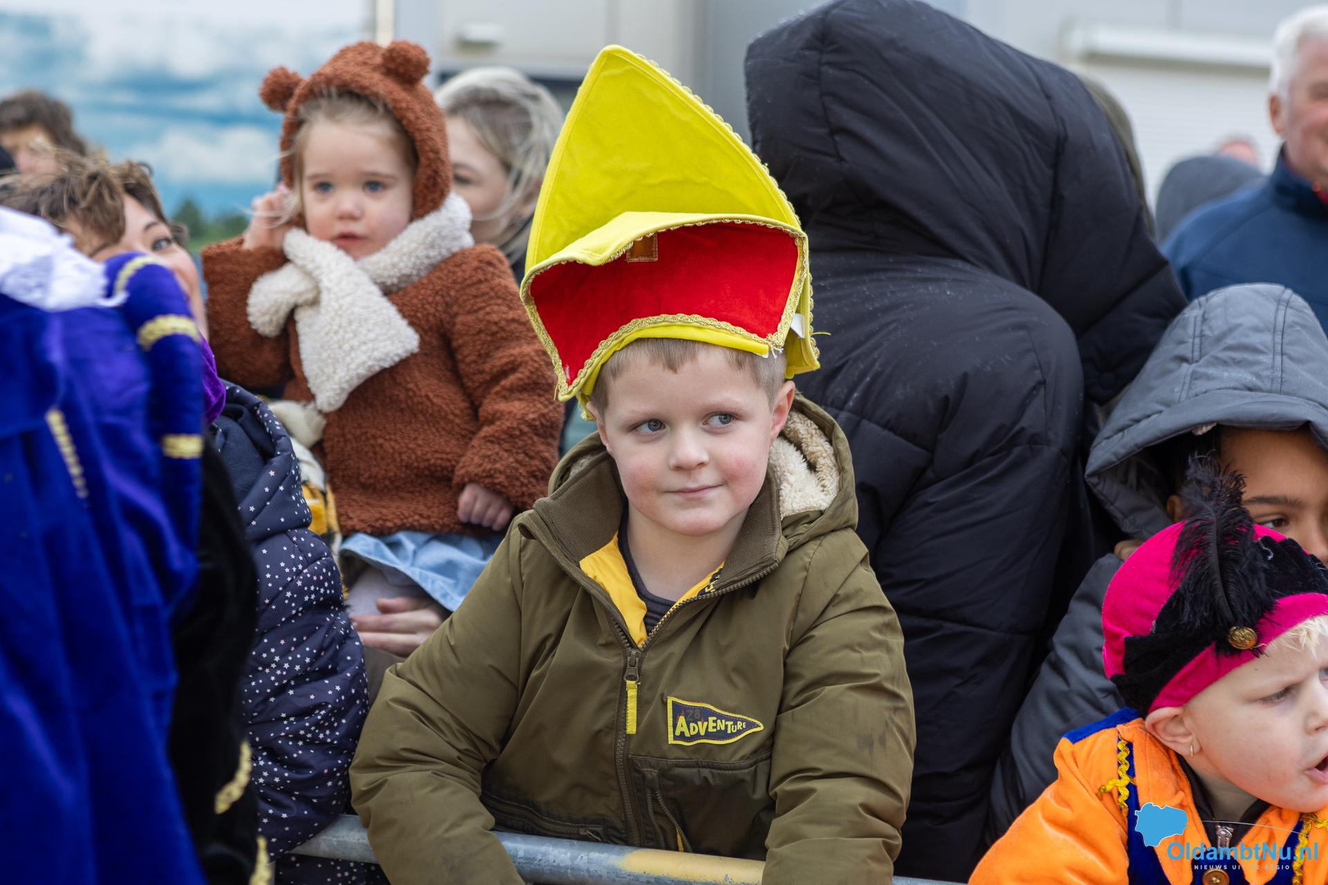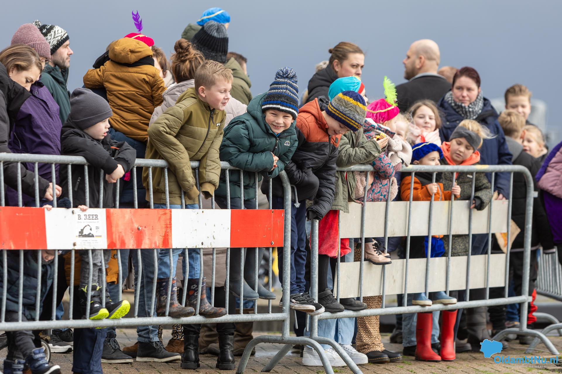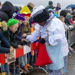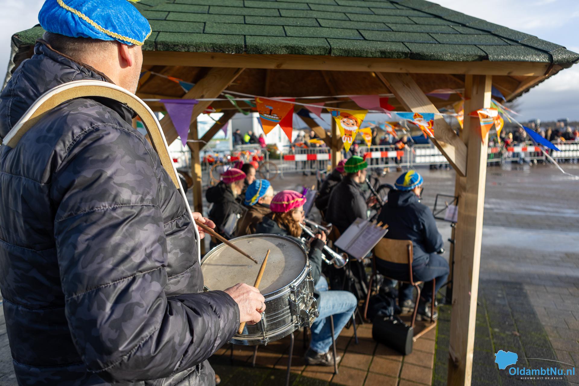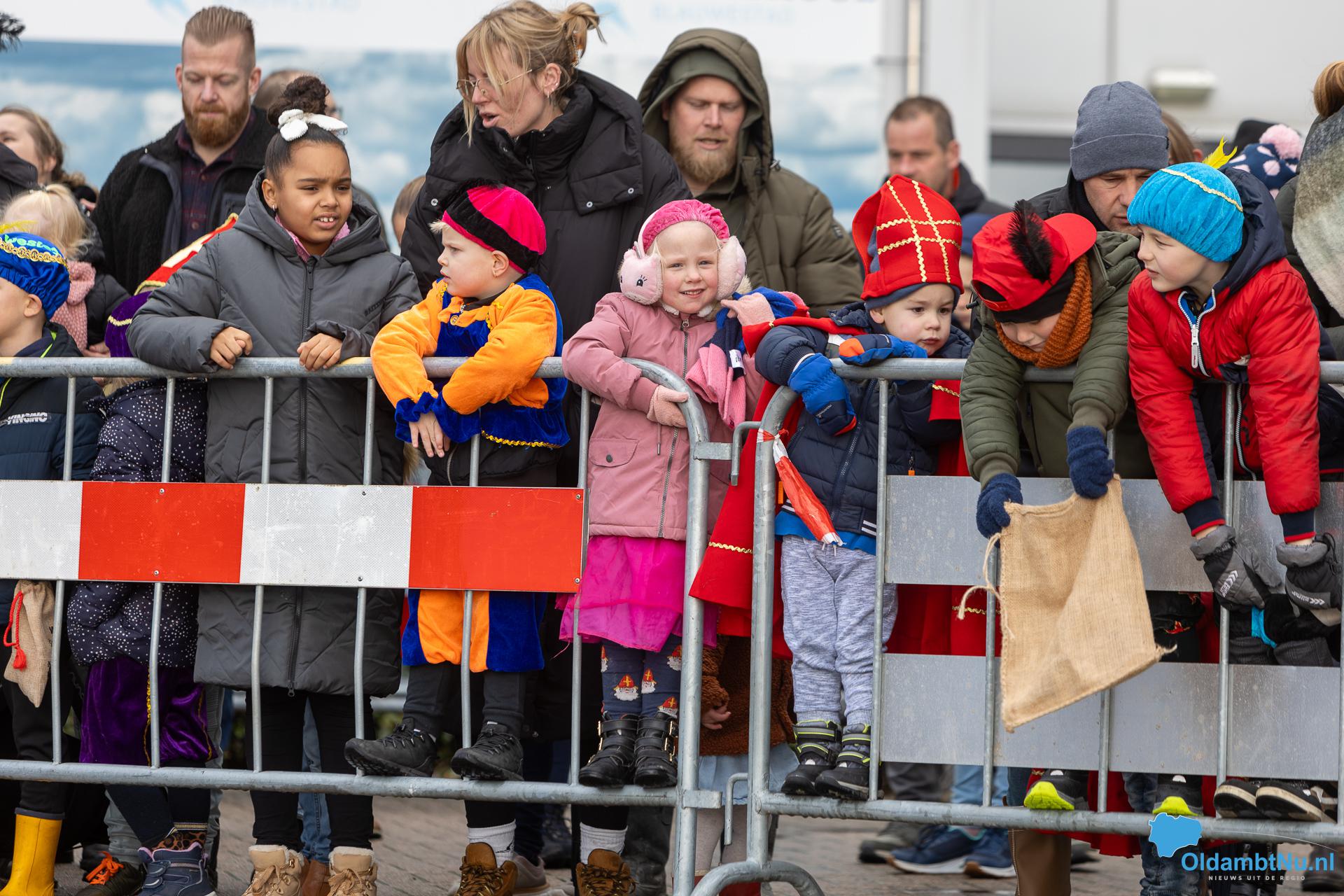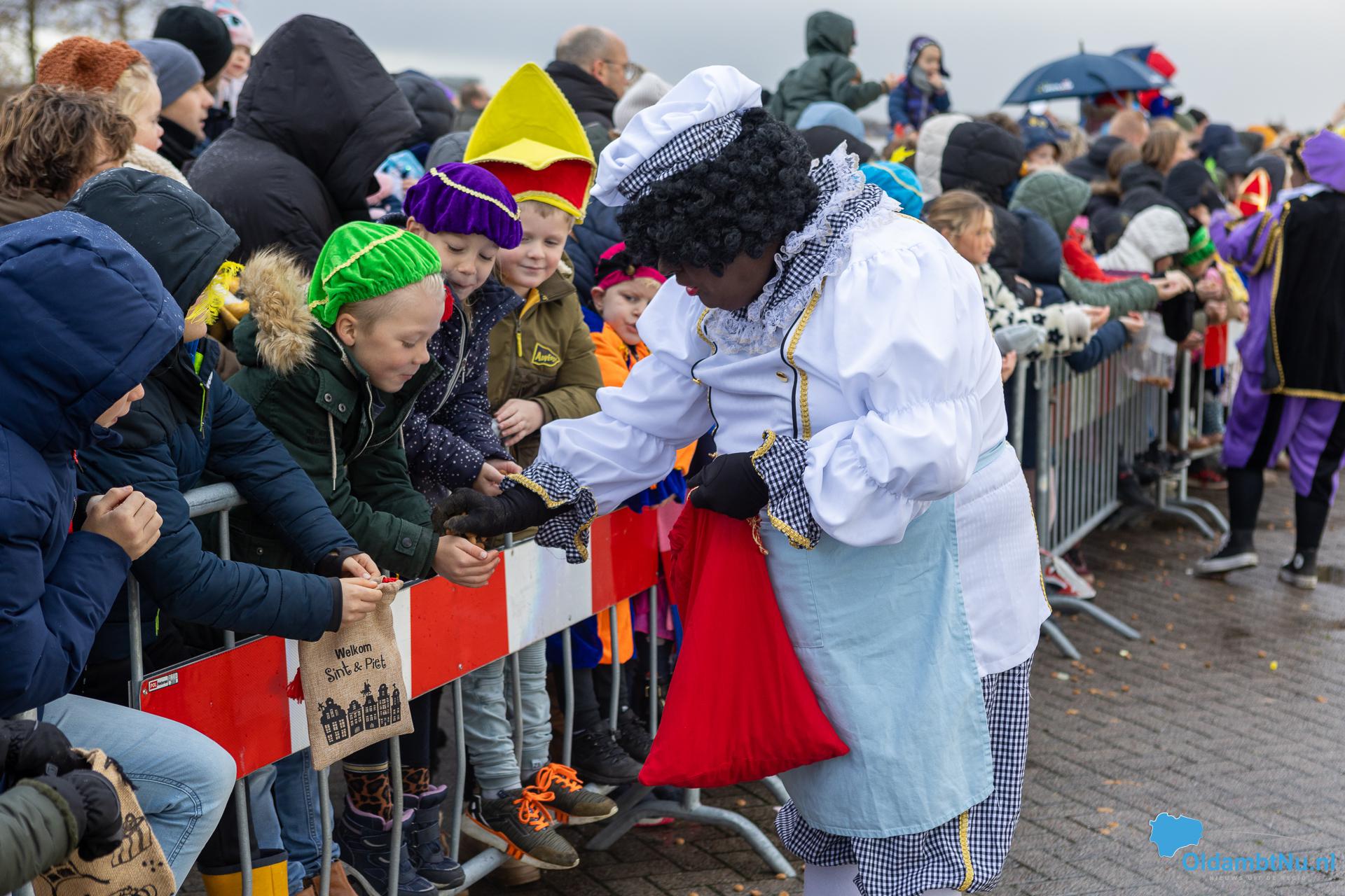 Niet veel later kwam Sinterklaas en zijn Pieten aan in de haven. Sint, met zijn staf in de hand en een glimlach van oor tot oor, stapte van de boot af waarna hij werd verwelkomt door wethouder Gert Engelkens. Na het in ontvangst nemen van tekeningen, besloot Sinterklaas om eerst naar Oostwold te gaan, naar café De Jacht.