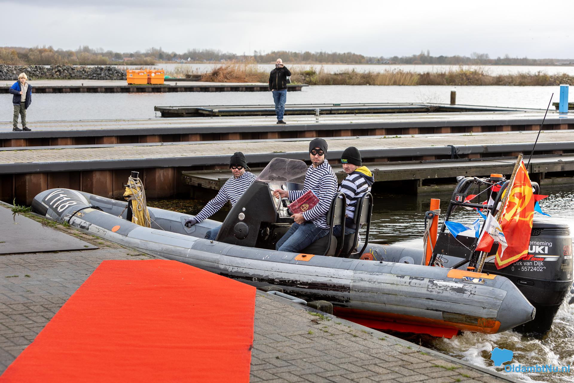 In beeld: Wethouder Gert Engelkens ontvangt Sint in Jachthaven Midwolda