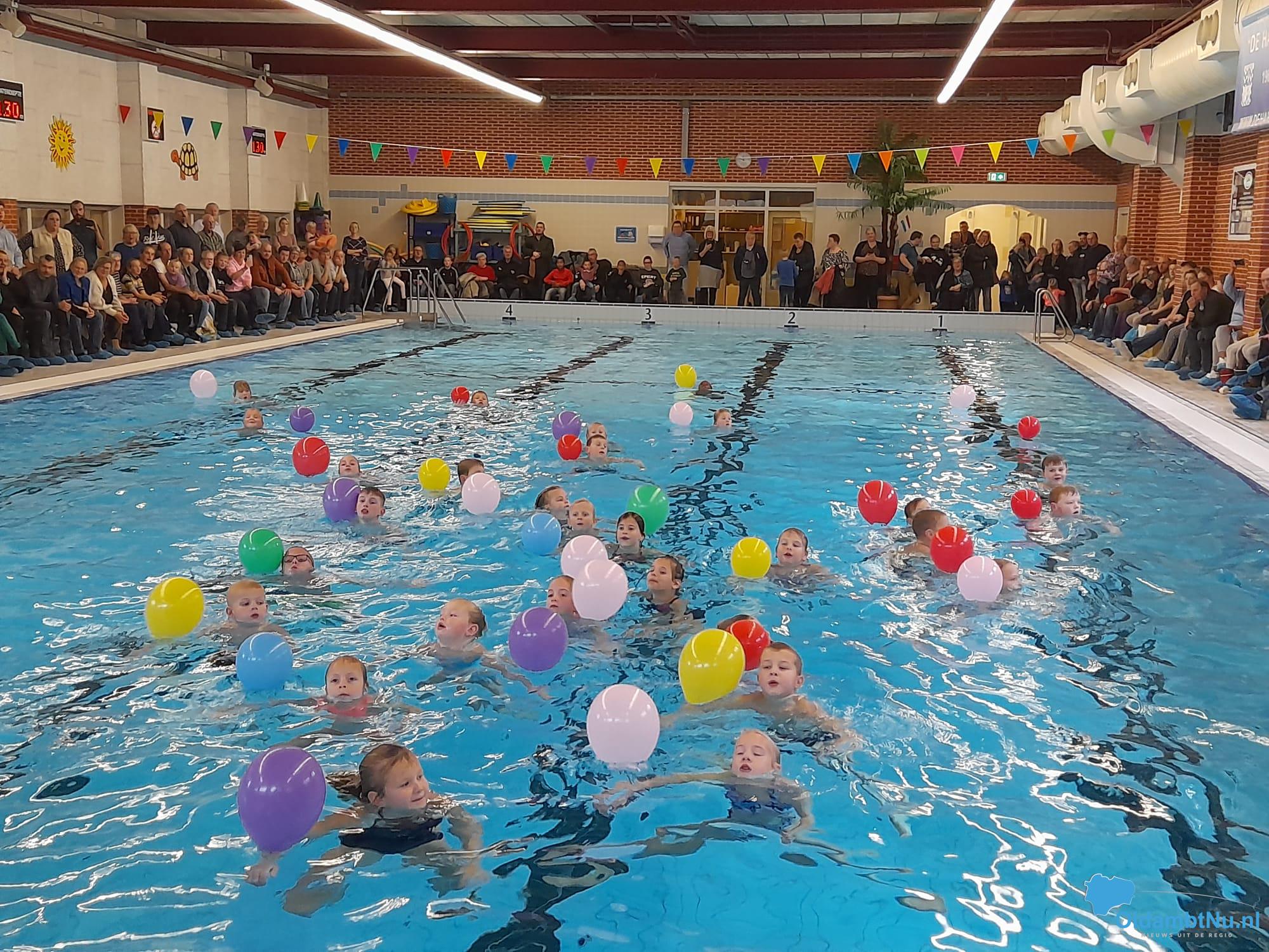 Oldambt – Onlangs werden er maar liefst 66 zwem ABC diploma’s uitgereikt door zwemschool Henny de Groot in het zwembad de Hardenberg in Finsterwolde. 37 kinderen slaagden voor hun diploma A en 29 voor B of C. Voor het eerst ook aan Oldambster kinderen na de overname door de gelijknamige stichting van het met sluiting bedreigde complex.