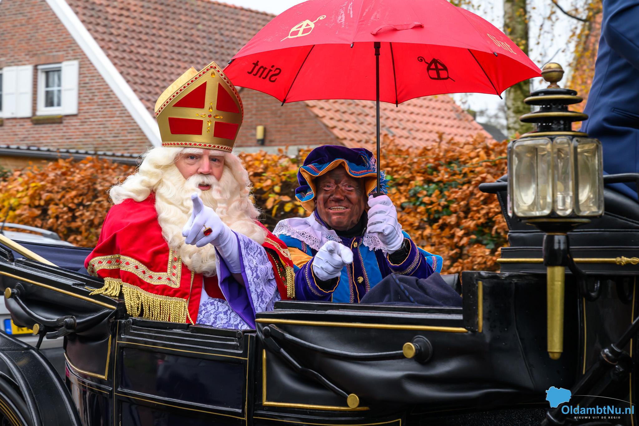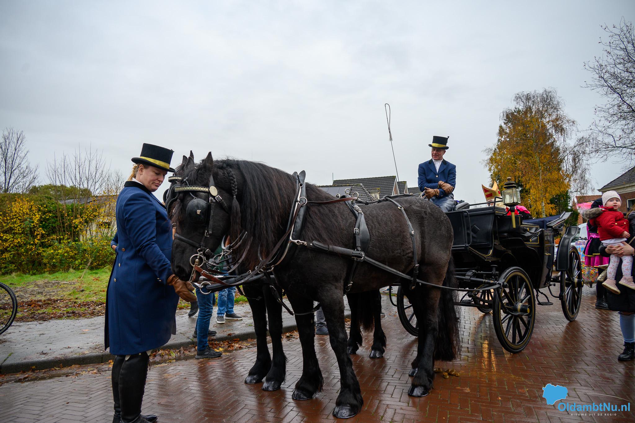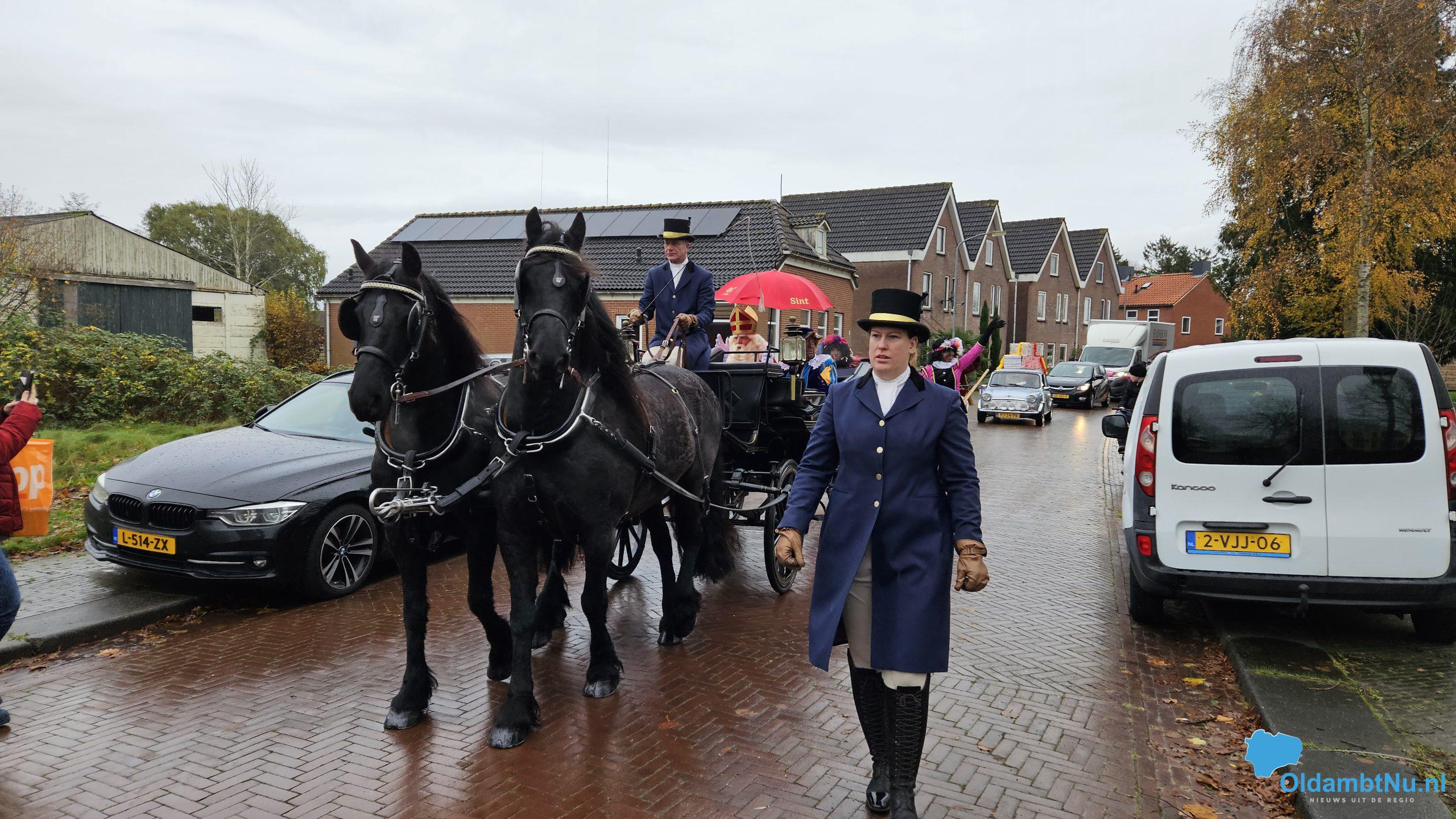 Een grote pakjeswagen, de Sint en zijn hoofdpiet in een open koets met twee Friese paarden ervoor, zijn zondagmiddag door de straten van het oude vestingdorp gereden, om vervolgens in de muziekkoepel de kinderen van Bad Nieuweschans te laten weten dat ook dit jaar de Sint er weer voor hen is.