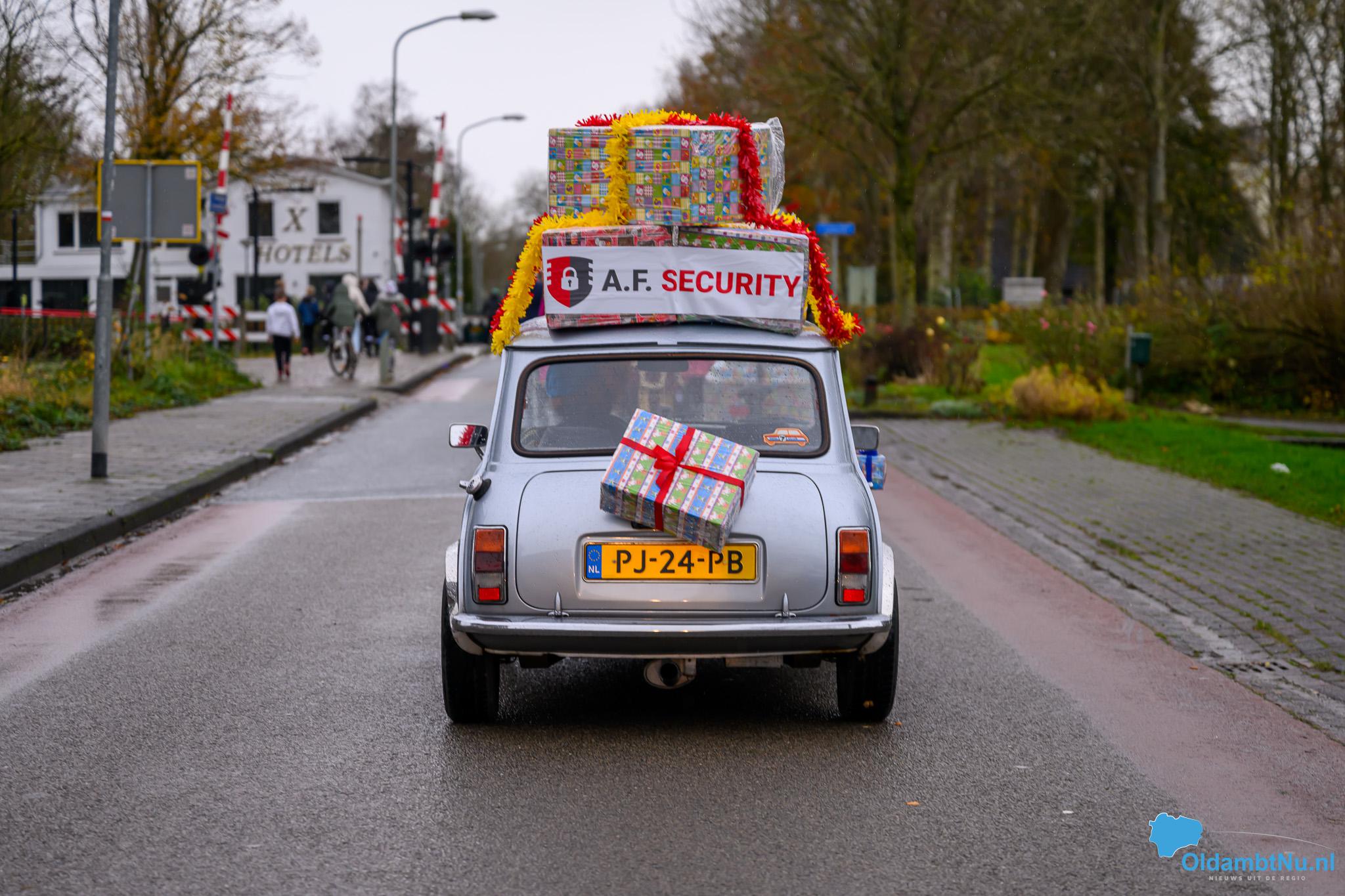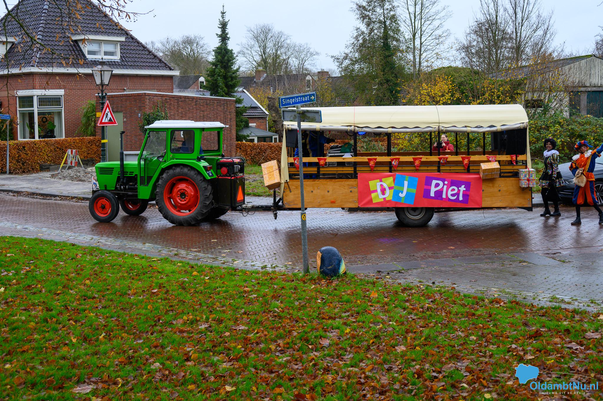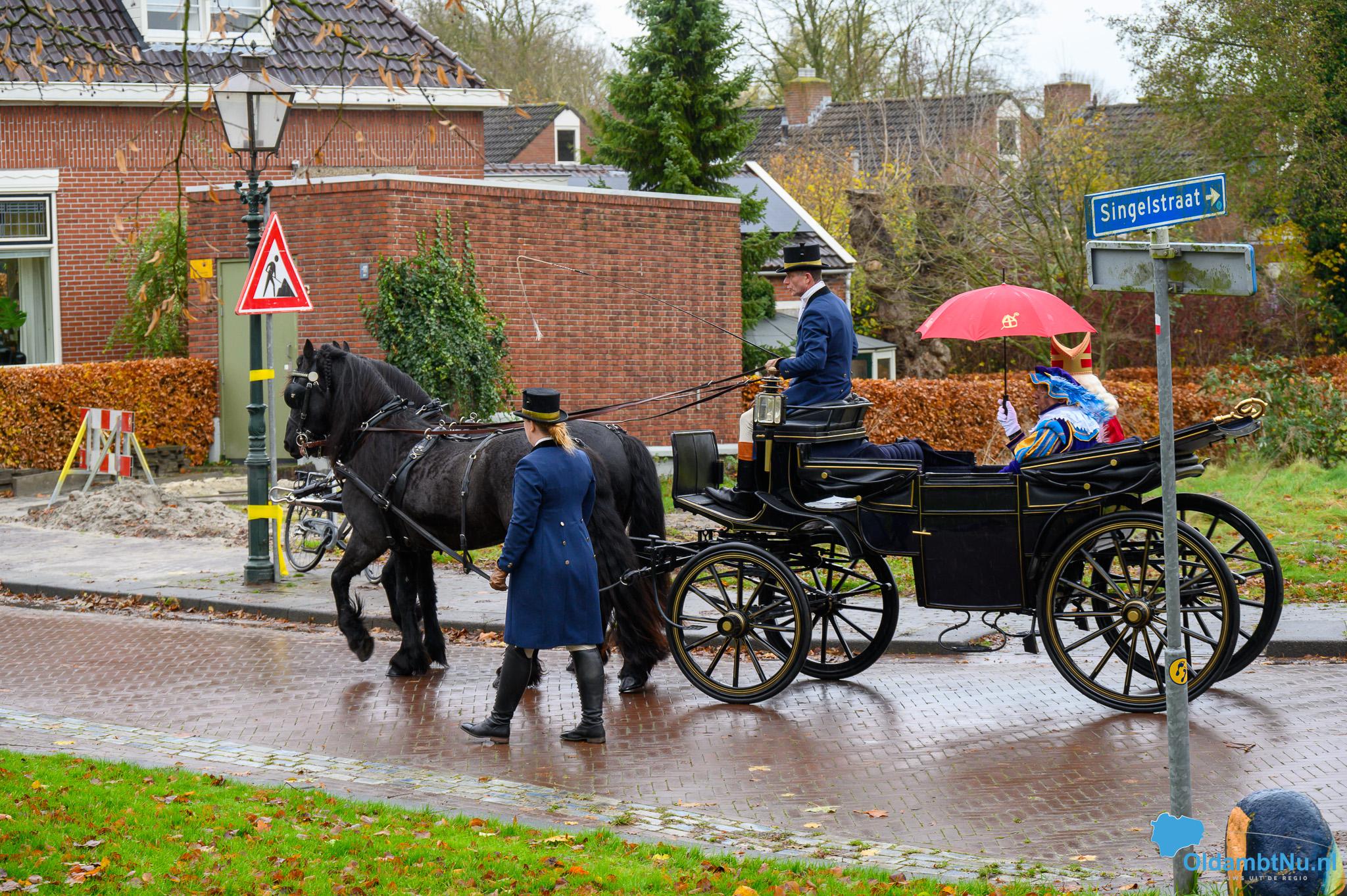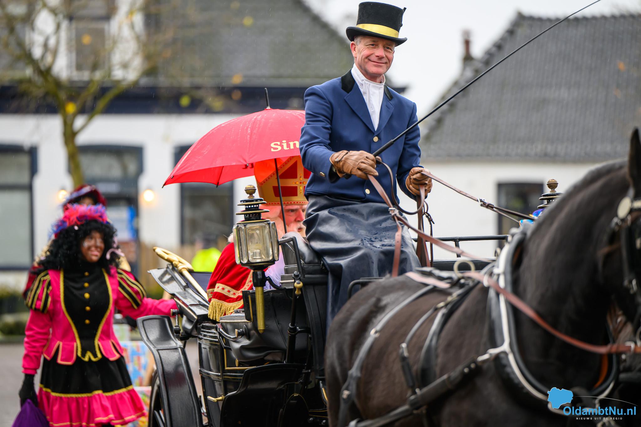 Een grote pakjeswagen, de Sint en zijn hoofdpiet in een open koets met twee Friese paarden ervoor, zijn zondagmiddag door de straten van het oude vestingdorp gereden, om vervolgens in de muziekkoepel de kinderen van Bad Nieuweschans te laten weten dat ook dit jaar de Sint er weer voor hen is.