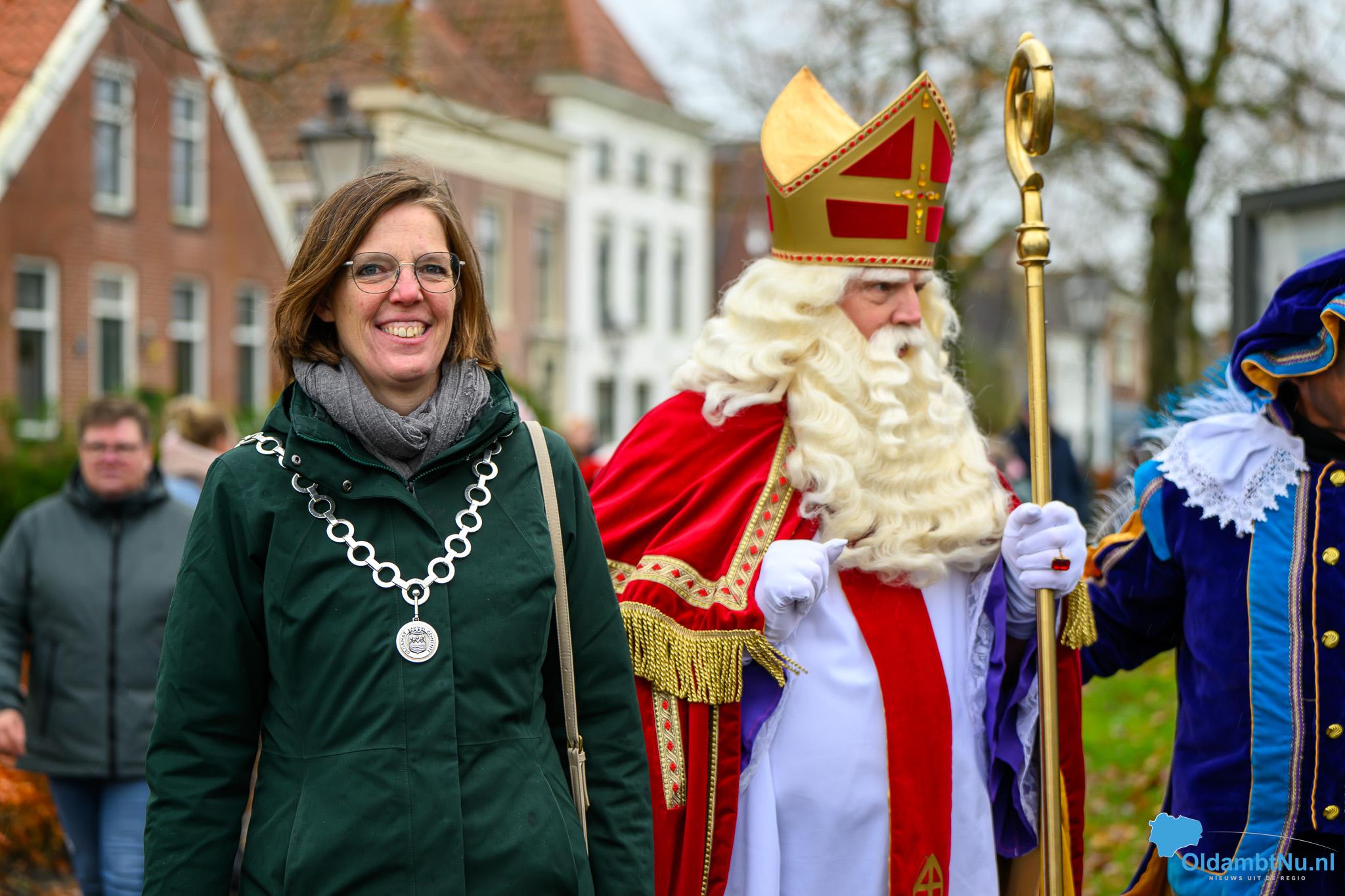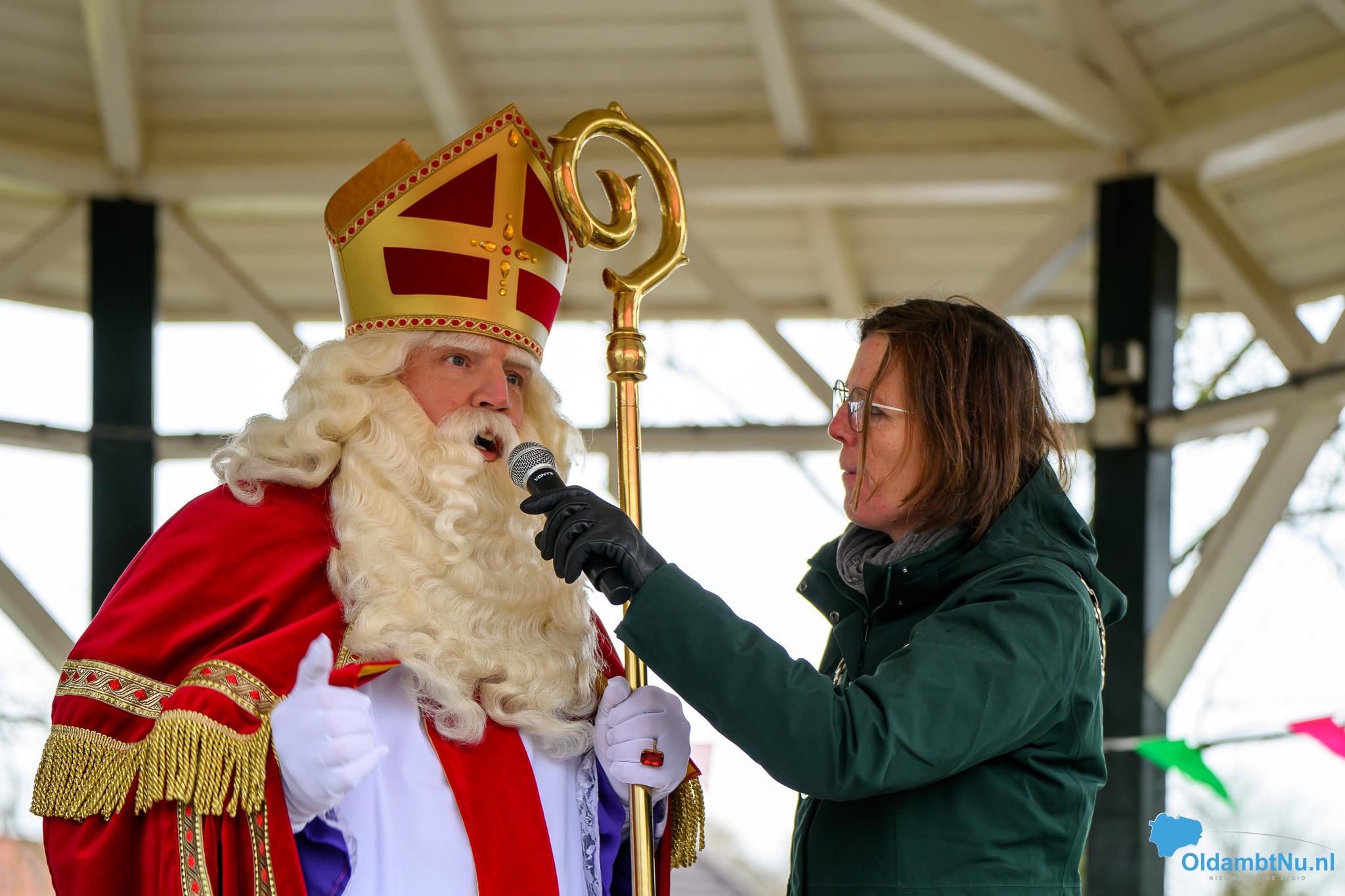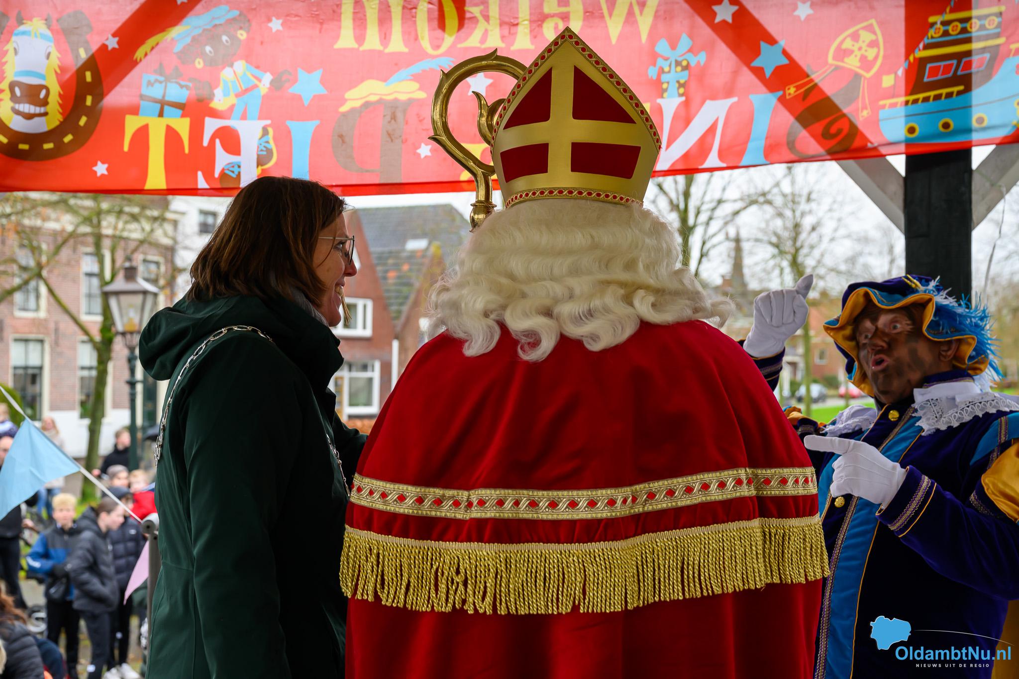 Bad Nieuweschans – Vorig jaar lukte het de Sinterklaas en z’n Pieten niet om Bad Nieuweschans aan te doen. Maar dit jaar werd het in een keer goed gemaakt. Met een groot gevolg en ook de burgemeester Cora-Yfke Sikkema die het publiek opzweepte om mee te zingen, waren ze met z’n allen duidelijk aanwezig bij de muziekkoepel om de goedheiligman in te halen.