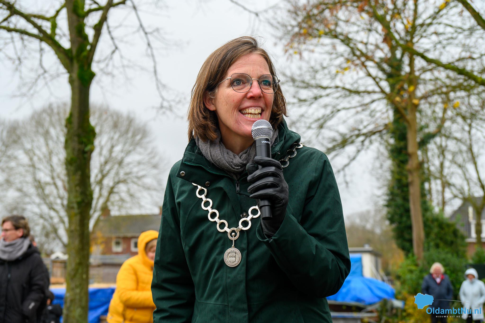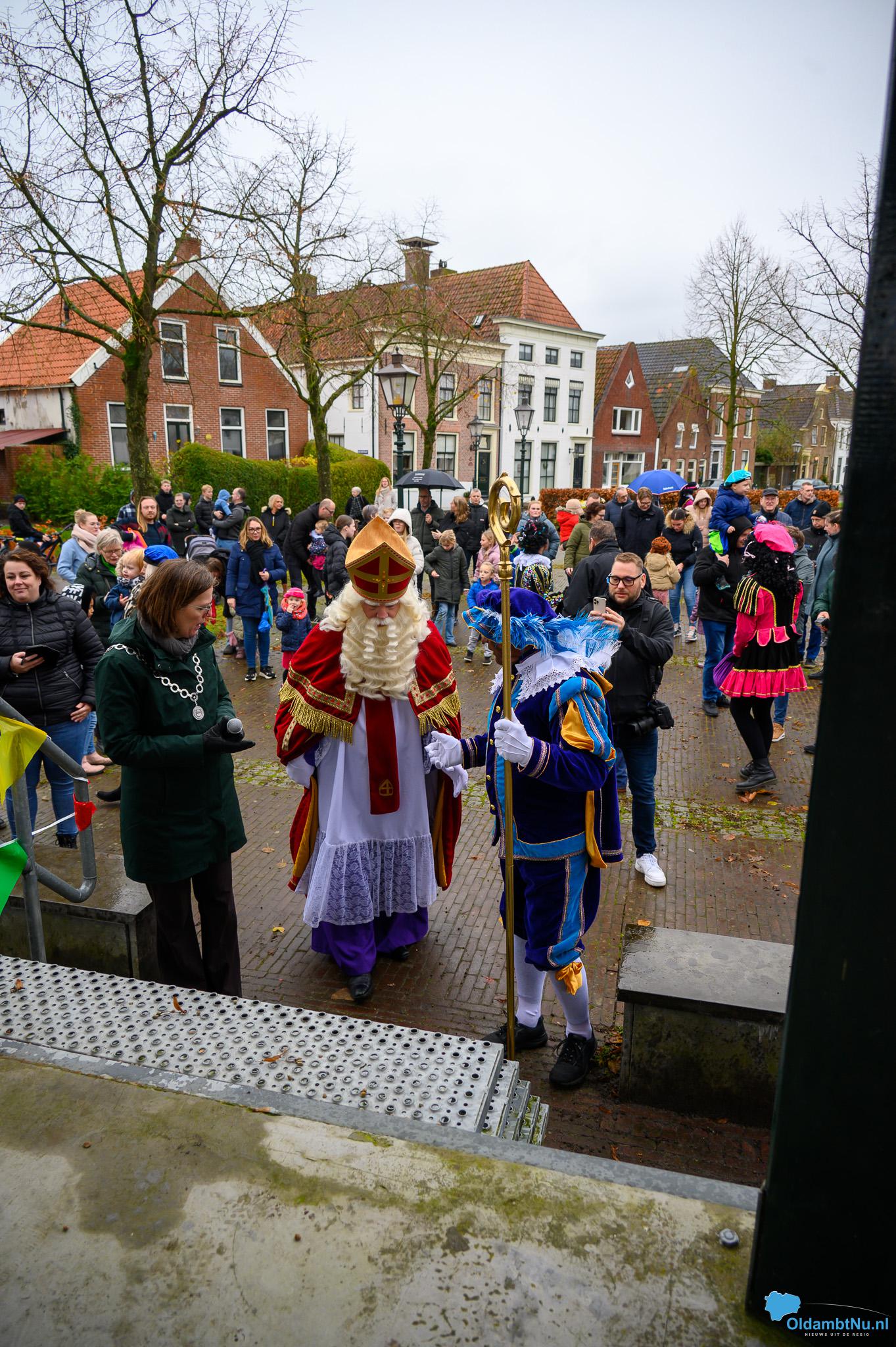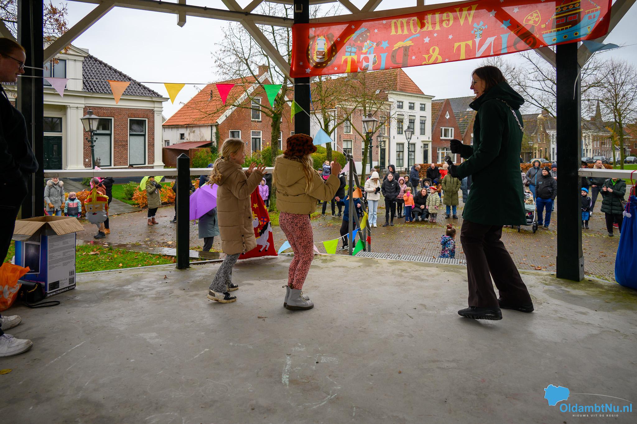 Bad Nieuweschans – Vorig jaar lukte het de Sinterklaas en z’n Pieten niet om Bad Nieuweschans aan te doen. Maar dit jaar werd het in een keer goed gemaakt. Met een groot gevolg en ook de burgemeester Cora-Yfke Sikkema die het publiek opzweepte om mee te zingen, waren ze met z’n allen duidelijk aanwezig bij de muziekkoepel om de goedheiligman in te halen.