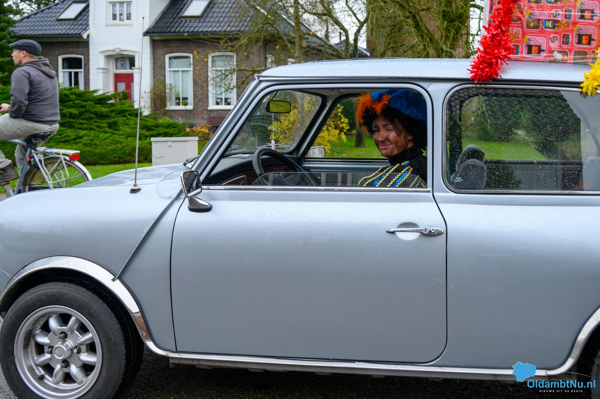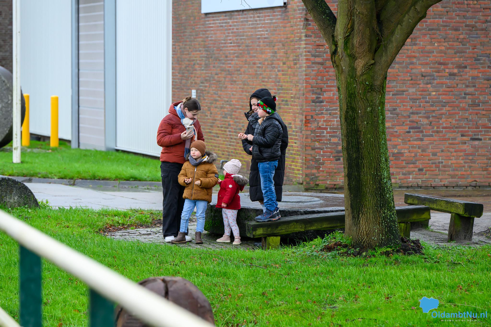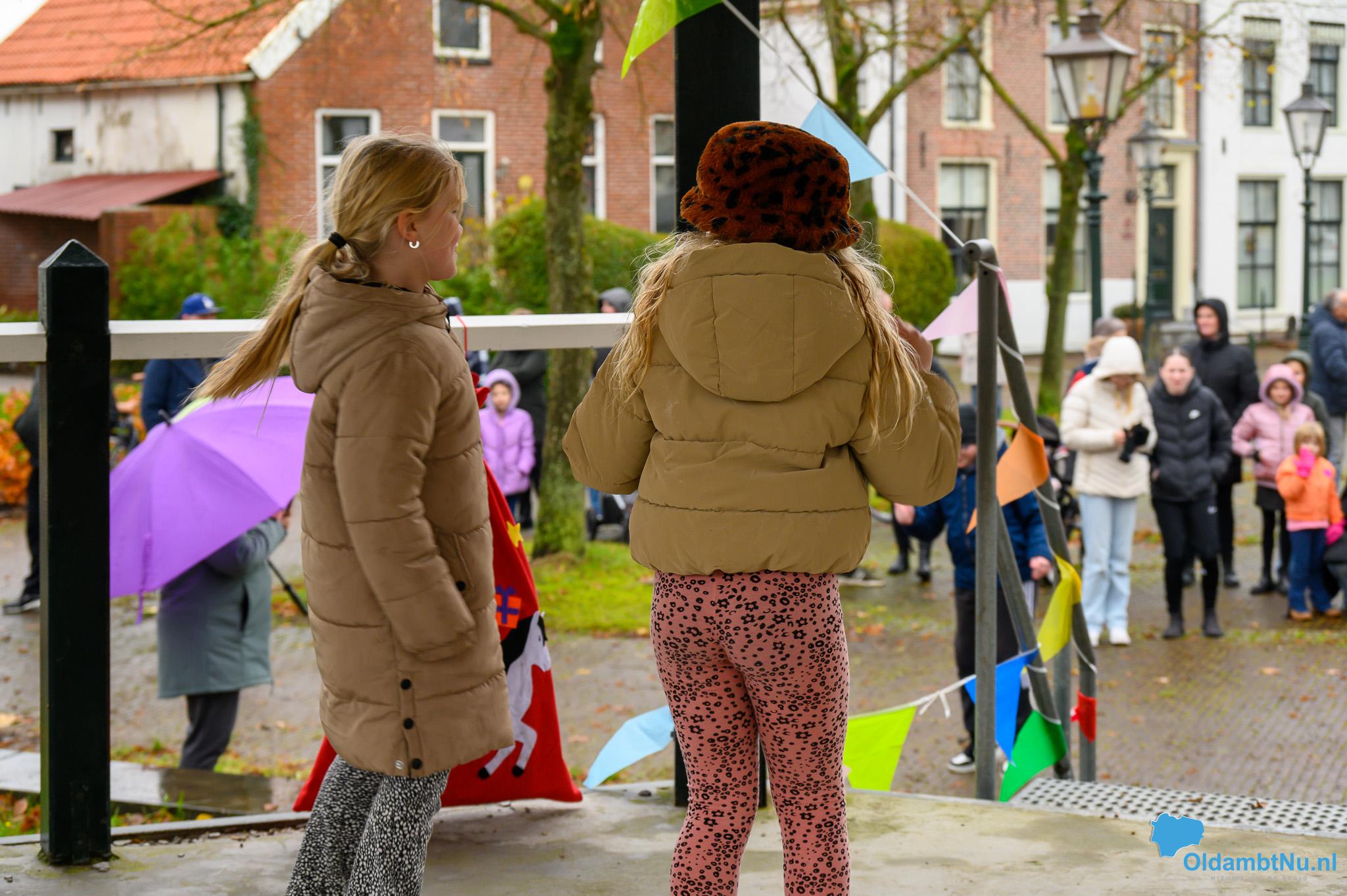 Bij de muziekkoepel waren behoorlijk veel Schansker kinderen aanwezig, maar door het regenachtige weer, bleven veel kinderen in de straten achter de ramen zitten, om de Sint en zijn gevolg daar te aanschouwen.