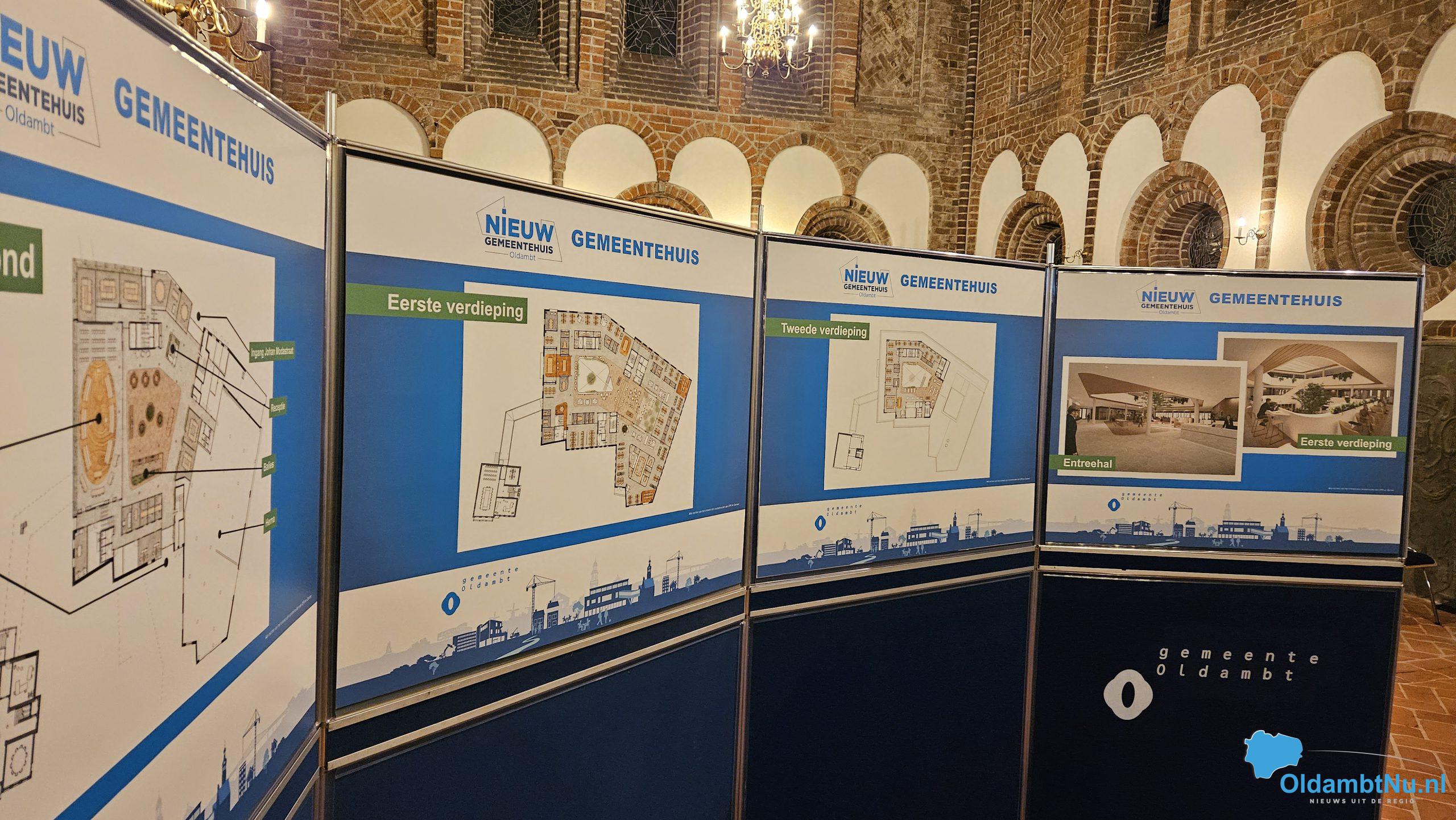 In de kerk stonden een aantal panelen opgesteld waarop de diverse schetsen/ tekeningen van het nieuwe gemeentehuis en de inrichting van de directe omgeving te zien zijn. Tevens was op een scherm een 3D-animatie te zien van het ontwerp van zowel de directe omgeving van het gemeentehuis (en de HEMA) als de binnenzijde.