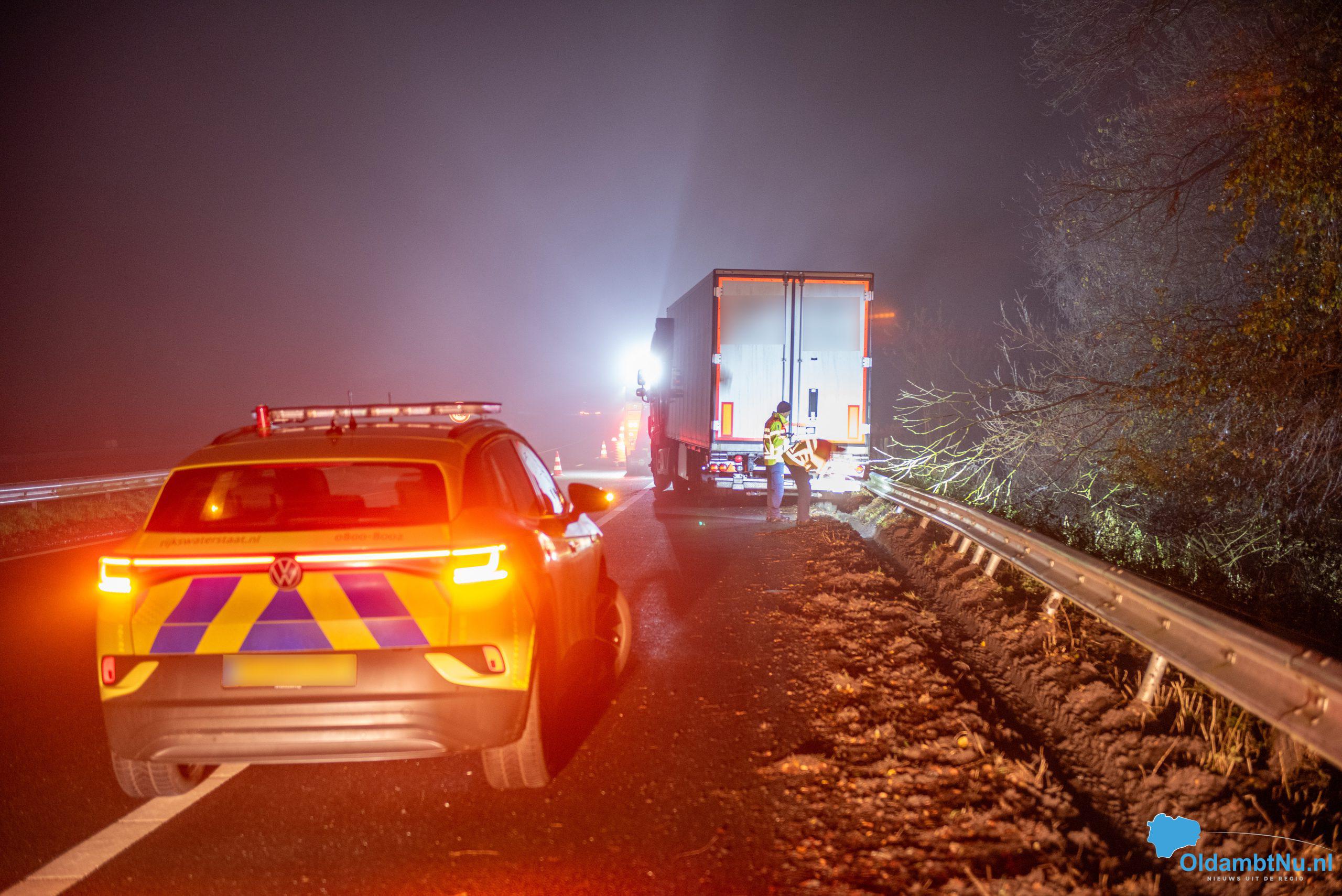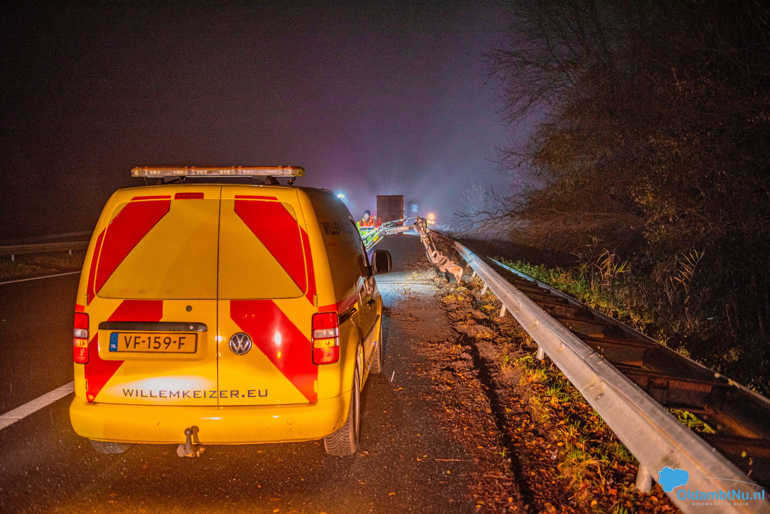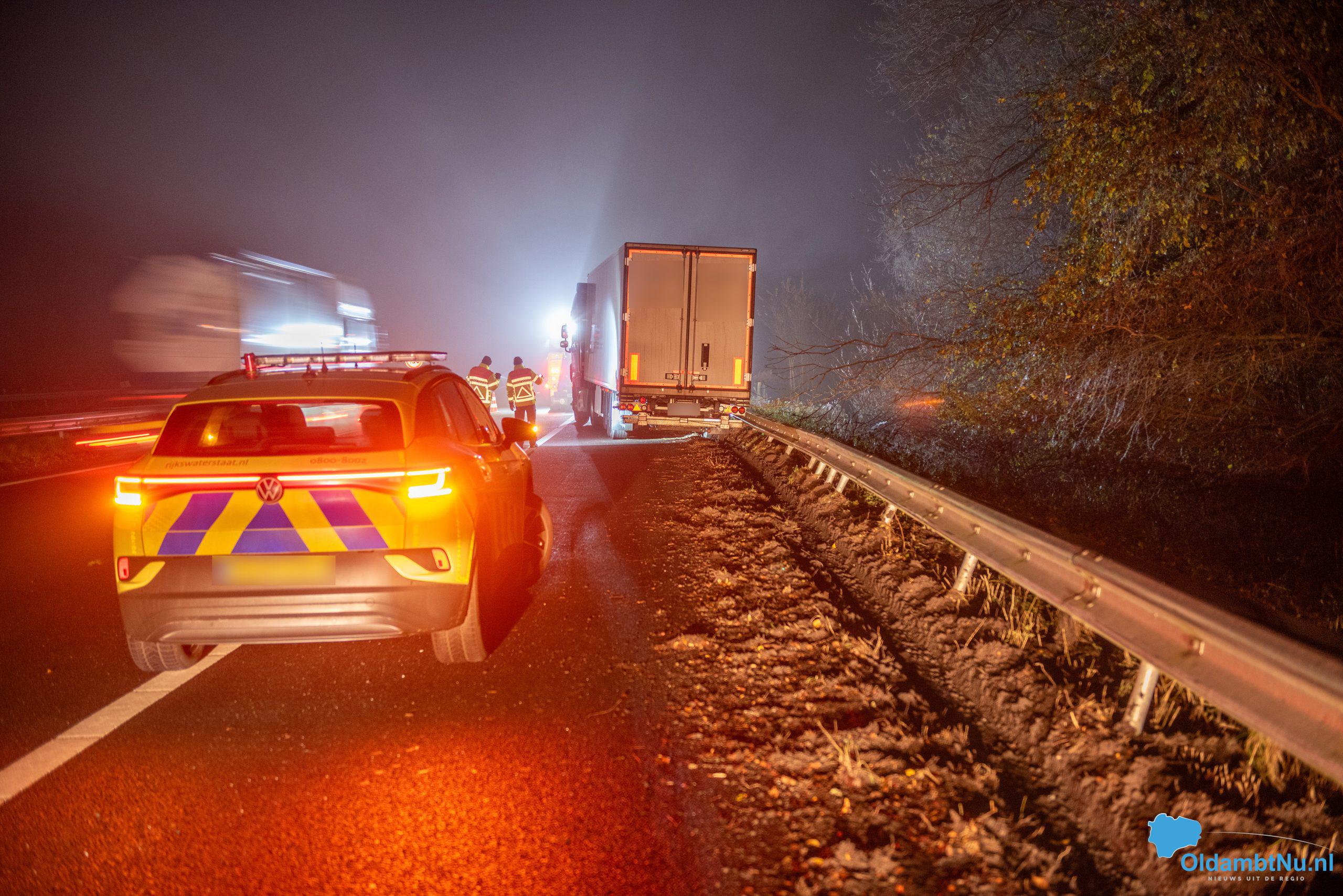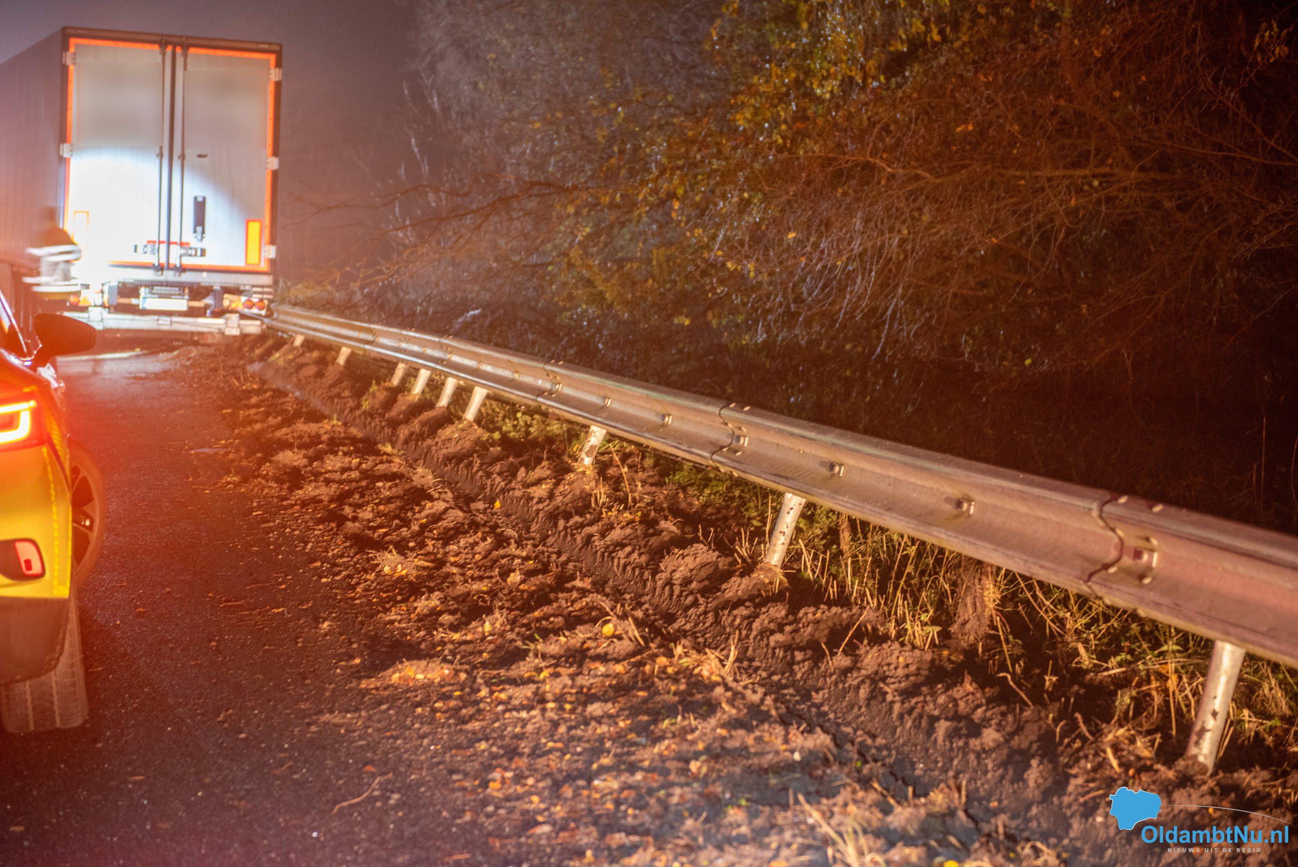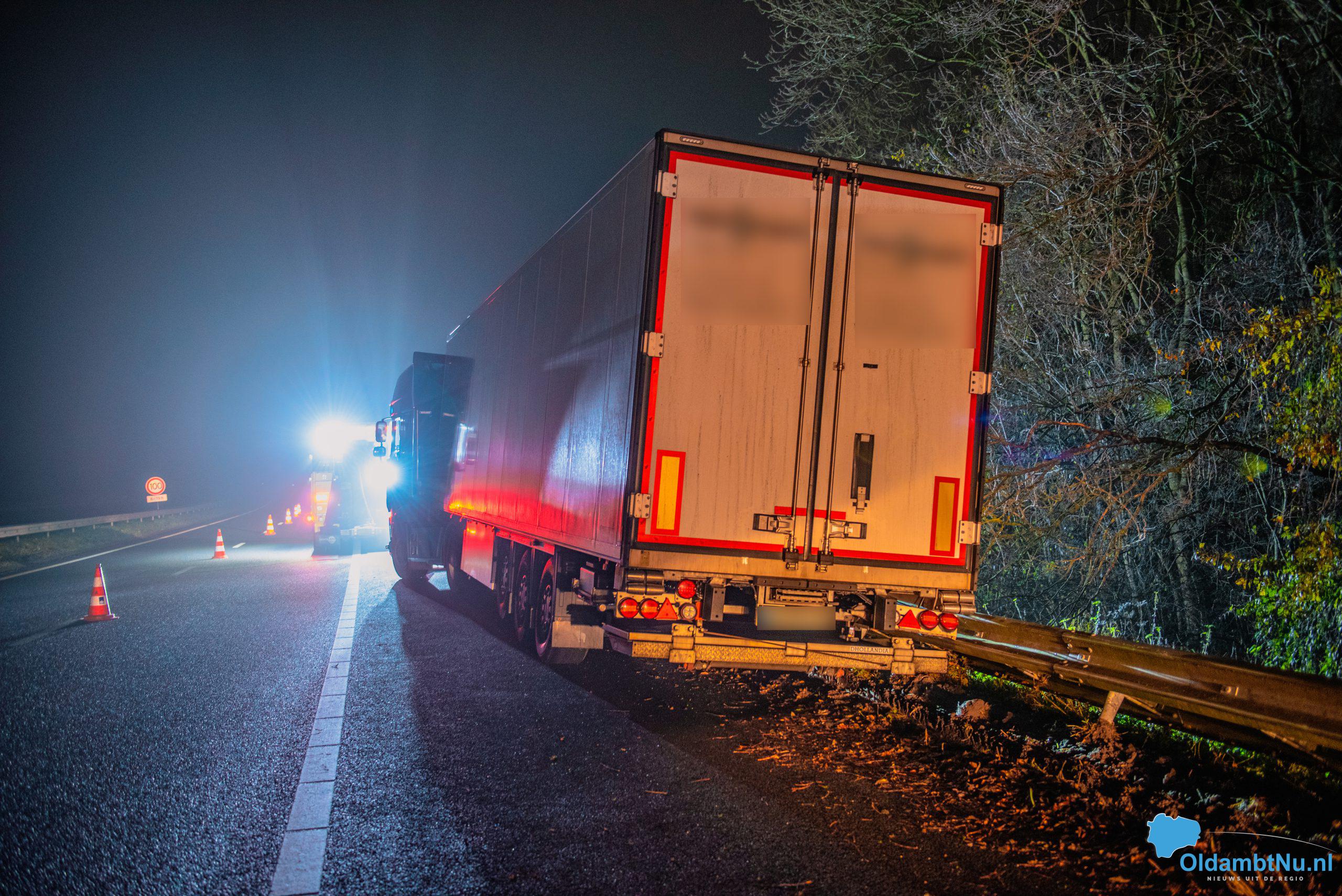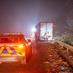 Vrachtwagenchauffeur raakt onwel en eindigt met vrachtwagen in vangrail