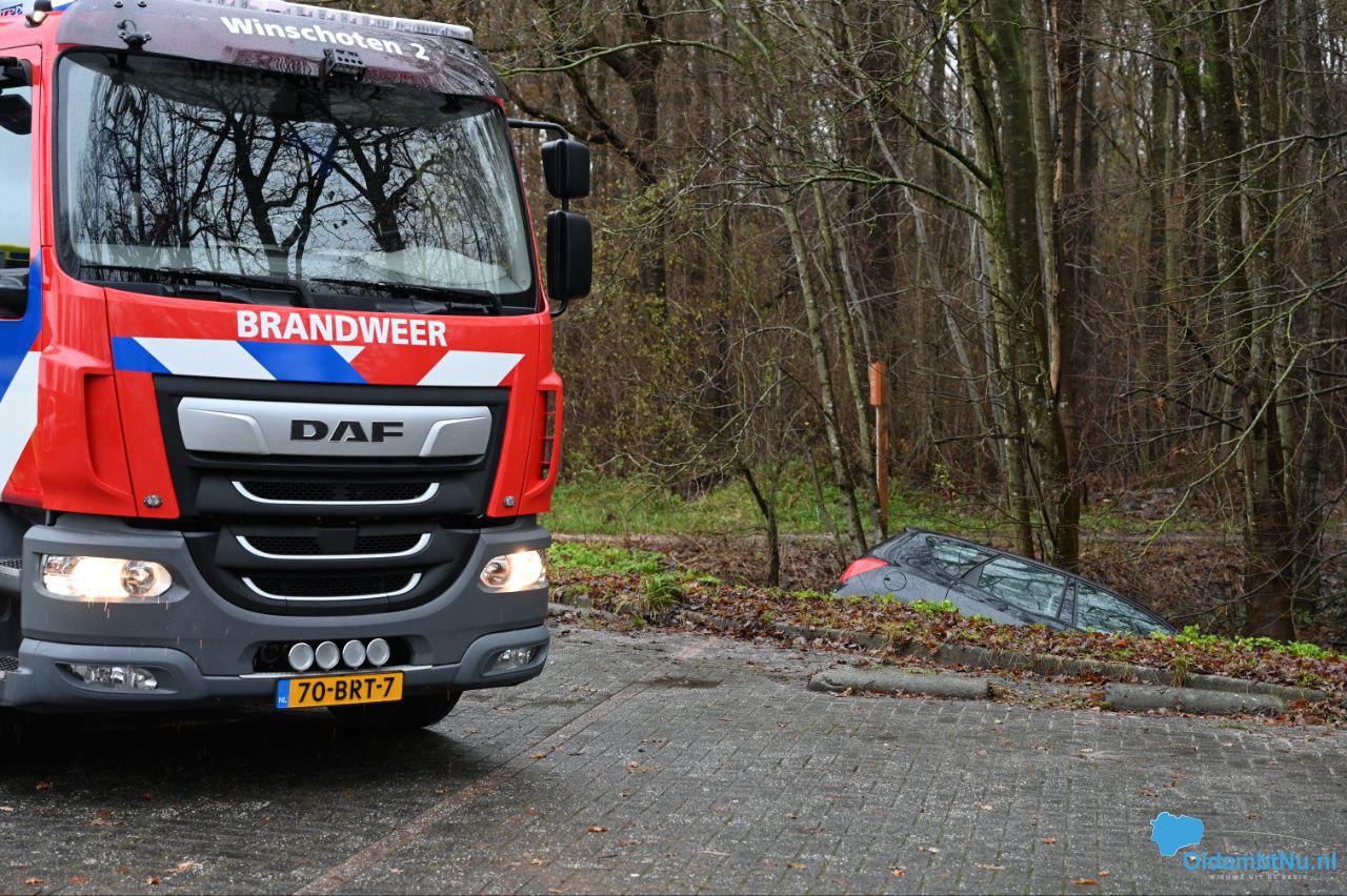 Bergingsbedrijf Fruitema kwam ter plaatse om de auto uit de sloot te halen.