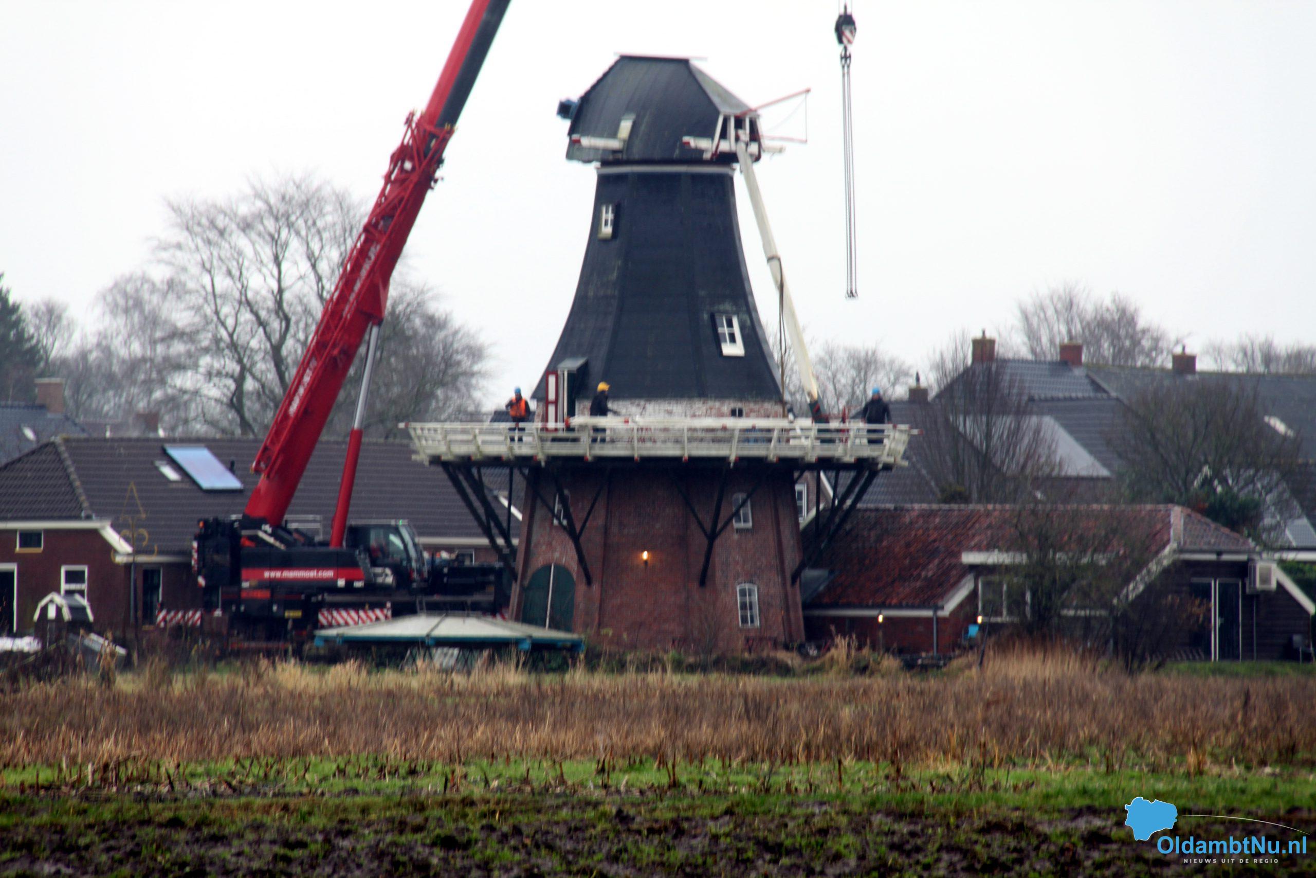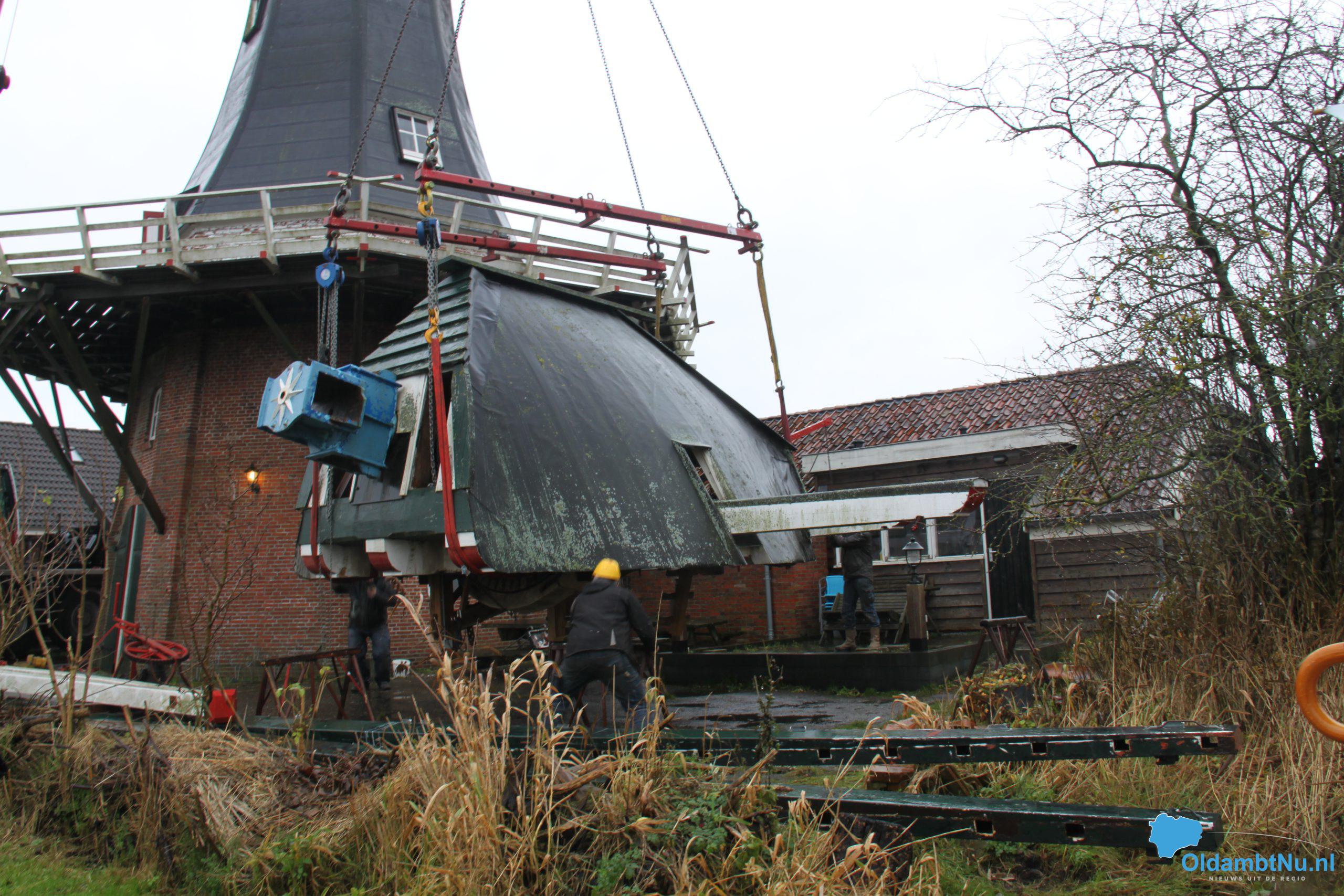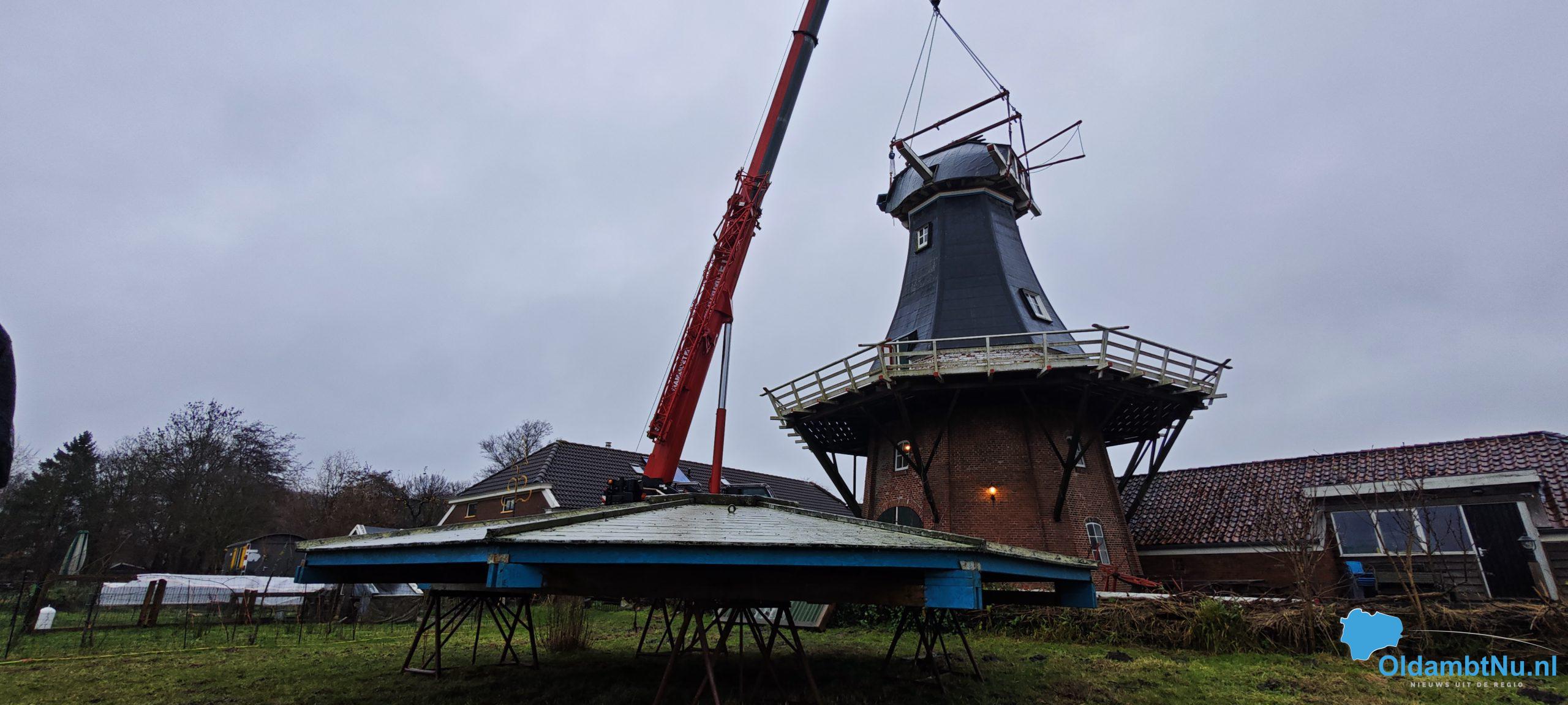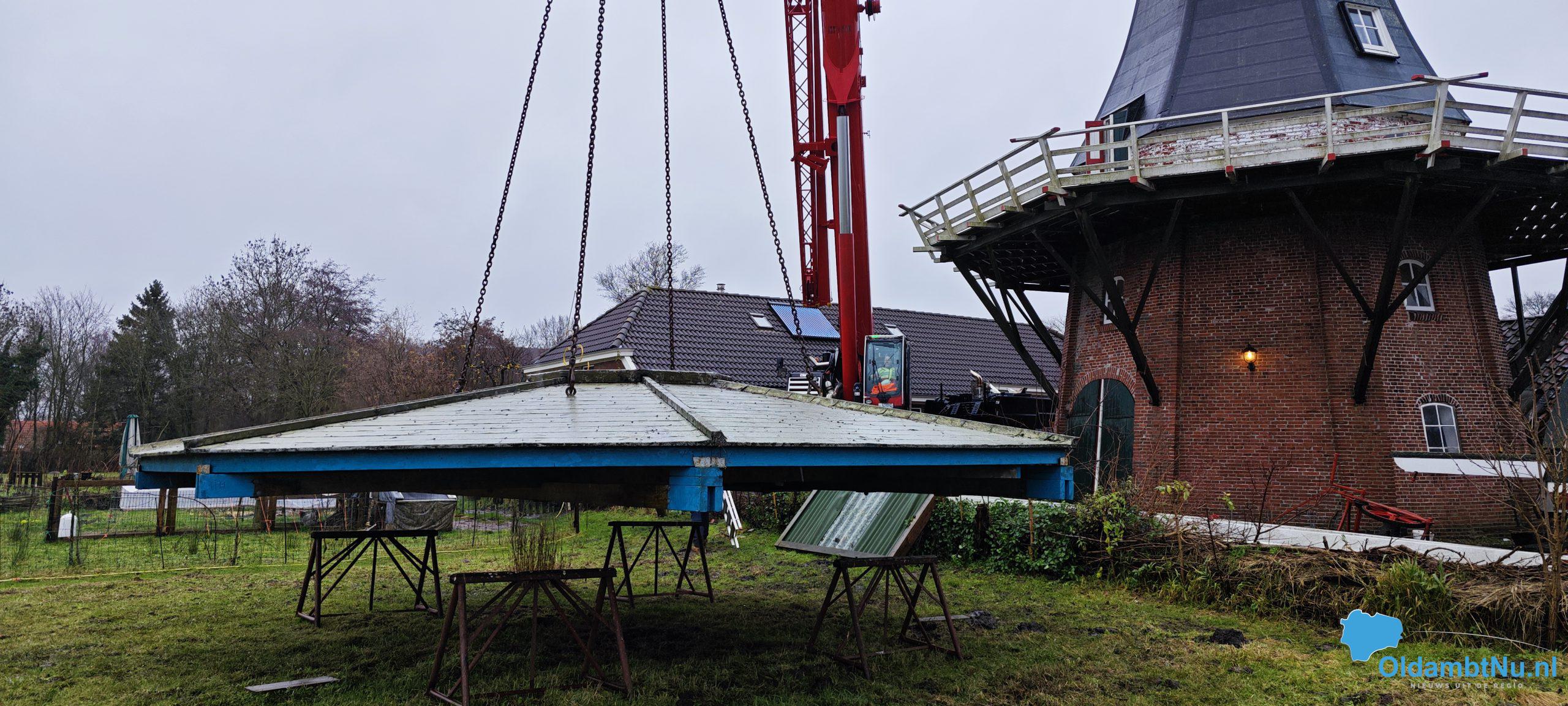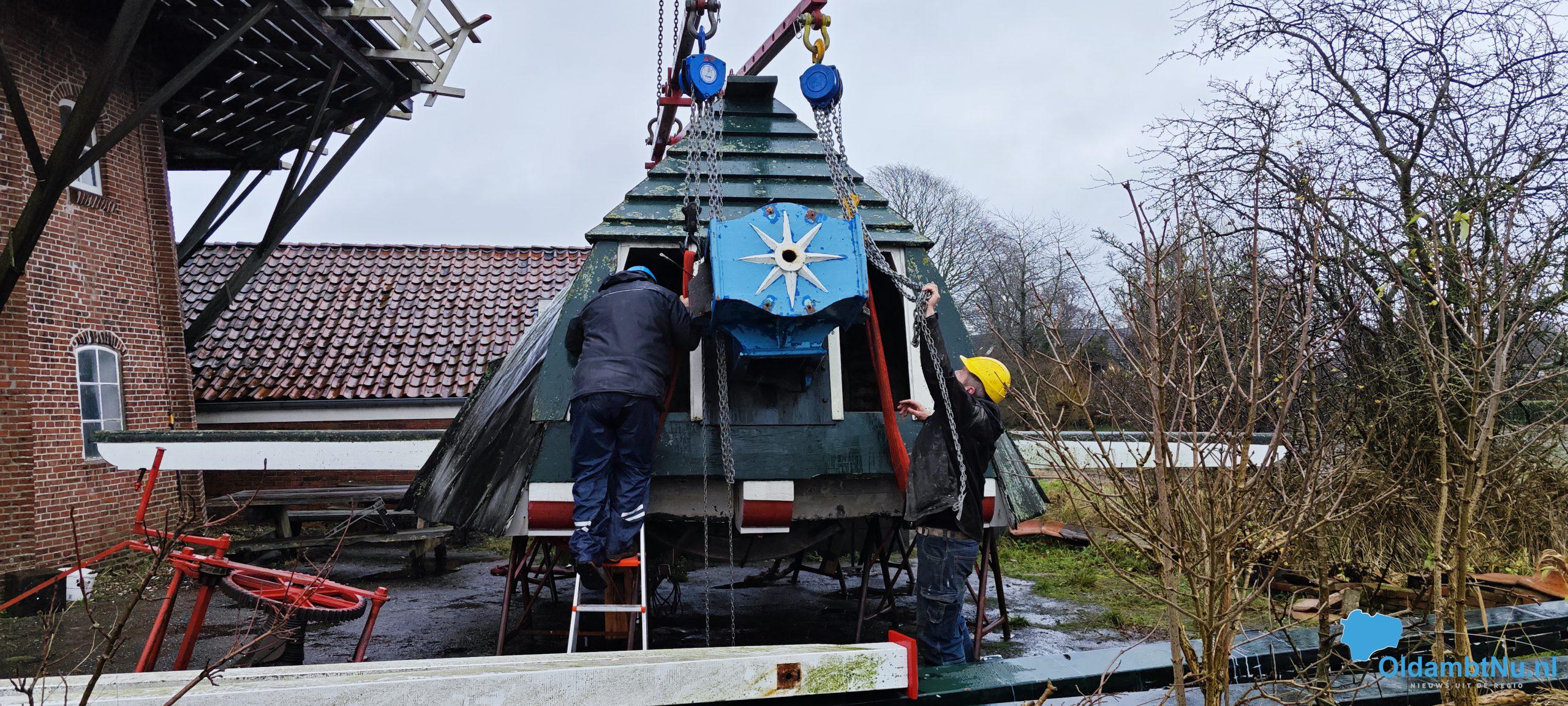 Noordbroek – Vorige week dinsdag is de kap van molen De Noordstar in Noordbroek van de Molenstichting Midden- en Oost-Groningen (MsMOG) gelicht. Dit gebeurde in de ochtend met een grote kraan.