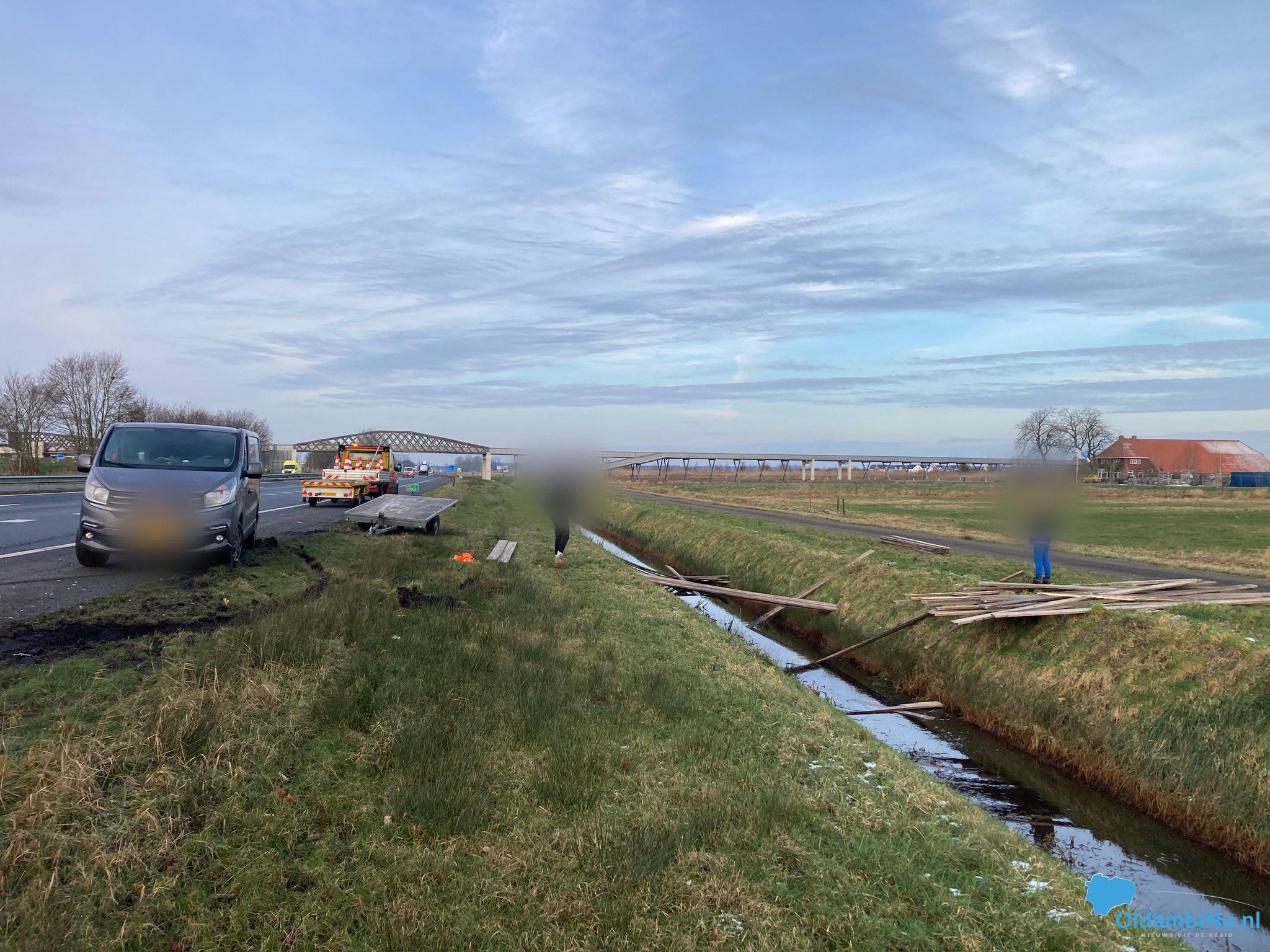 Winschoten – Woensdagochtend heeft er rond 09:30 uur een eenzijdig ongeval plaatsgevonden op de A7 ter hoogte van Winschoten. Een auto met aanhanger is daar geschaard, waarbij de as van de aanhanger en een deel van de lading in de naastgelegen sloot terecht zijn gekomen. Gelukkig kwam de bestuurder met de schrik vrij, zo meldt Rijkswaterstaat op X (voormalige Twitter).