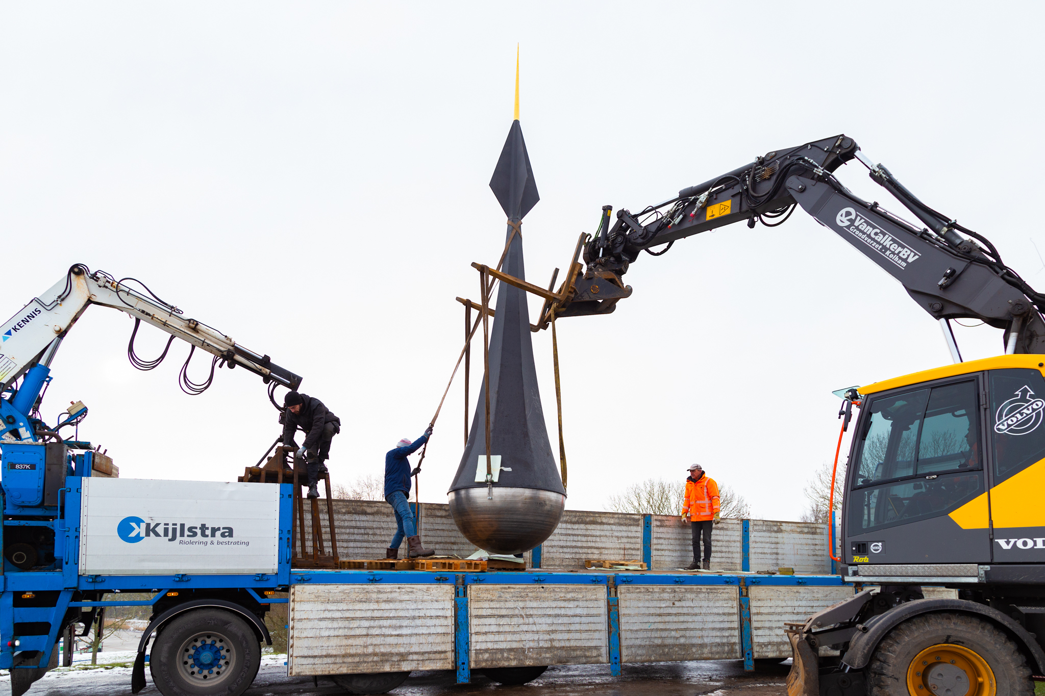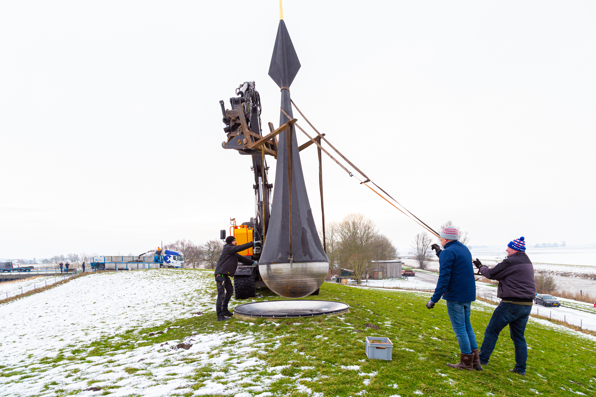 Nieuwe Statenzijl – De Waaiboei is teruggekeerd naar zijn vertrouwde plek in Nieuwe Statenzijl na een verdwijning rondom de kerstperiode. Het markante kunstwerk, dat normaal gesproken de dijk siert, was op 1 januari plotseling opgedoken in de Friese stad Drachten.