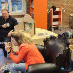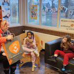 Als eerste kwamen de jongste kinderen naar de schoolbieb, waar Nanon van de Winschoter bibliotheek, de kinderen op inspirerende wijze voorlas uit het prentenboek van het Jaar ‘Help! Een verrassing! Van Mirjam Bos. De kinderen luisterden aandachtig naar het verhaal; Help! Suusje Eekhoorn heeft een verrassing voor August de Vos. Maar August houdt helemaal niet van verrassingen…. Wat zou Suus van plan zijn? Komt dat wel goed?