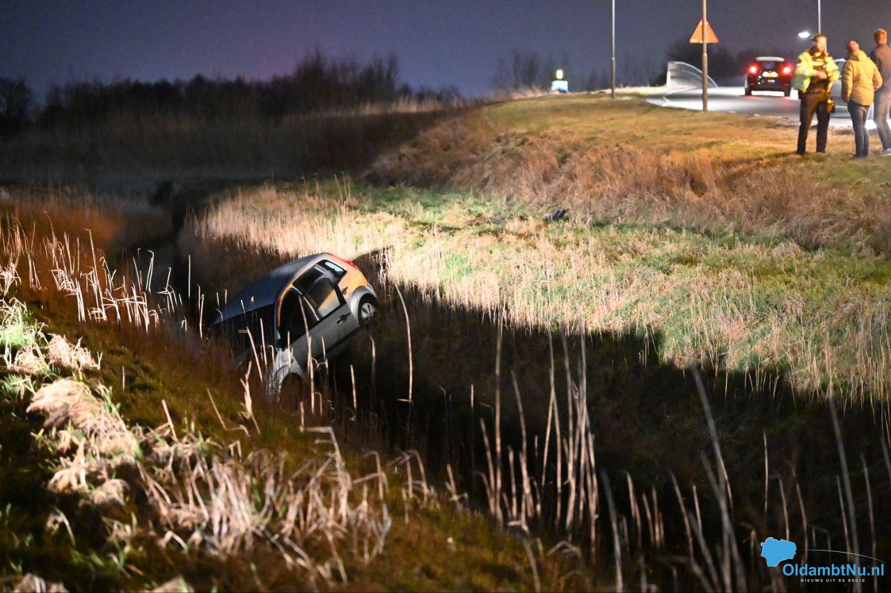 Door onbekende oorzaak is de bestuurder met zijn auto van de weggeraakt en in de naast gelegen sloot beland. De bestuurde kwam met de schrik vrij.