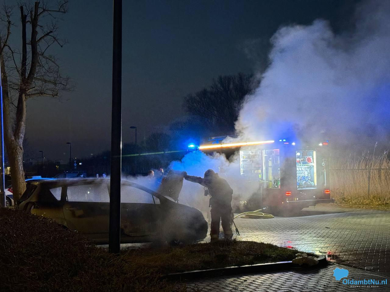 Brandweer blust autobrand bij station Winschoten