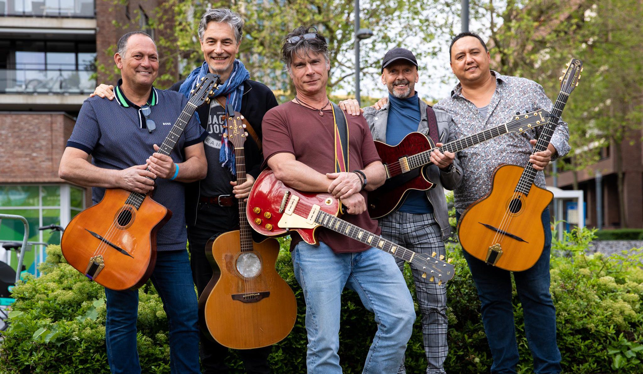 Winschoten – Sinds 1999 touren oprichter en artistiek leider Jan Kuiper en gitaarbassist Digmon Roovers door heel Nederland met hun super gitaargroep Five Great Guitars. Een opwindende reis door de wereld van de moderne gitaar met improvisatie als verbindende factor. Een unieke mix van blues, rock, funk, gypsy, pop, jazz en world muziek. Met swingende grooves en ritmes uit alle werelddelen. Dat gaan ze vieren met een prachtig nieuw jubileumprogramma: GUITAR HEROES.
