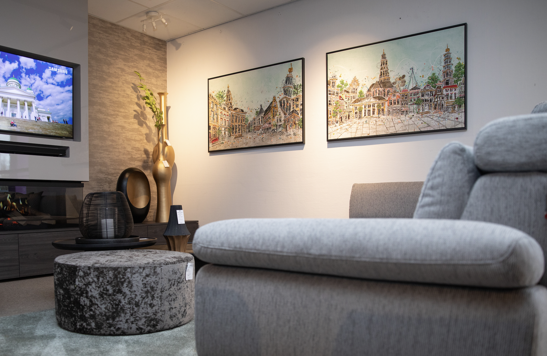 De samenwerking tussen Noël Hariri en Bosma Wonen is een perfecte match. Bosma Wonen, een vooraanstaande meubelzaak in Winschoten, heeft een sterke reputatie opgebouwd door het aanbieden van betaalbare exclusievere kwaliteitsmeubels en interieuraccessoires. De toevoeging van de kunstwerken voegen een vleugje artistieke pracht toe aan de al prachtige showroom.