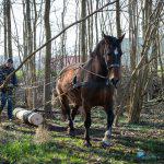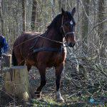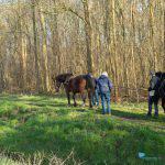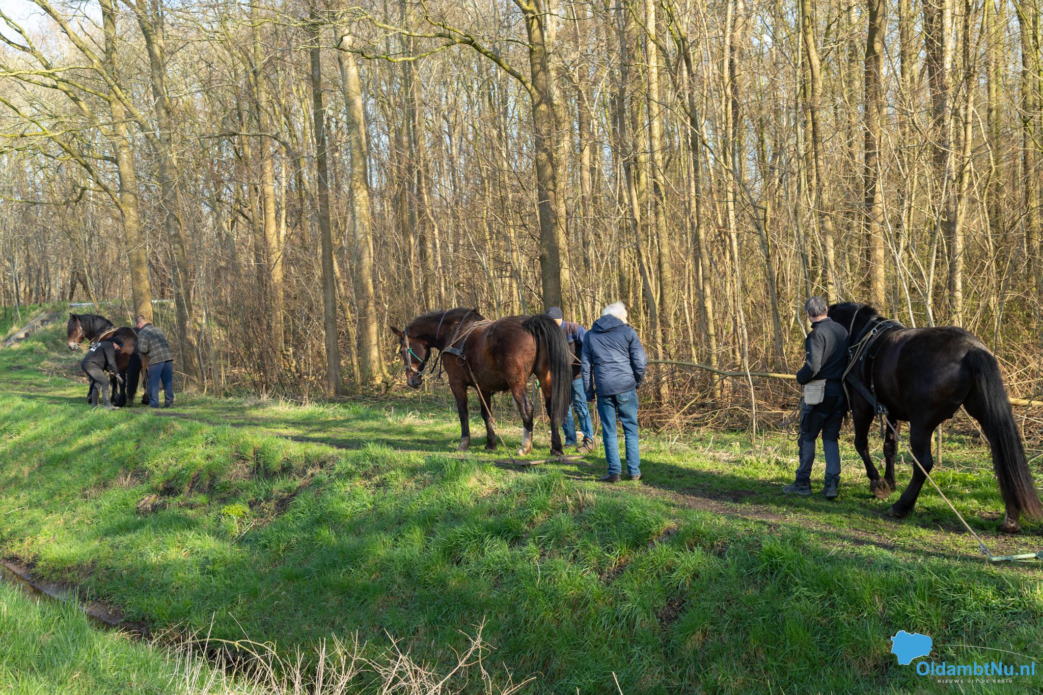 Dit was voor nu de laatste keer dat er bomen uit het bos gesleept werden, vanaf volgende week gaan de trekpaarden op verschillende locaties ploegen en eggen.