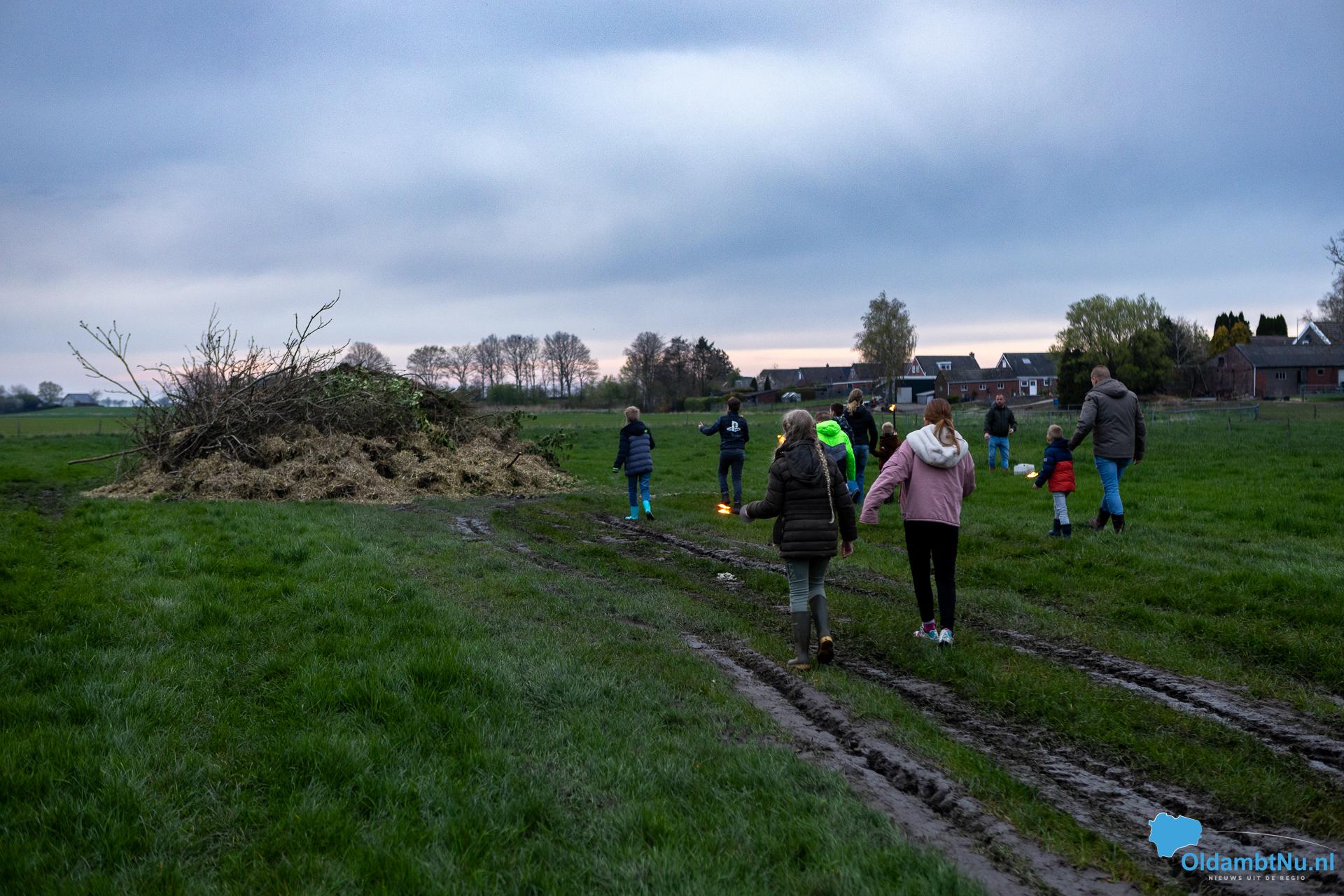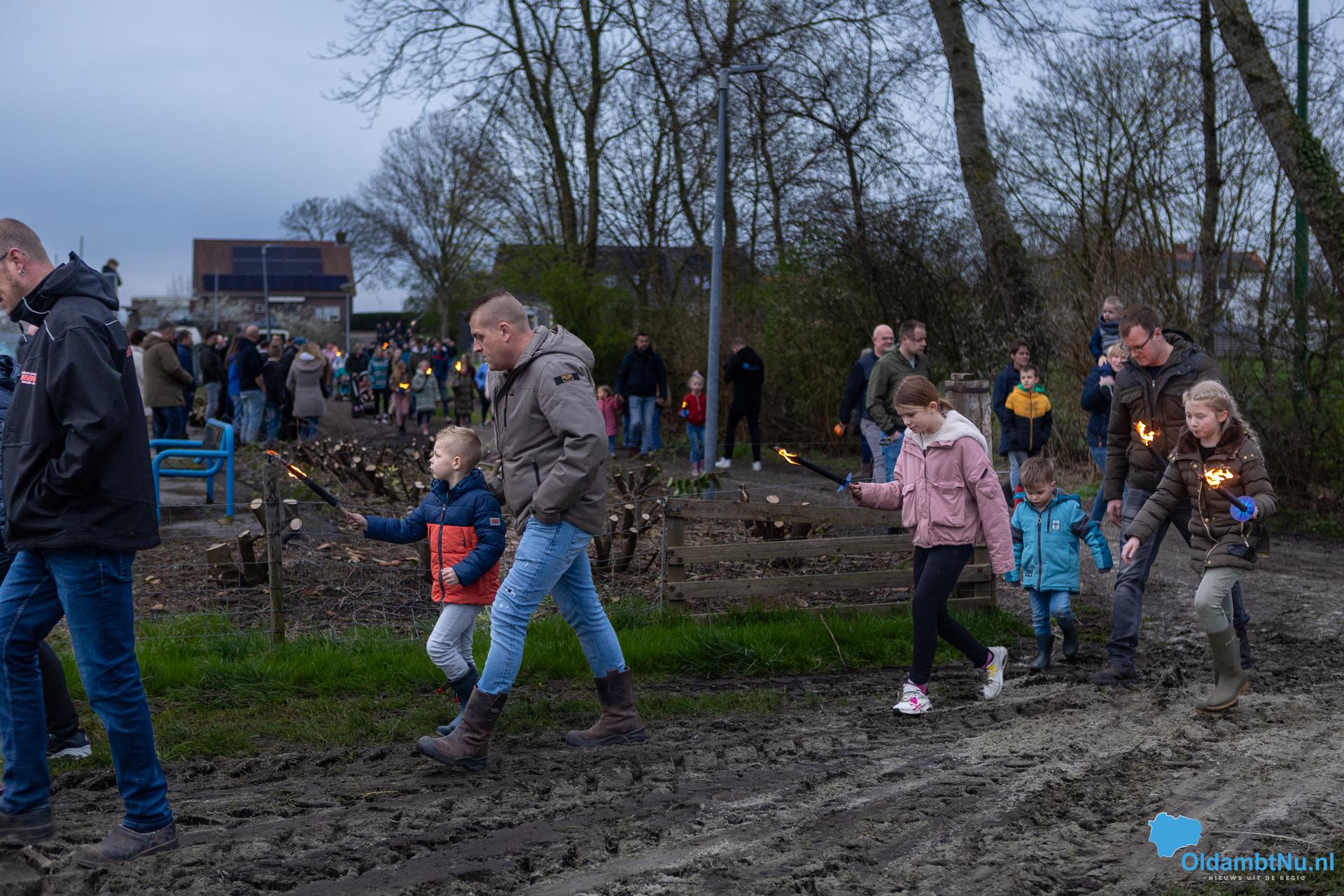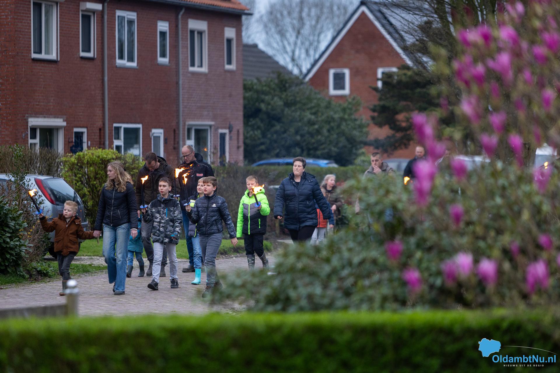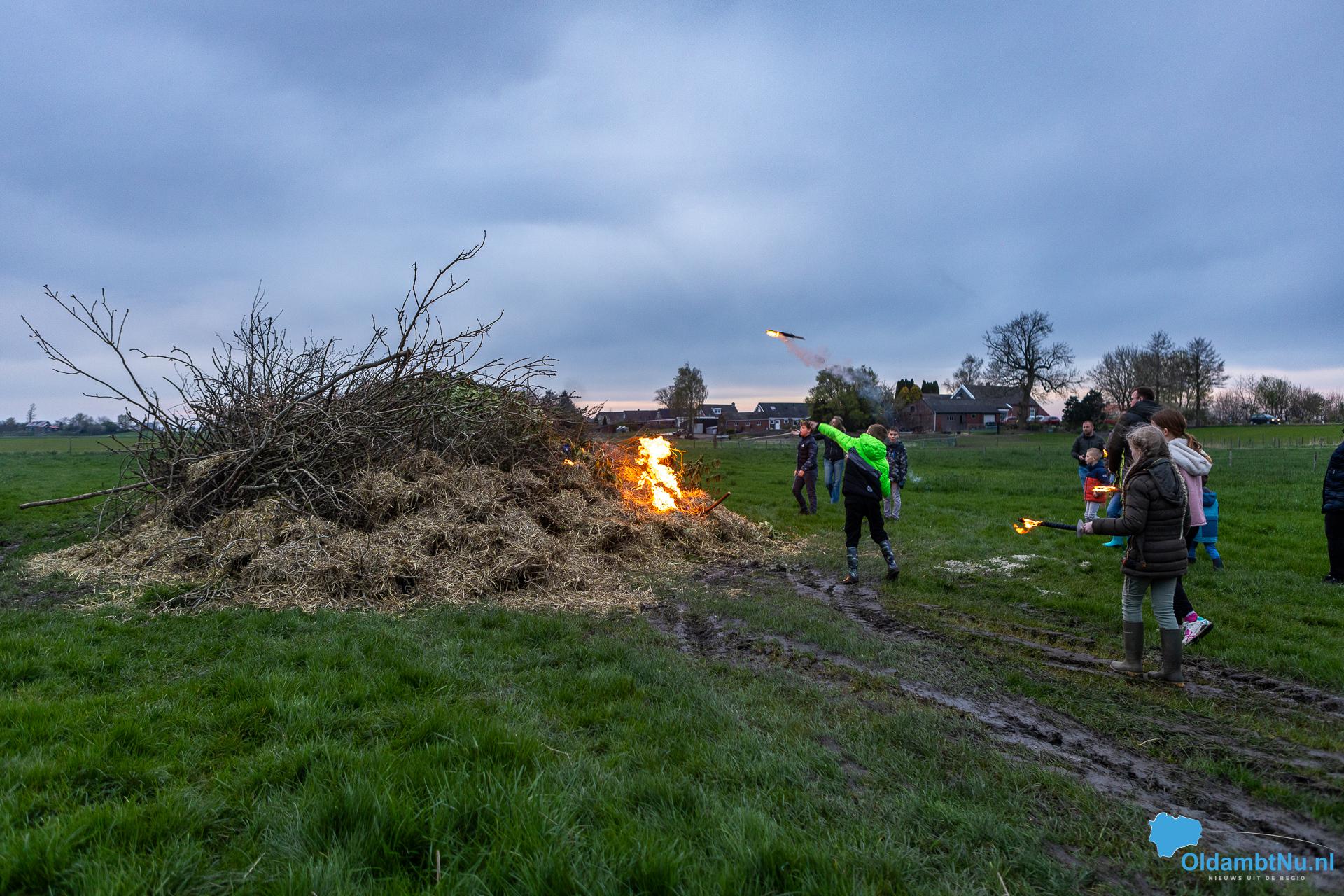 Drieborg – De traditie van een paasvuur was dit jaar in één dorp in het Oldambt, dat was in Drieborg. Bij het invallen van de schemering trok een stoet van kinderen vanaf het schoolplein door Drieborg met brandende fakkels. Het eindpunt was een paasbult op het ijsbaanterrein.