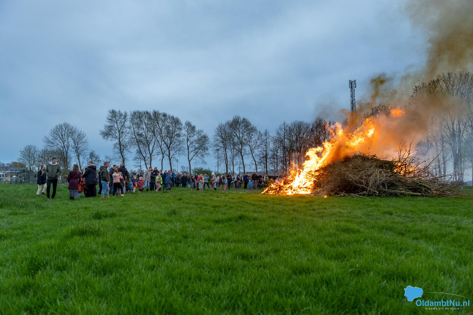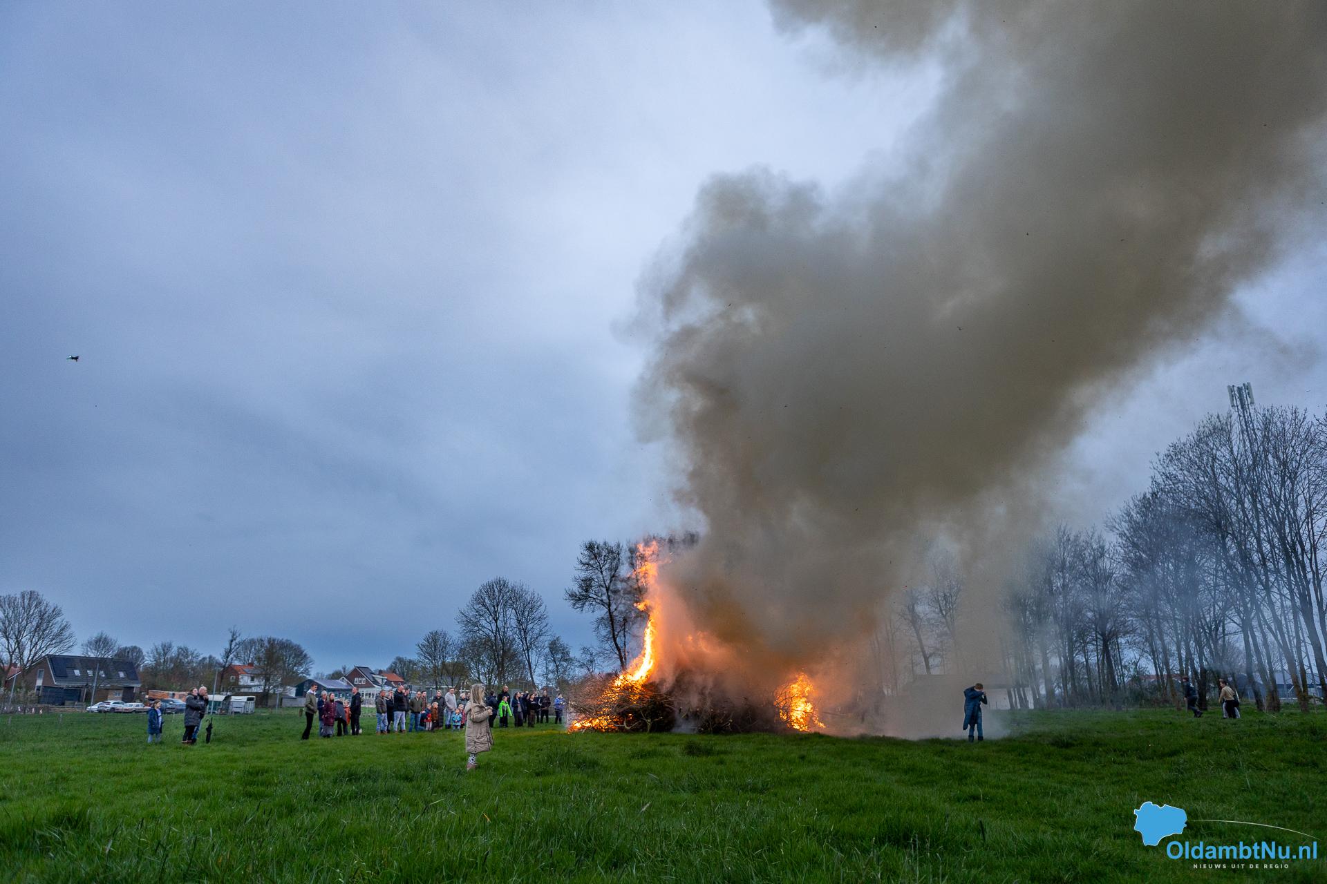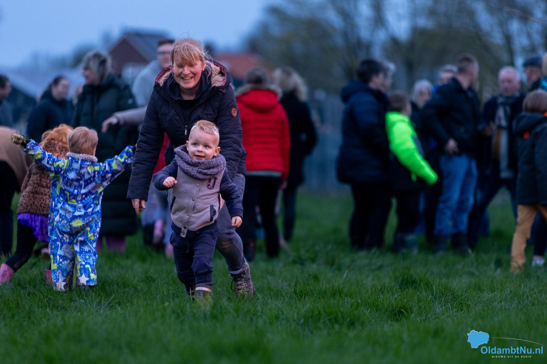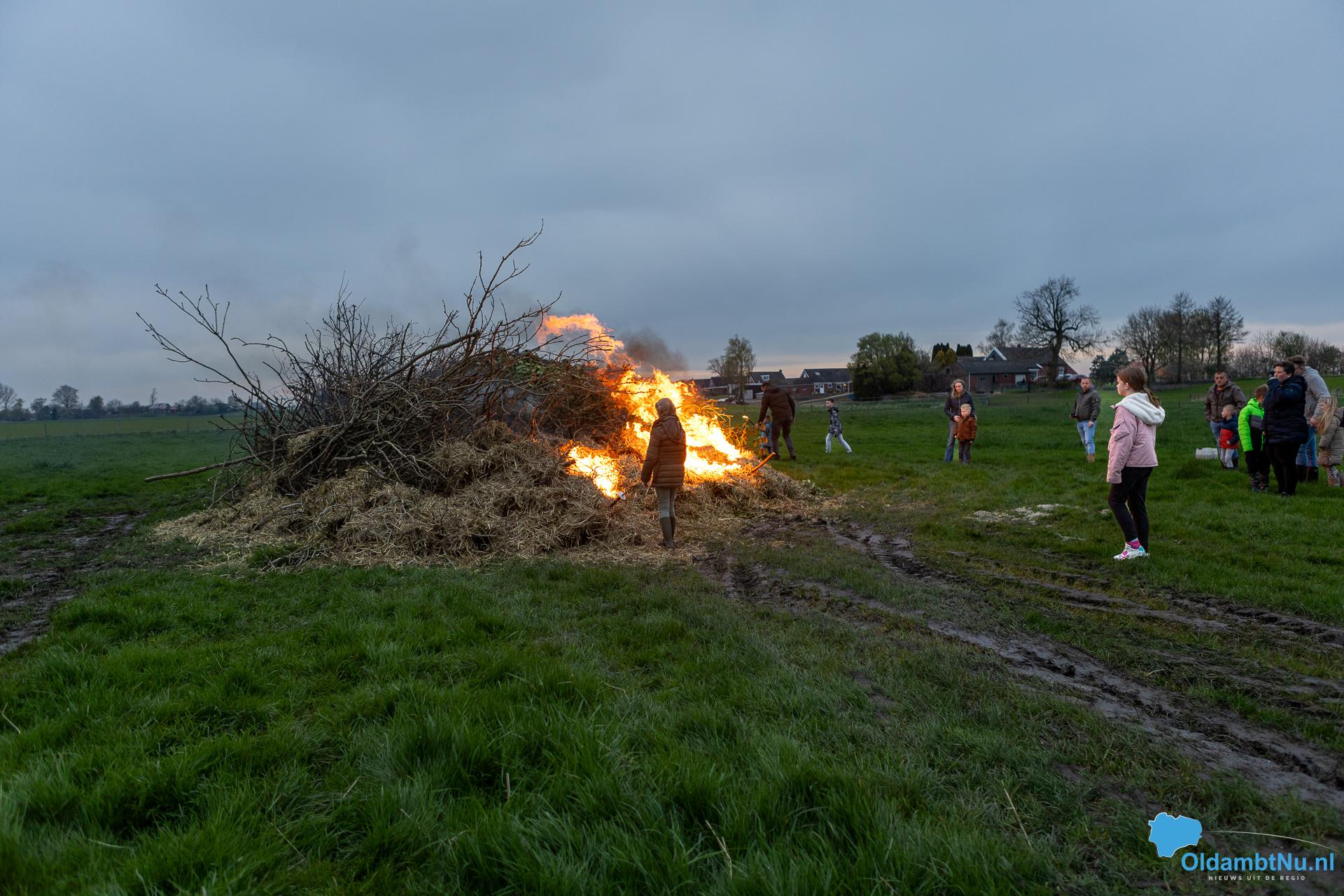 Drieborg – De traditie van een paasvuur was dit jaar in één dorp in het Oldambt, dat was in Drieborg. Bij het invallen van de schemering trok een stoet van kinderen vanaf het schoolplein door Drieborg met brandende fakkels. Het eindpunt was een paasbult op het ijsbaanterrein.